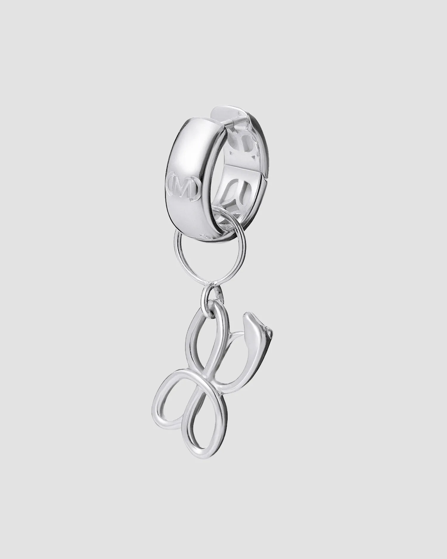 Моносерьга с серебряным покрытием в виде фирменного "цветочка" — звена паттерна MONOCHROME. Материал: сплав меди, цинка и никеля, серебряное покрытие. Гальваническое покрытие чистым серебром придаёт украшению сверкающий блеск и обеспечивает гипоаллергенность. Каждое украшение создаётся вручную. Гравировка фирменного паттерна на внутренней стороне украшения. Упаковка в бархатистую коробочку.