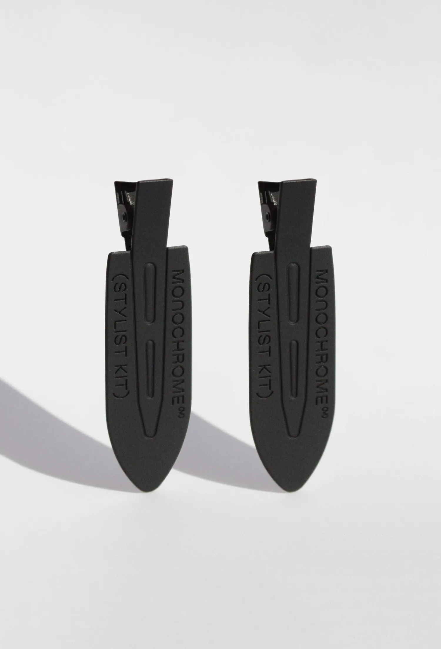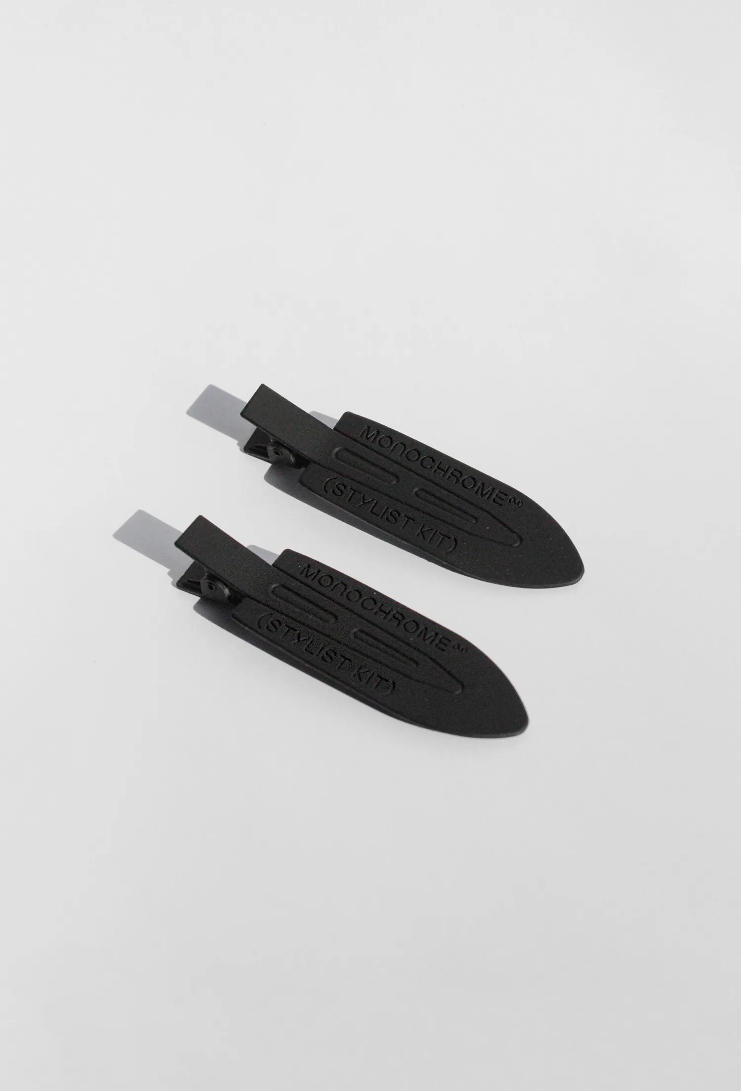 Сет из 2 металлических зажимов для волос с рельефной надписью MONOCHROME (STYLIST KIT). Упаковка в брендированный zip lock пакет.