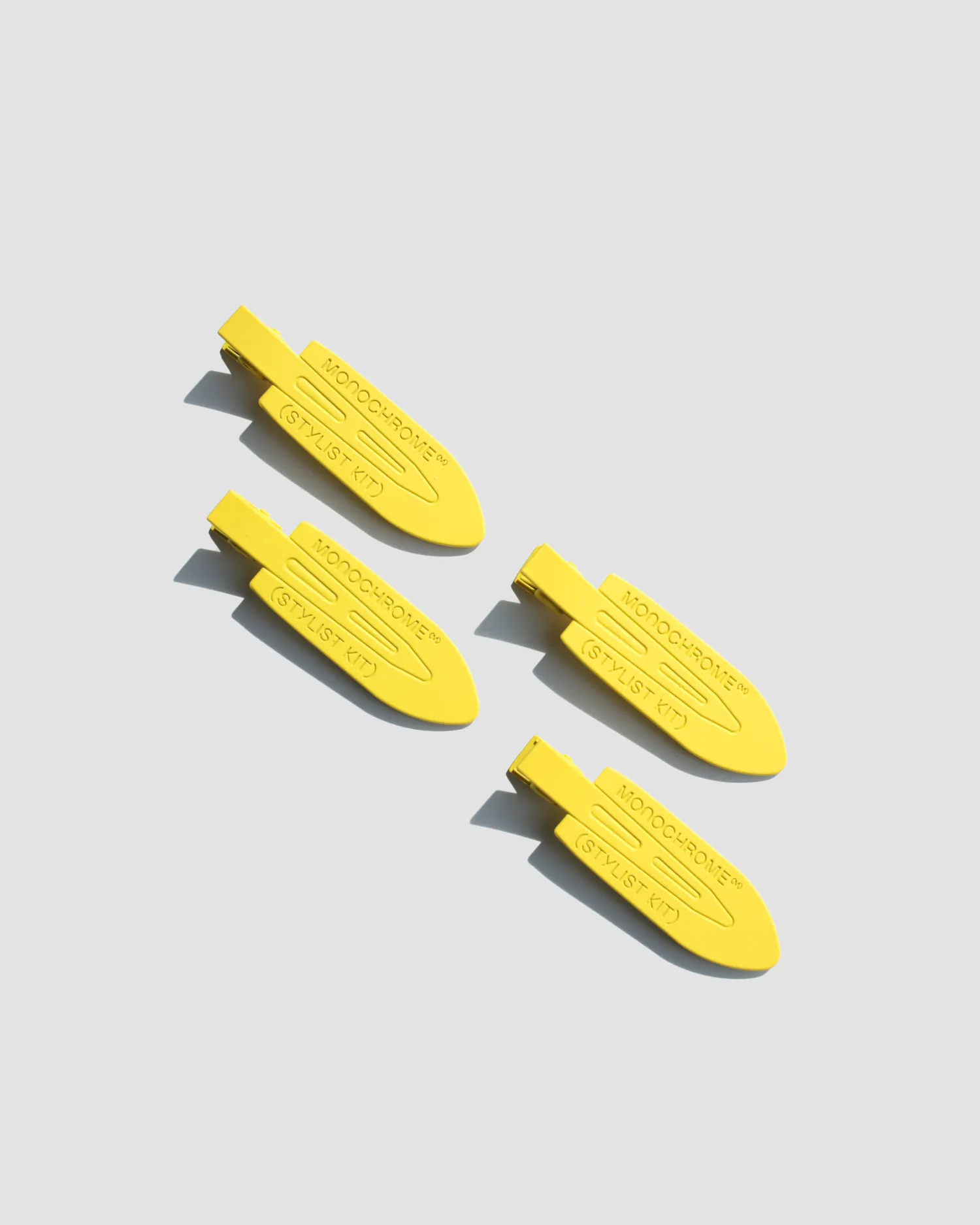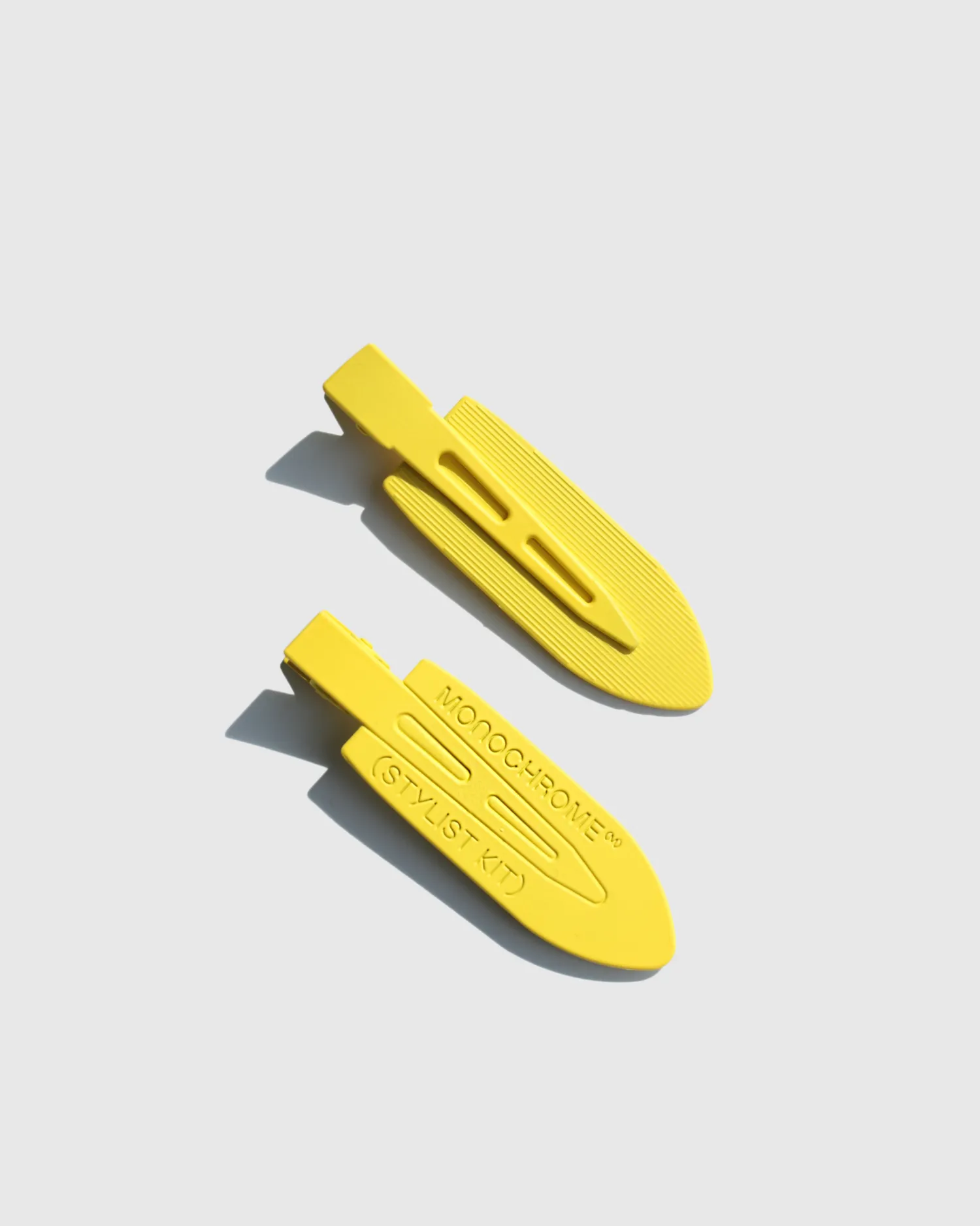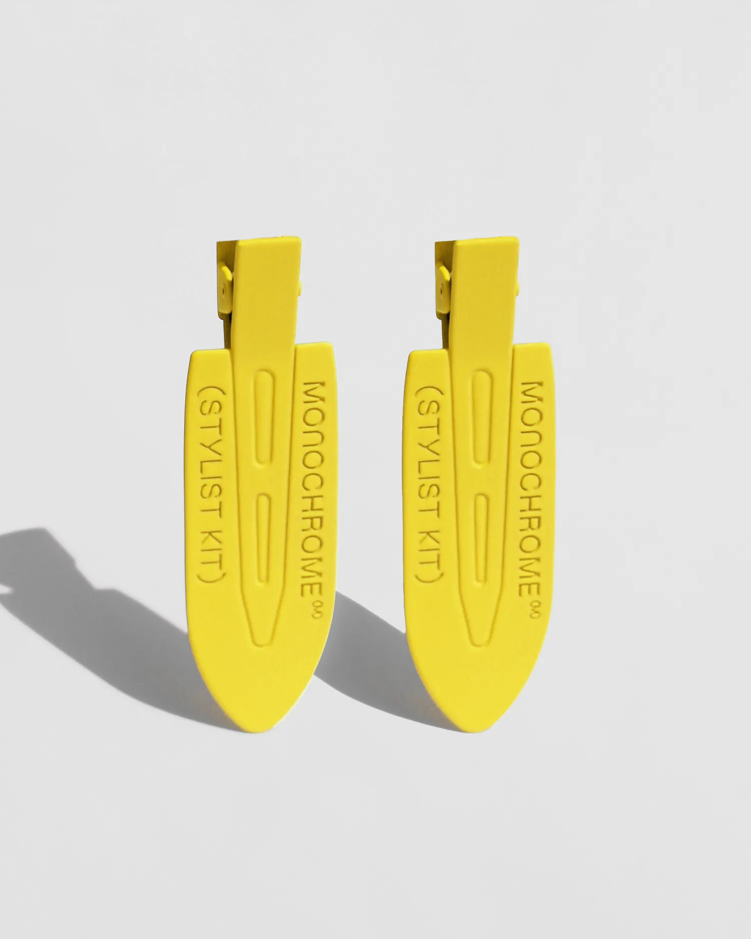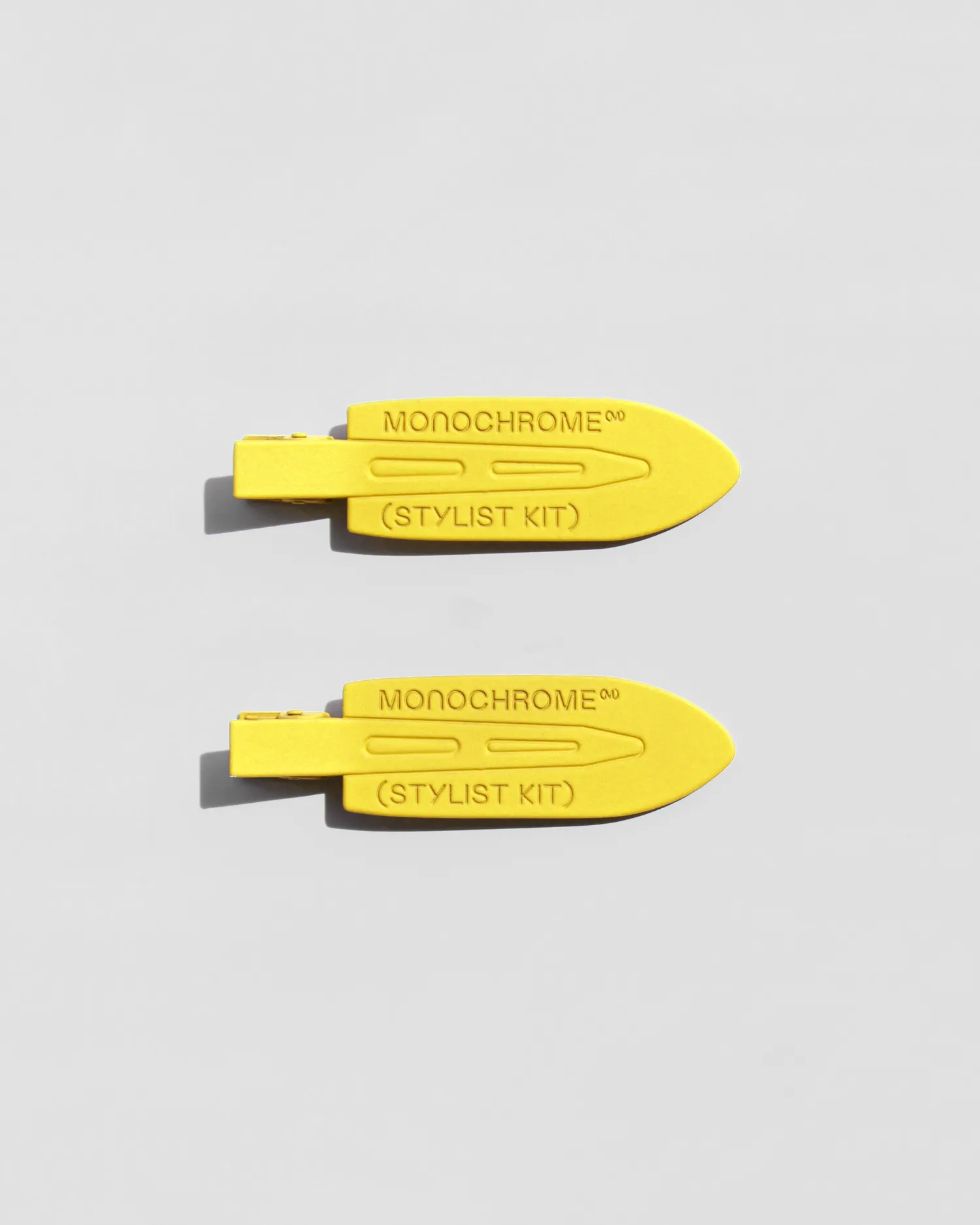 Сет из 2 металлических зажимов для волос с рельефной надписью MONOCHROME (STYLIST KIT). Упаковка в брендированный zip lock пакет.