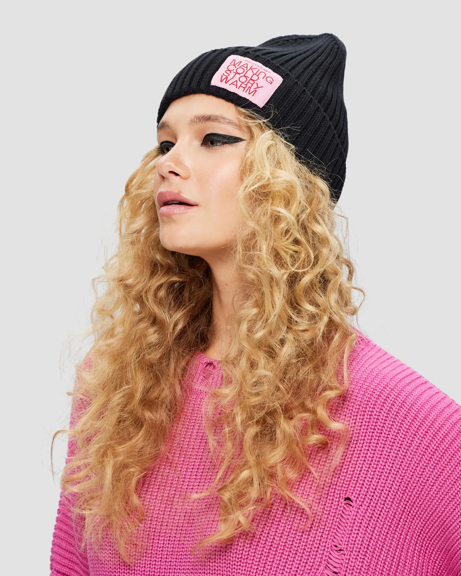 Вязаная шапка. Жаккардовый лейбл на отвороте с фирменной айдентикой. Цвет шапки: черный. Упаковка в базовую коробку. Допустима погрешность в измерениях 2-3 см.