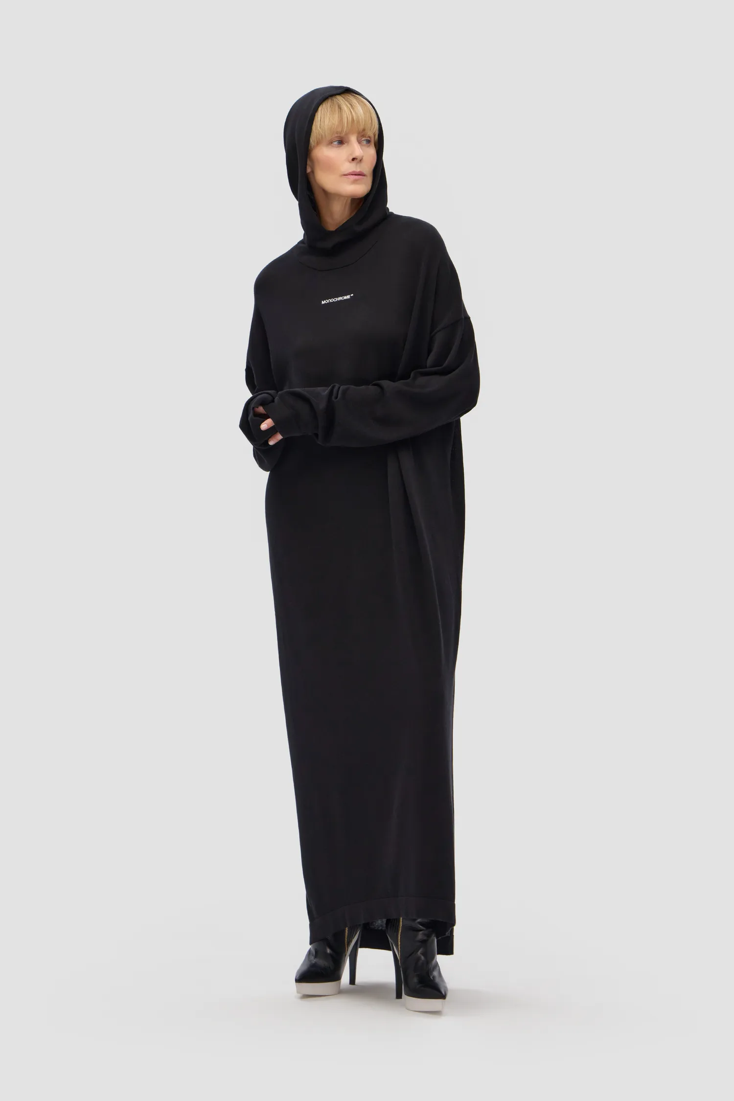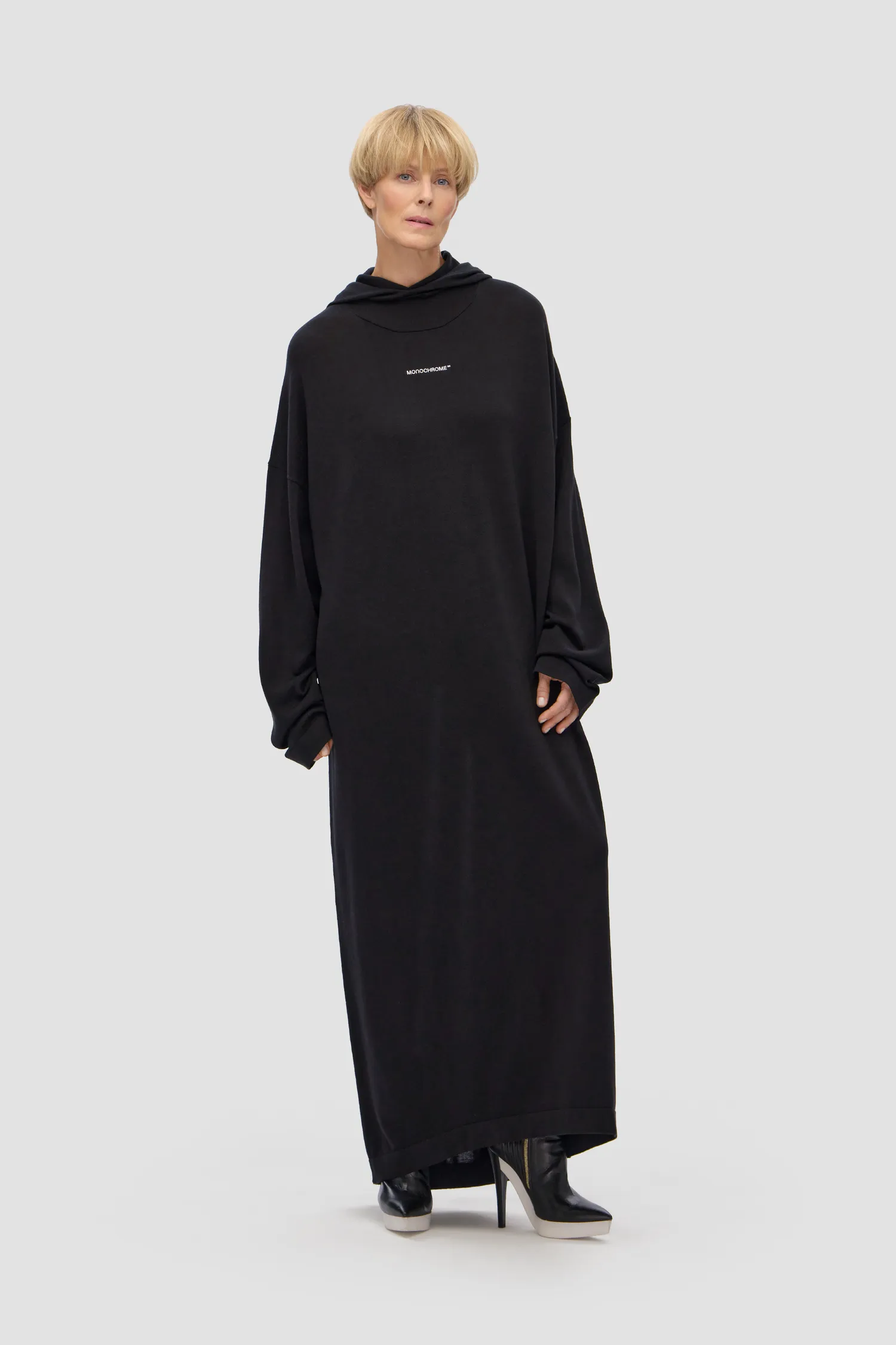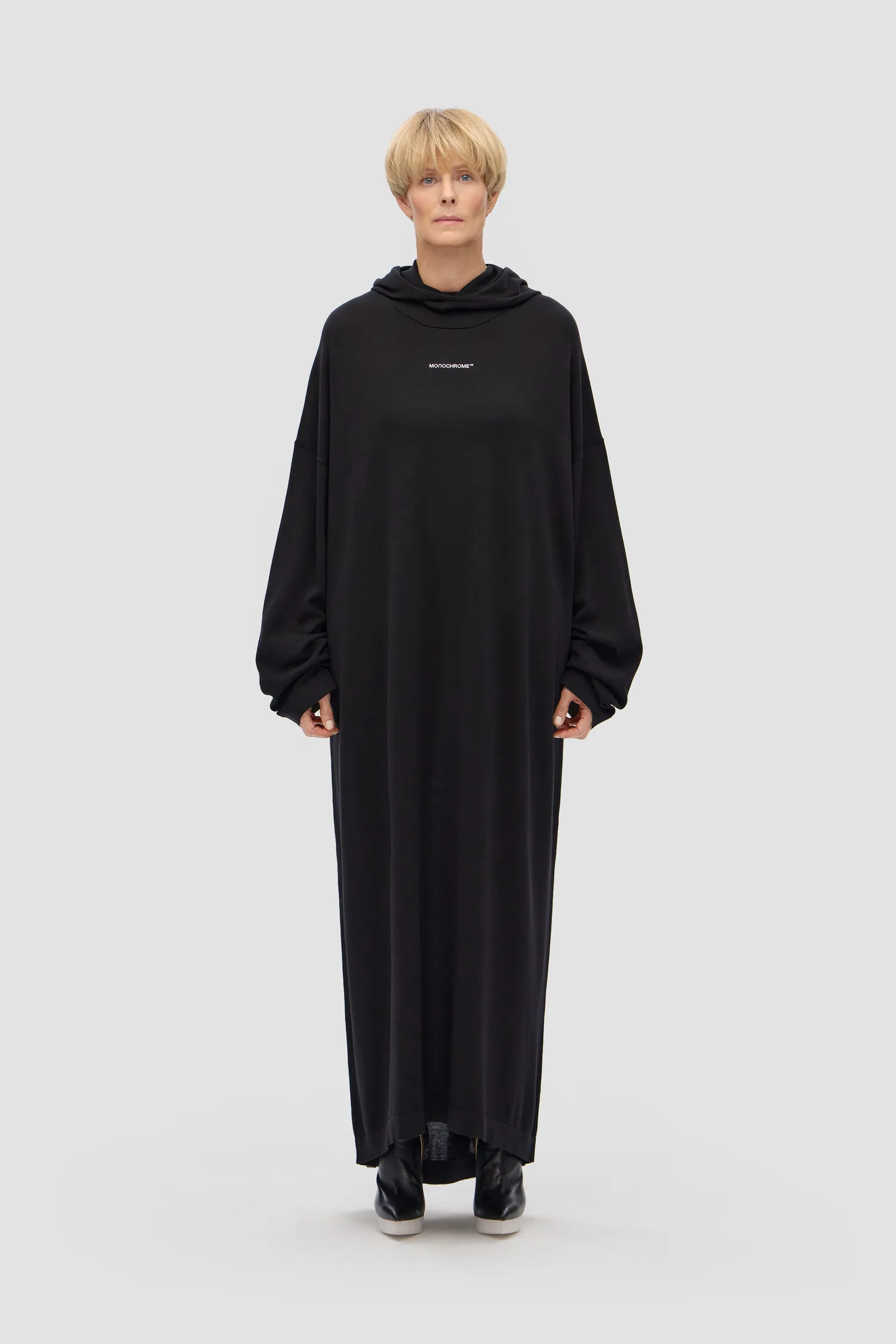 Универсальное платье, идеально как в повседневных, так и в вечерних образах. Модель из струящегося вязаного полотна с капюшоном из хлопка и тенсела с добавлением шёлка. Рельефный логотип MONOCHROME на груди контрастного оттенка. Упаковка в подарочную коробку.