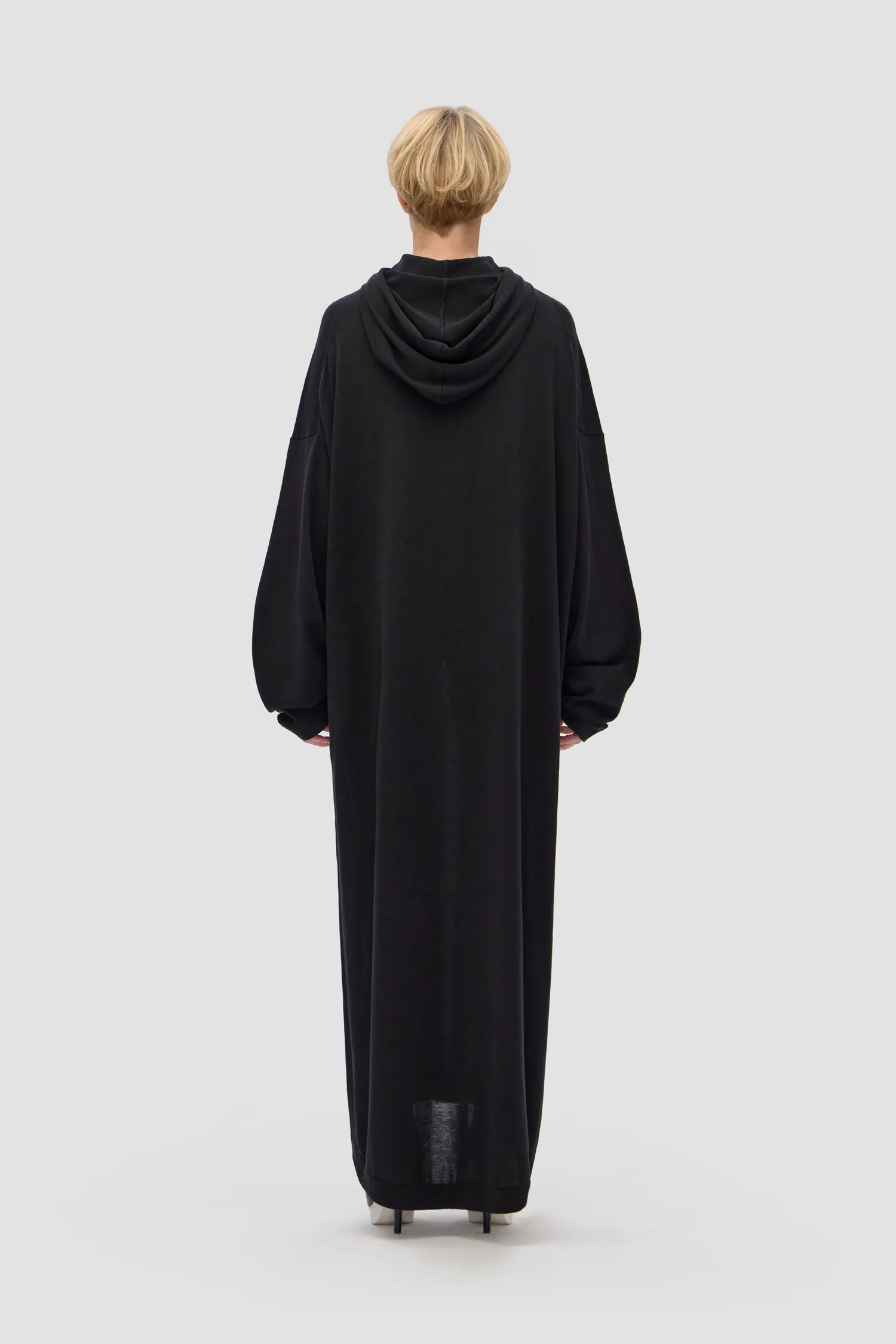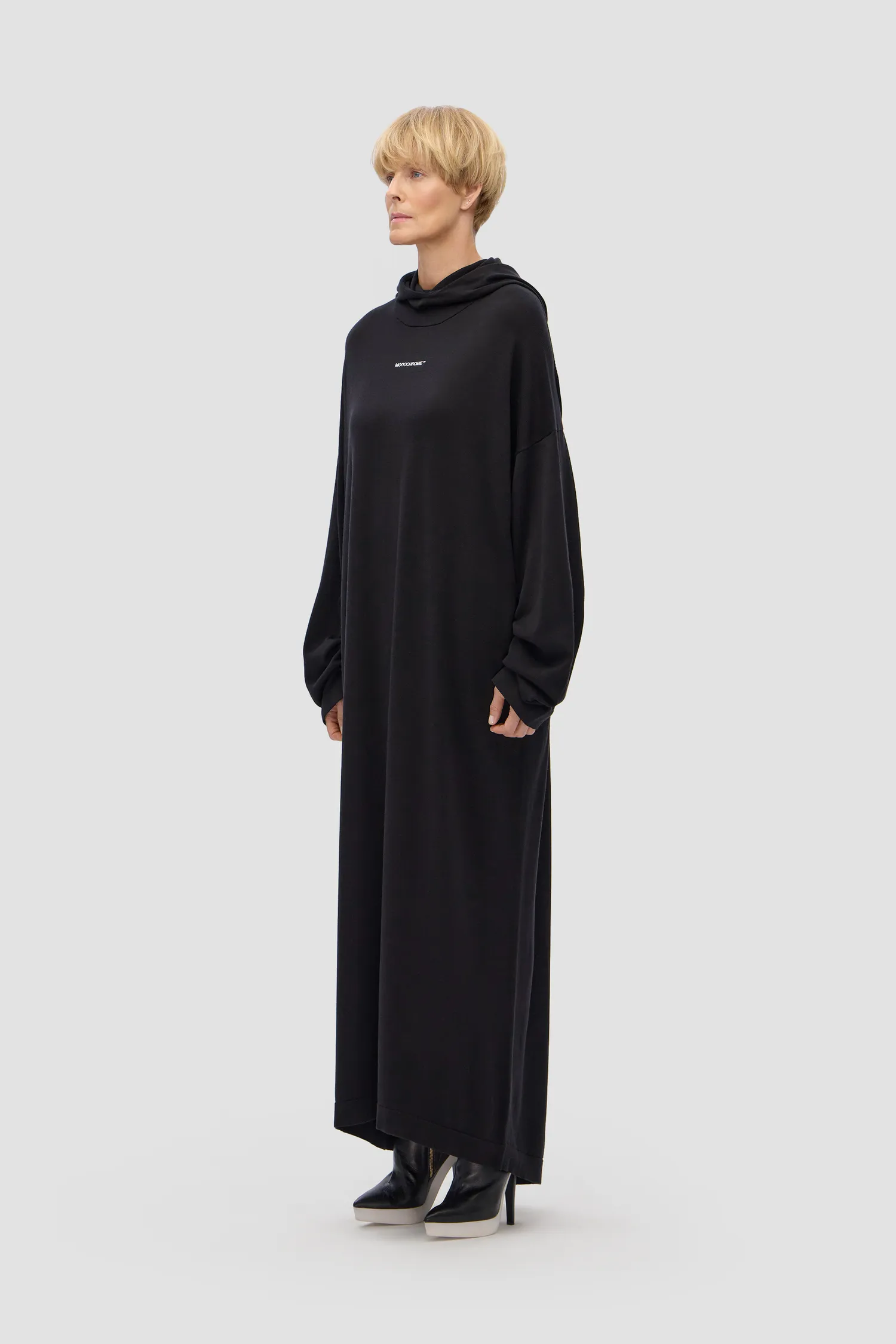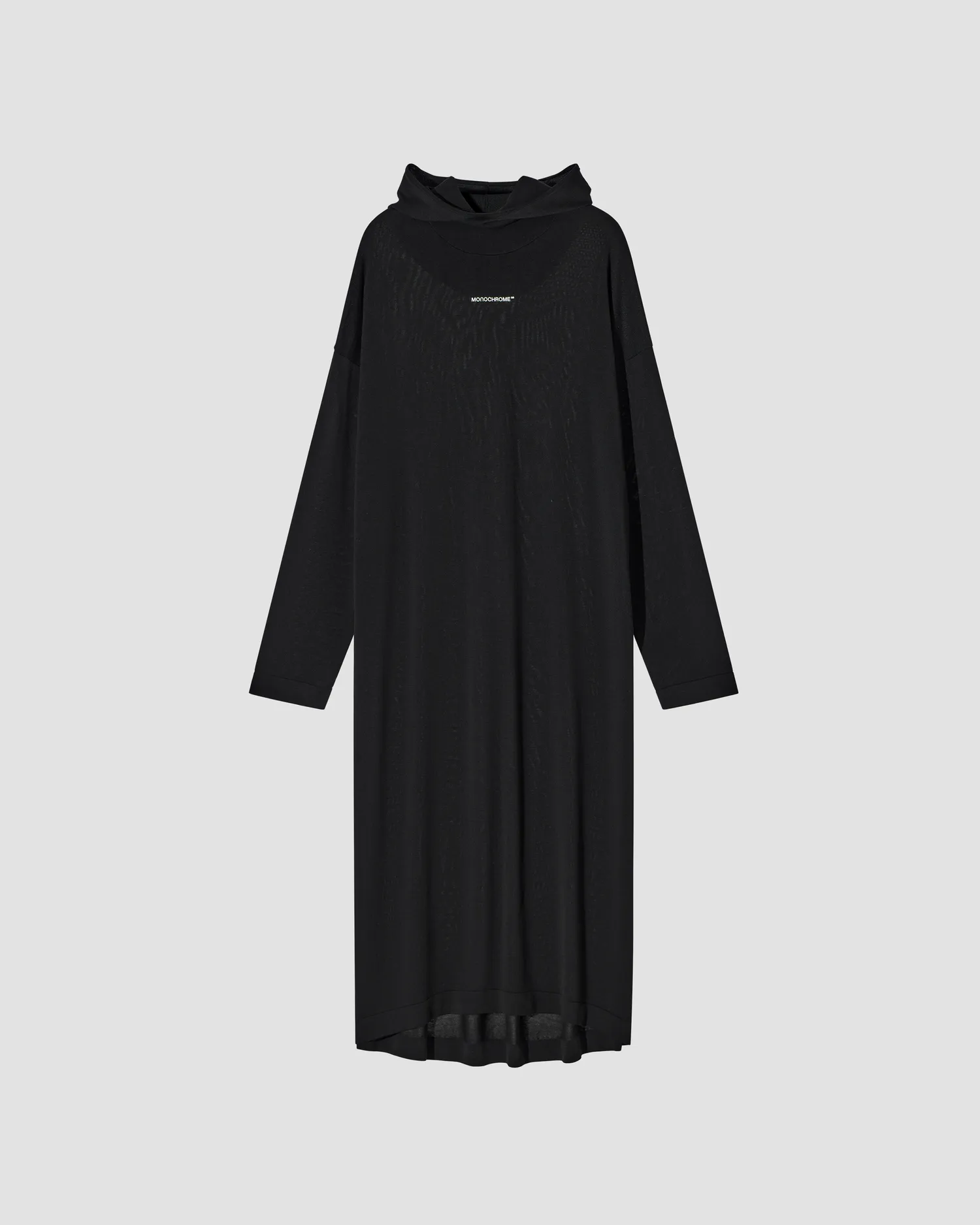 Универсальное платье, идеально как в повседневных, так и в вечерних образах. Модель из струящегося вязаного полотна с капюшоном из хлопка и тенсела с добавлением шёлка. Рельефный логотип MONOCHROME на груди контрастного оттенка. Упаковка в подарочную коробку.