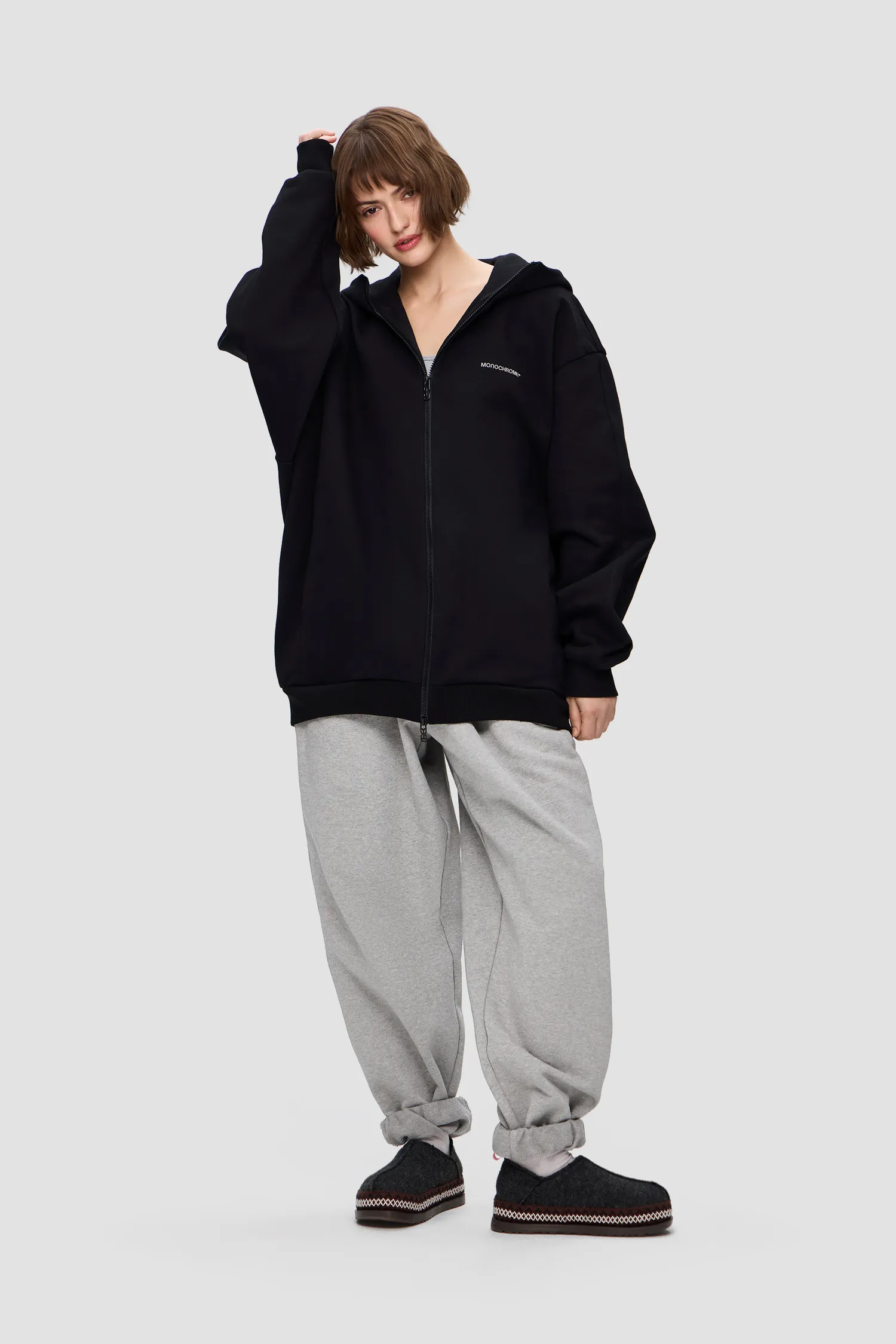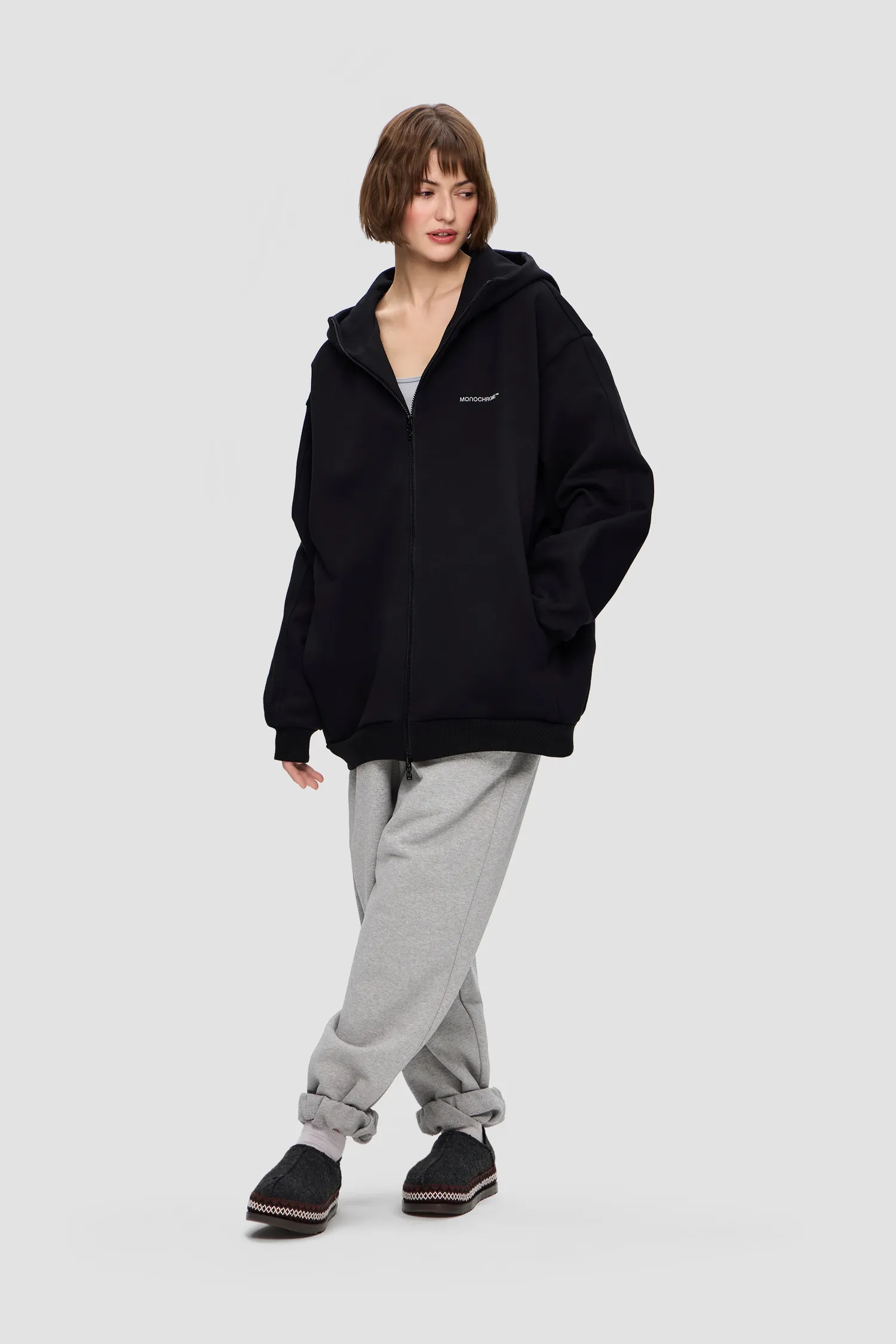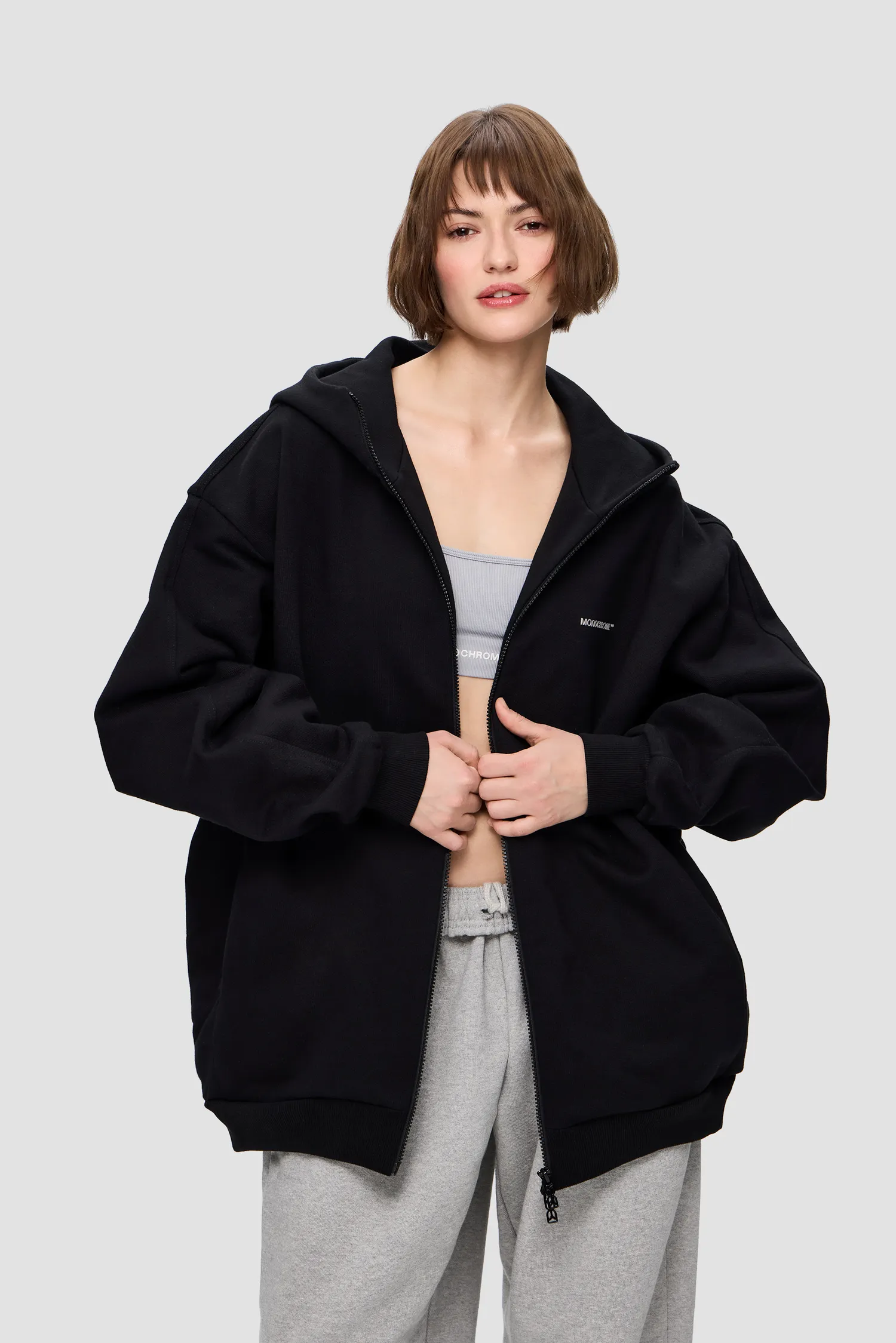 Худи на молнии из 100% хлопкового полотна. Скрытые боковые карманы. Глубокий капюшон с продольным сечением. Петельная текстура полотна без начеса. Рельефный логотип MONOCHROME в области груди. Пуллер на молнии выполнен в виде элемента фирменного паттерна Упаковка в подарочную коробку. Сделано в России на собственной мануфактуре MONOCHROME.