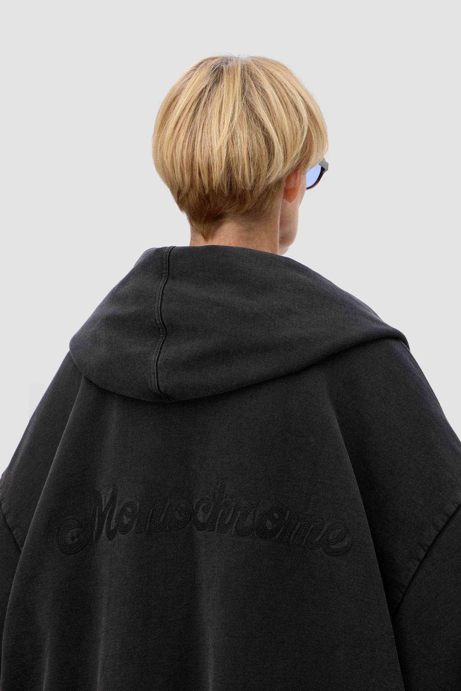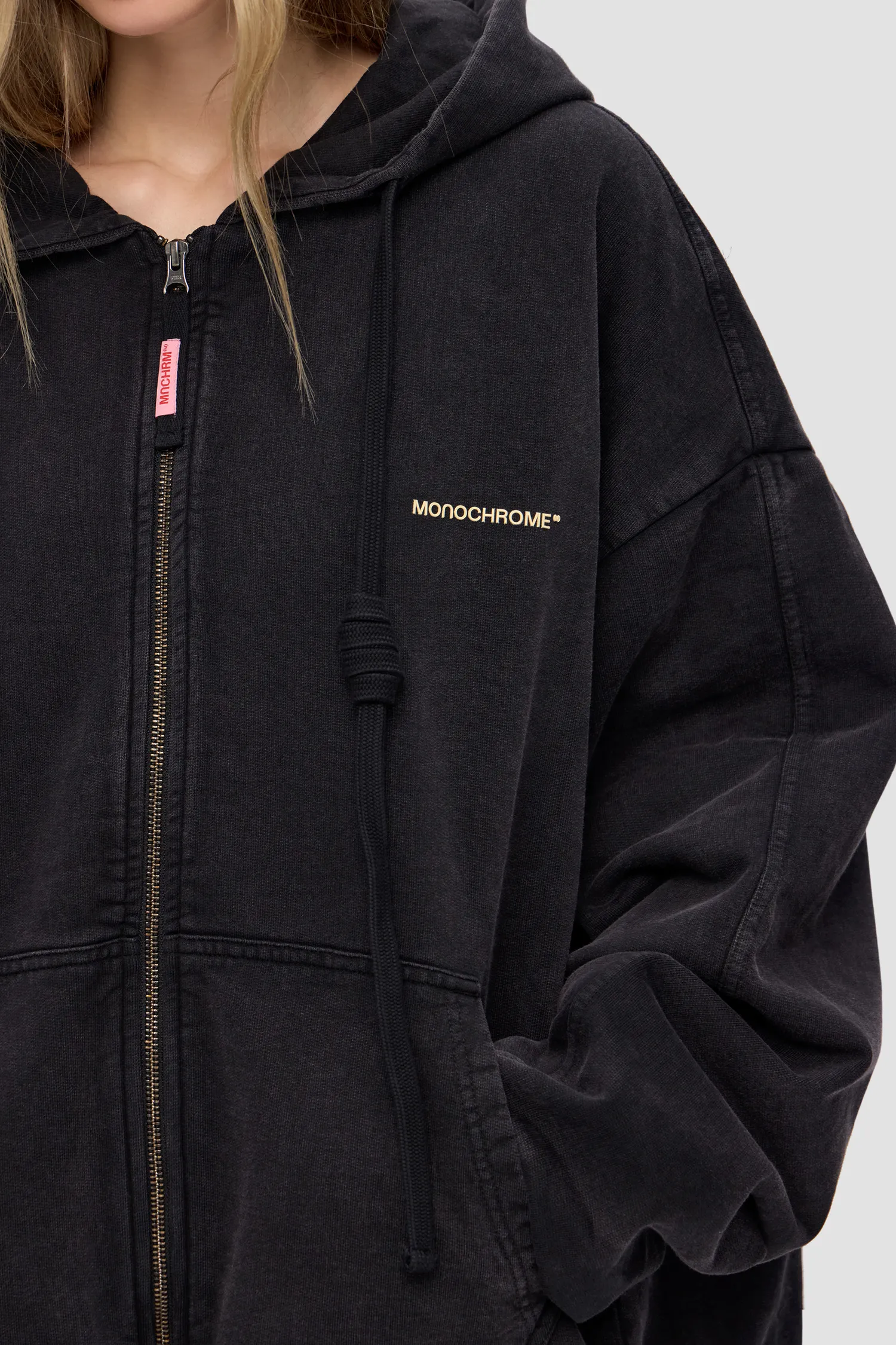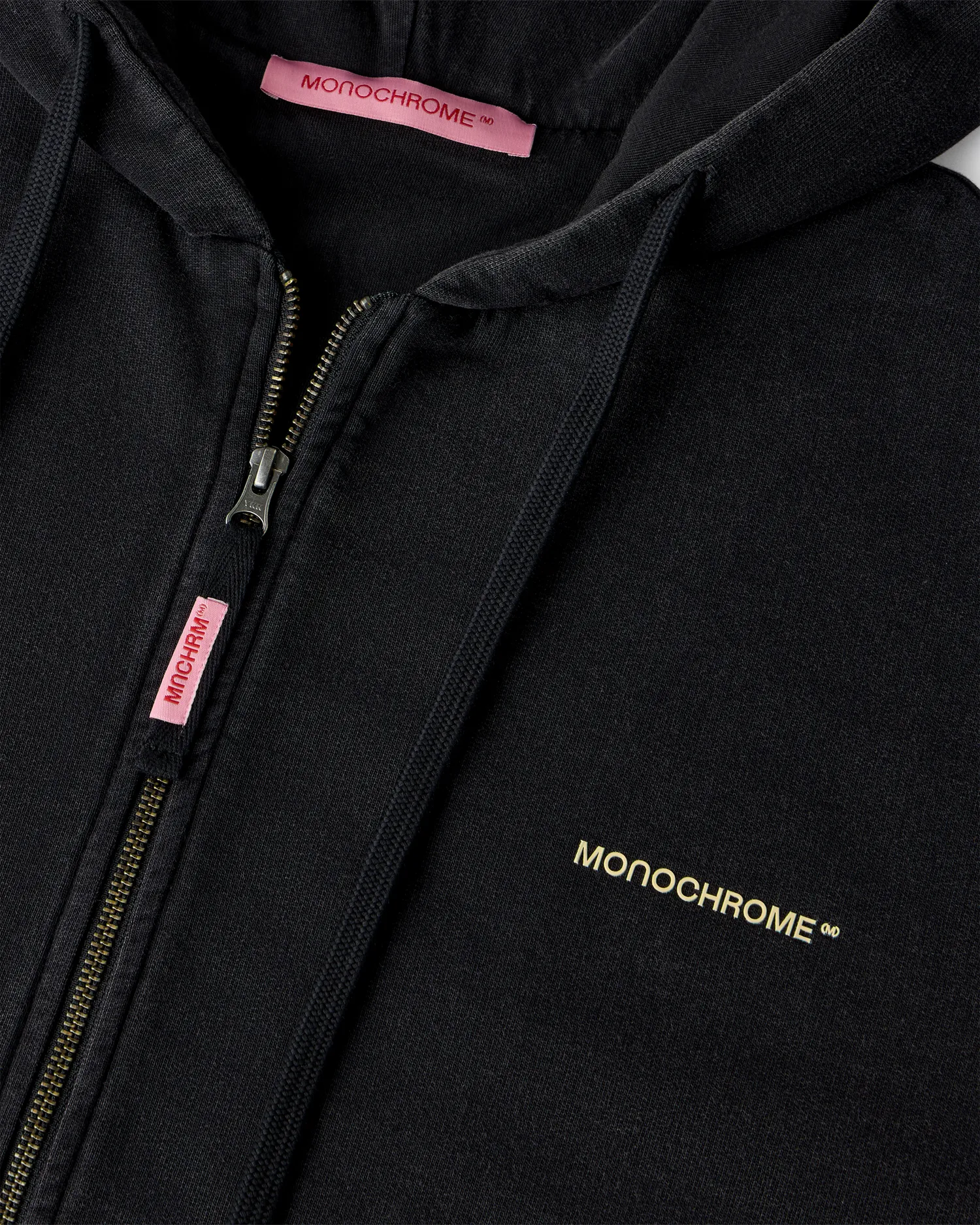 Худи на молнии из 100% хлопкового полотна. Скрытые боковые карманы. Глубокий капюшон с продольным сечением. Петельная текстура полотна без начеса. Рельефный логотип MONOCHROME в области груди. Пуллер на молнии выполнен в виде элемента фирменного паттерна Упаковка в подарочную коробку.