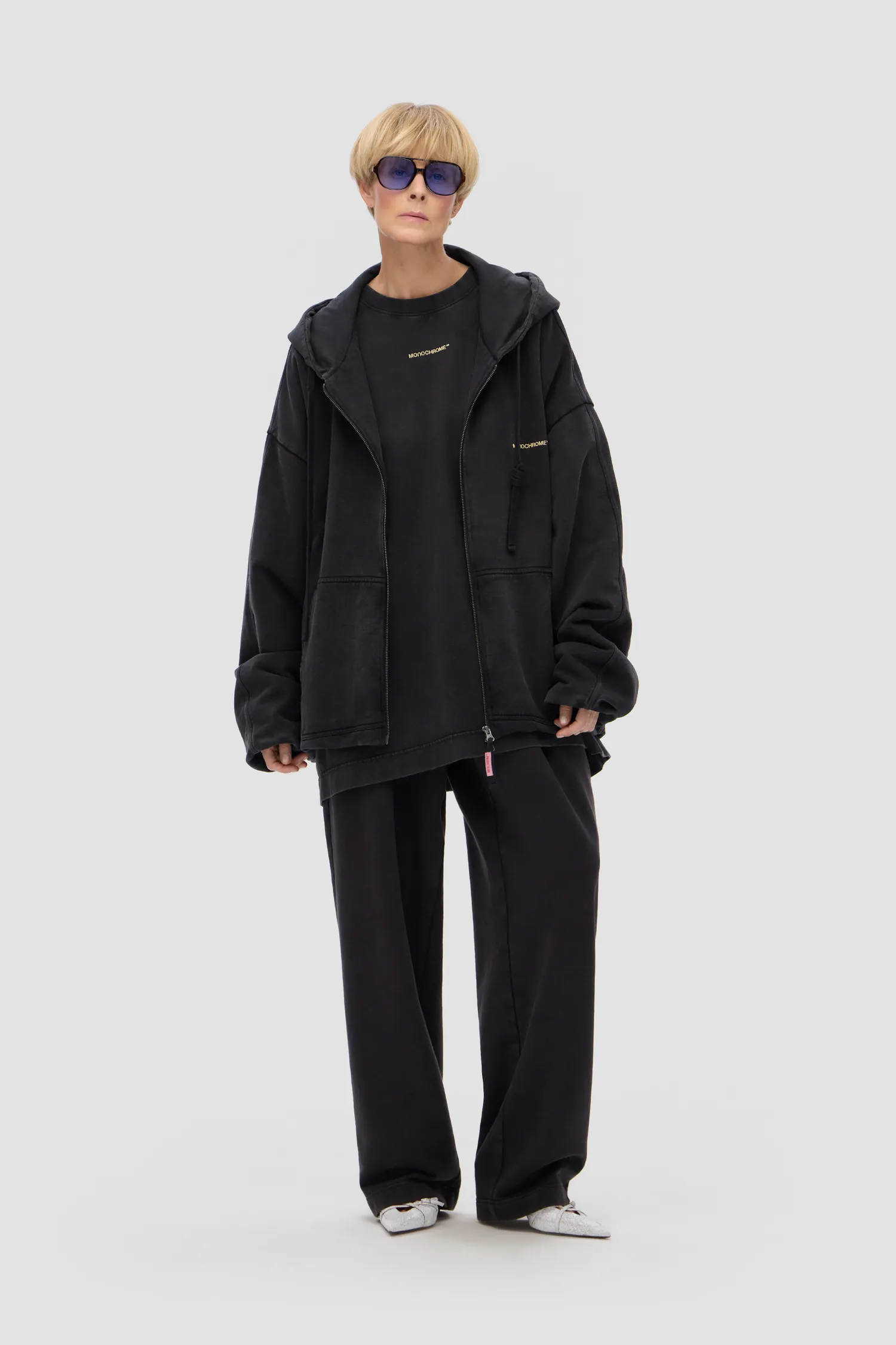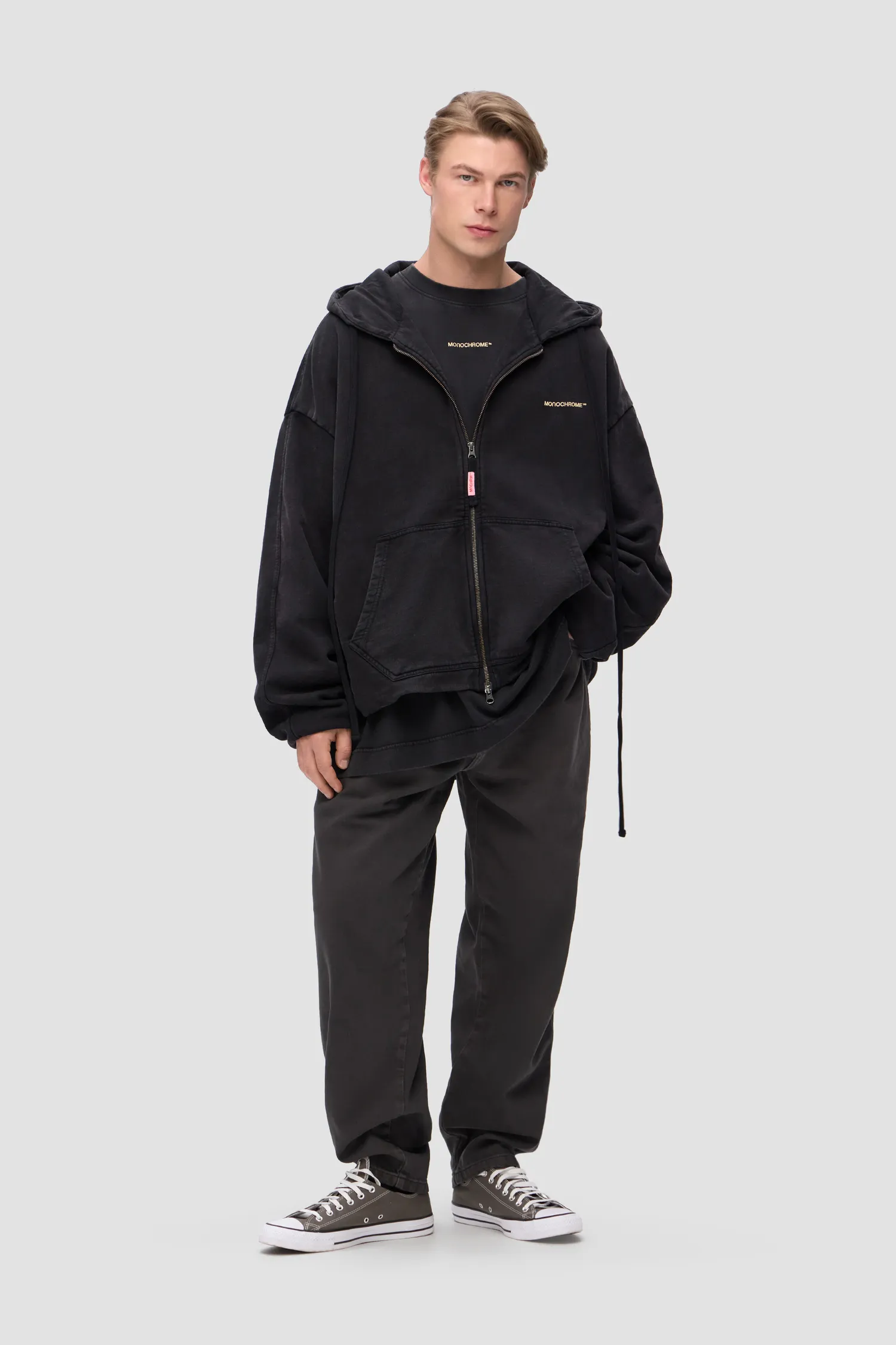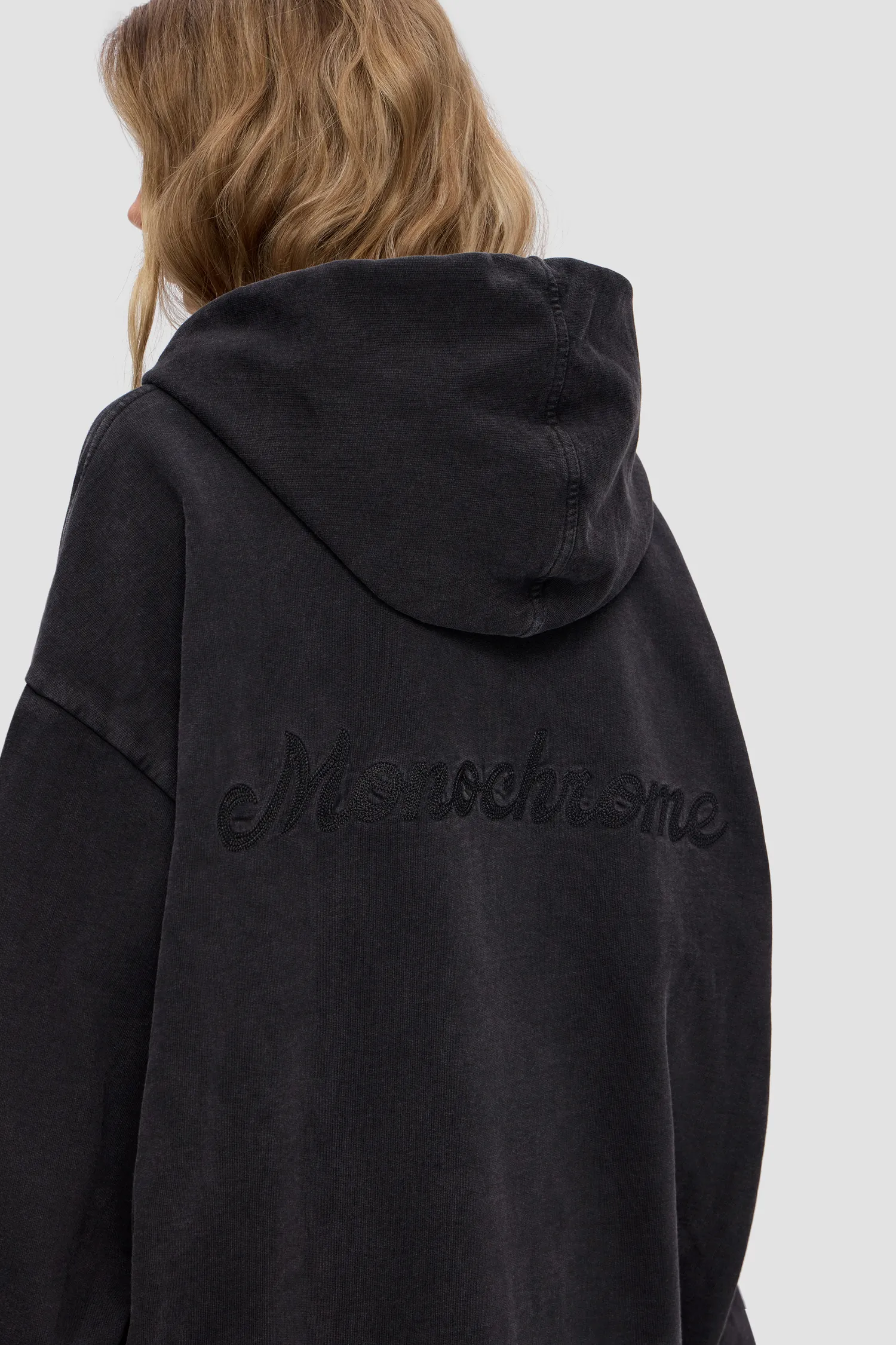 Худи на молнии из 100% хлопкового полотна. Скрытые боковые карманы. Глубокий капюшон с продольным сечением. Петельная текстура полотна без начеса. Рельефный логотип MONOCHROME в области груди. Пуллер на молнии выполнен в виде элемента фирменного паттерна Упаковка в подарочную коробку.