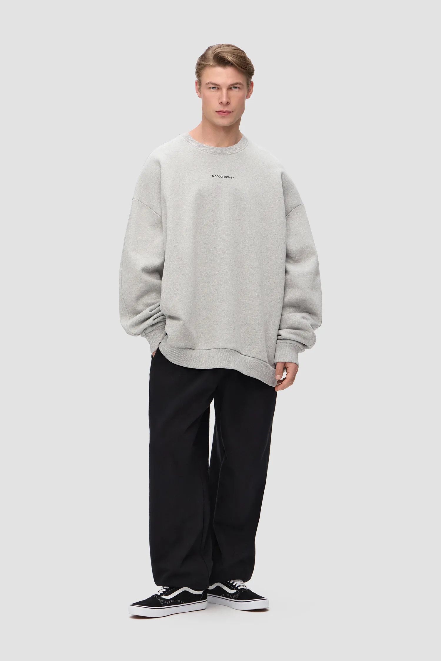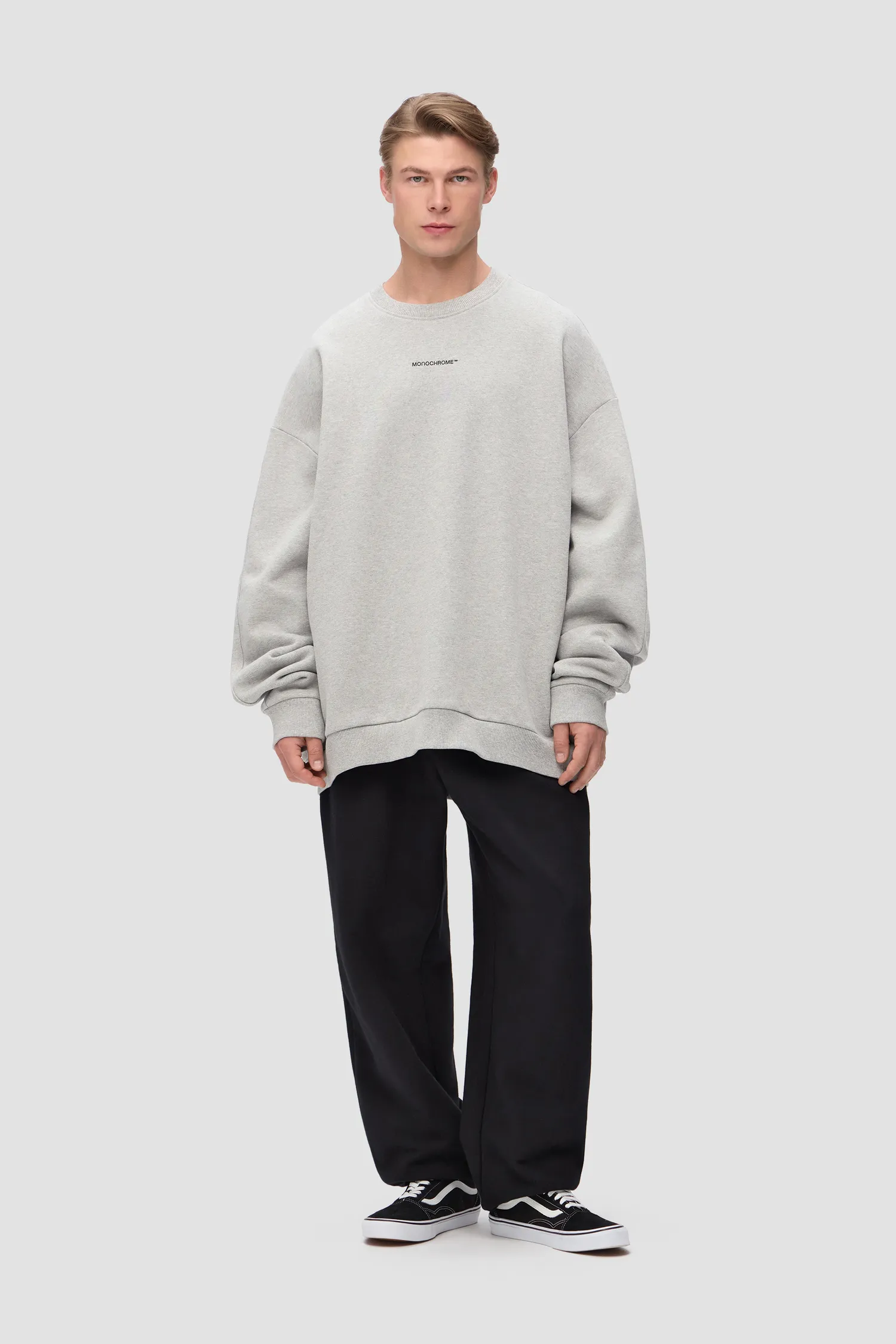 Свитшот серого цвета с петельной текстурой полотна из 100% хлопкового футера с мягкой изнанкой. Рельефный логотип MONOCHROME на груди. Скрытые боковые карманы. О-образный вырез. Эластичные манжеты на рукавах. Onesize&unisex. Упаковка в подарочную коробку.
