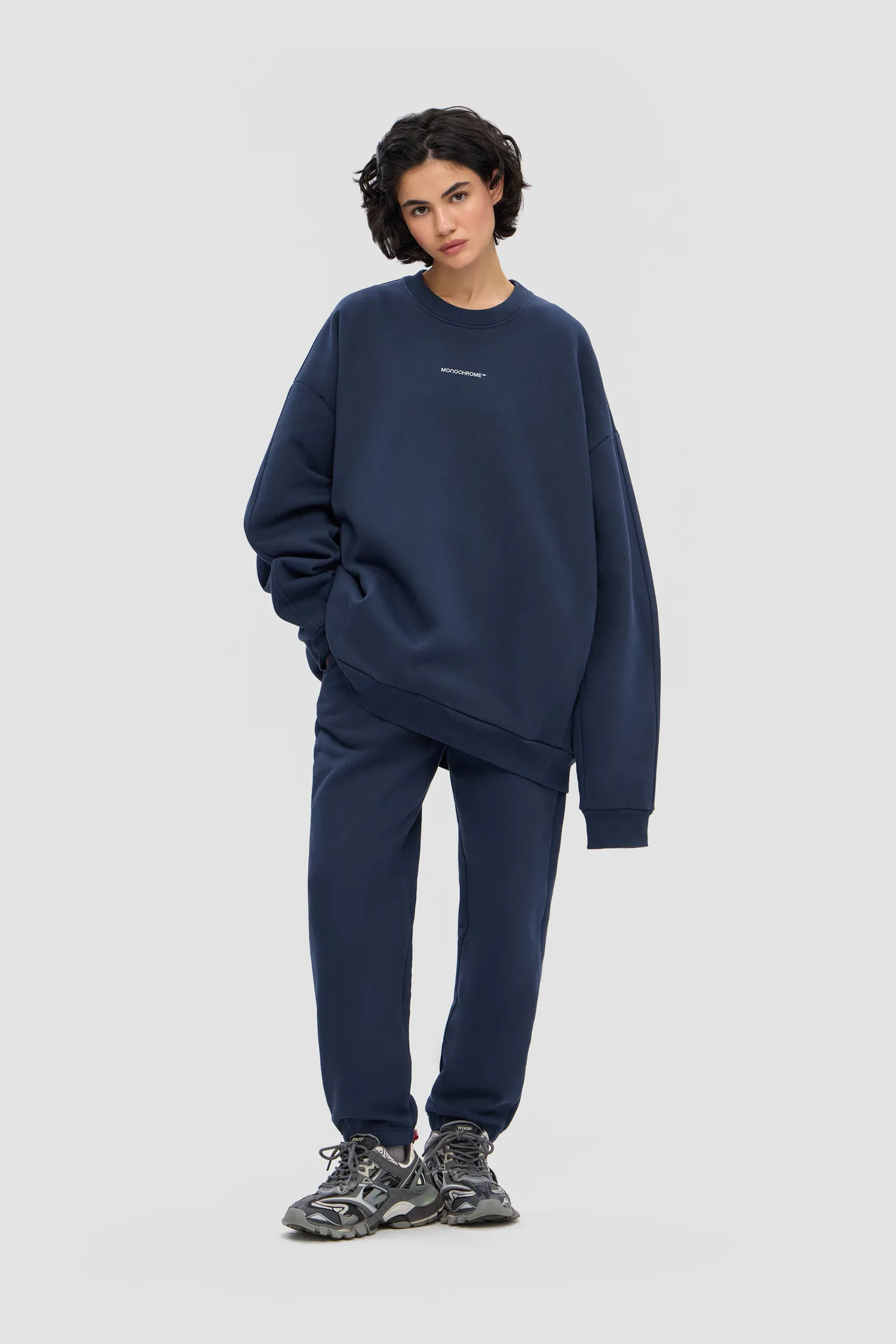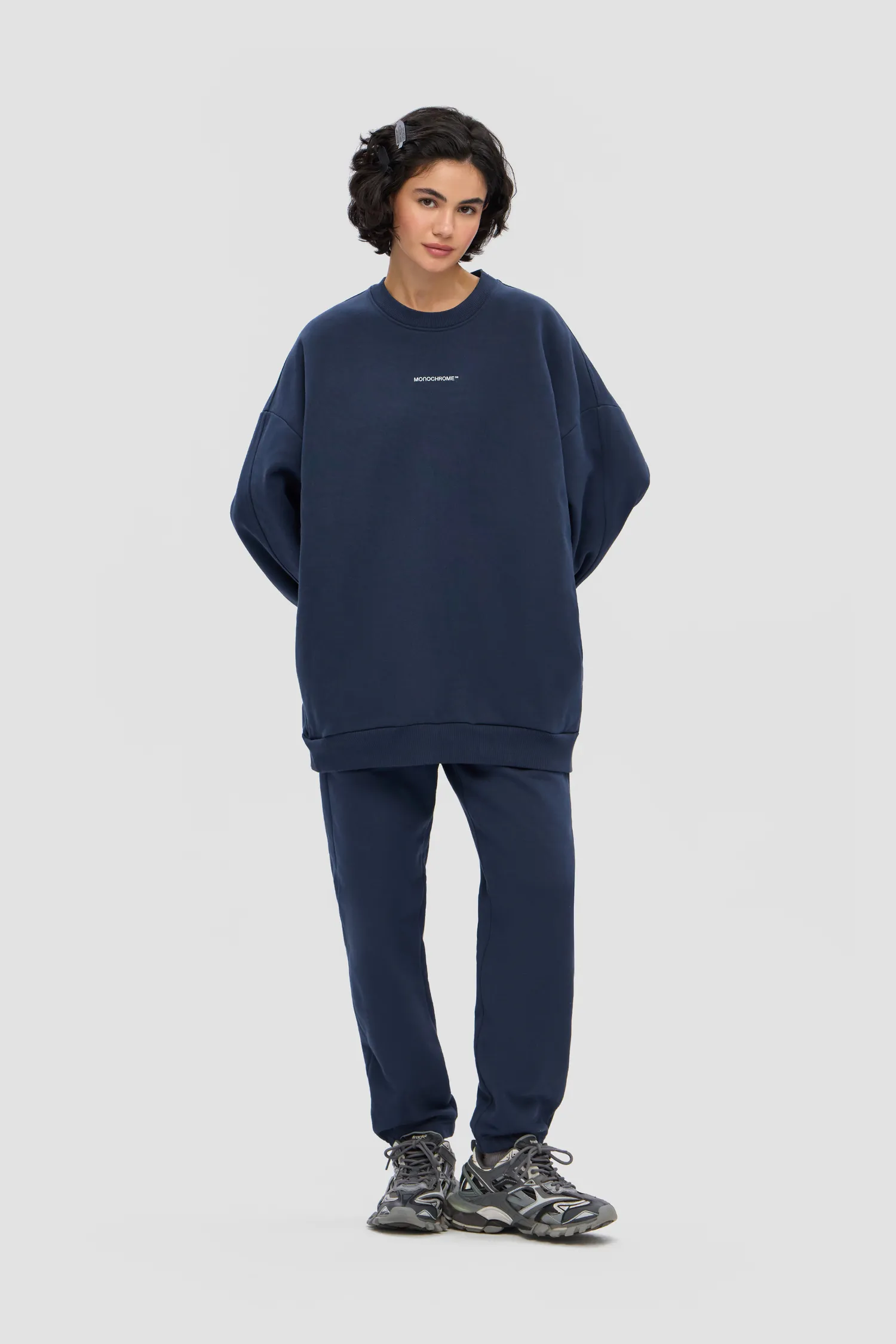 Свитшот синего цвета с петельной текстурой полотна из 100% хлопкового футера с мягкой изнанкой. Рельефный логотип MONOCHROME на груди. Скрытые боковые карманы. О-образный вырез. Эластичные манжеты на рукавах. Onesize&unisex. Упаковка в подарочную коробку.