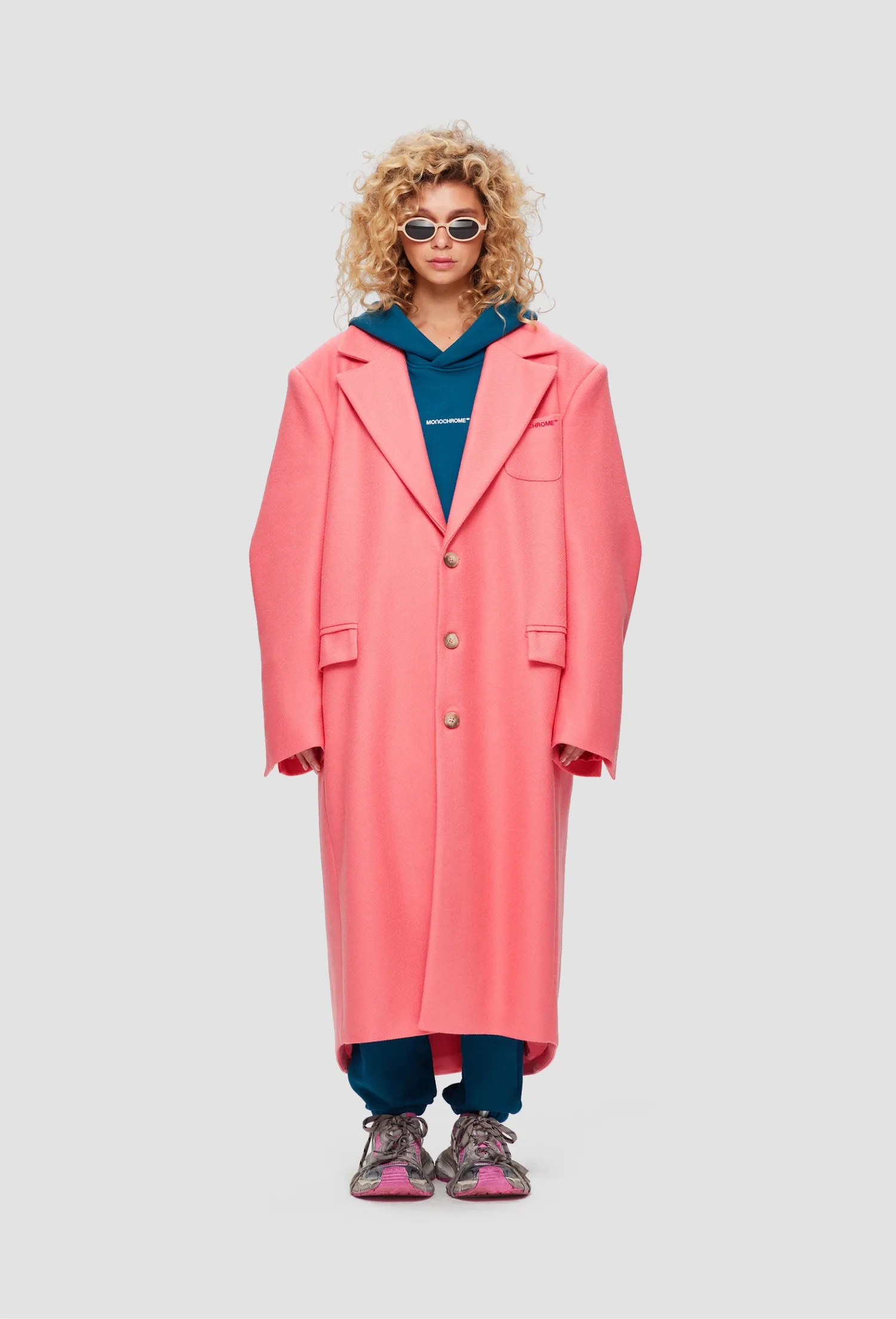Оверсайз пальто из шерсти в фирменном стиле MONOCHROME. Изделие оснащено плоскими карманами с клапаном с двух сторон. Подклад с вискозой в составе, позволяющий телу "дышать". Тип застежки: пуговицы. Фирменная упаковка в брендированный чехол. Сделано в России на собственной мануфактуре MONOCHROME.