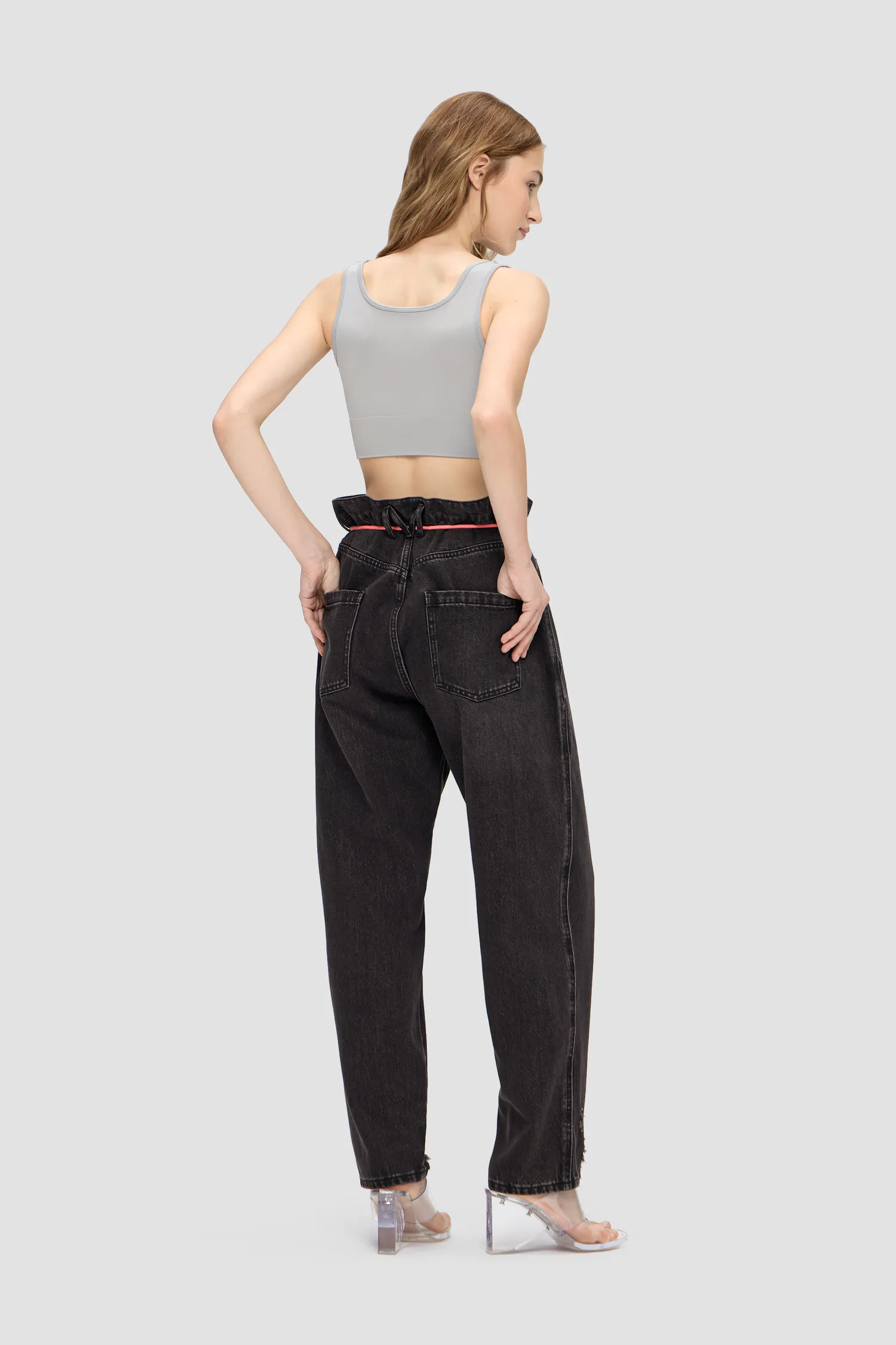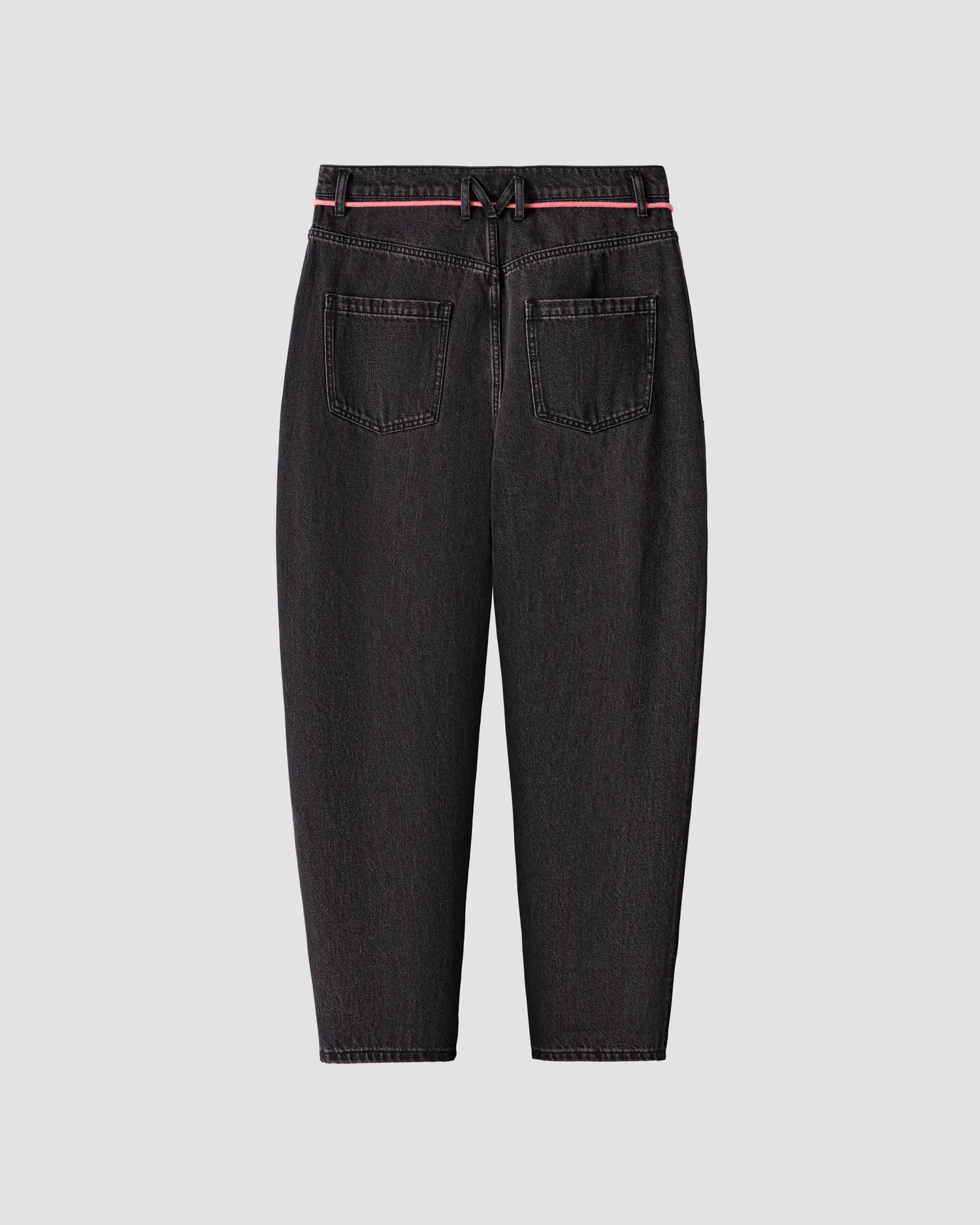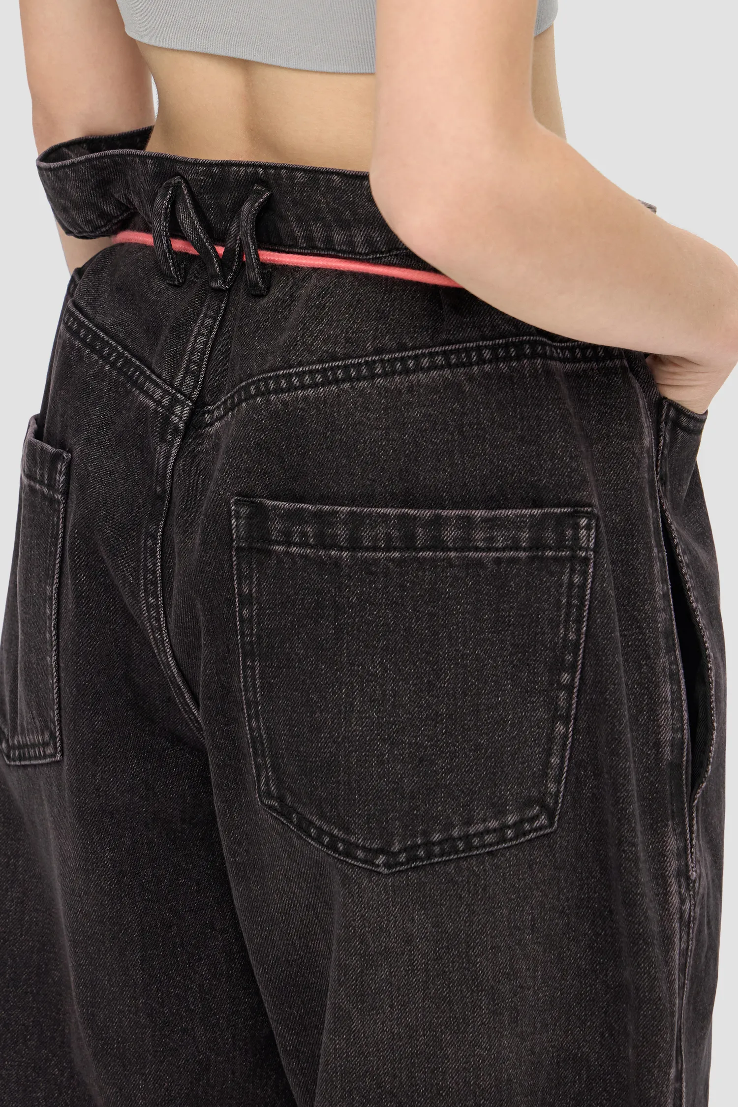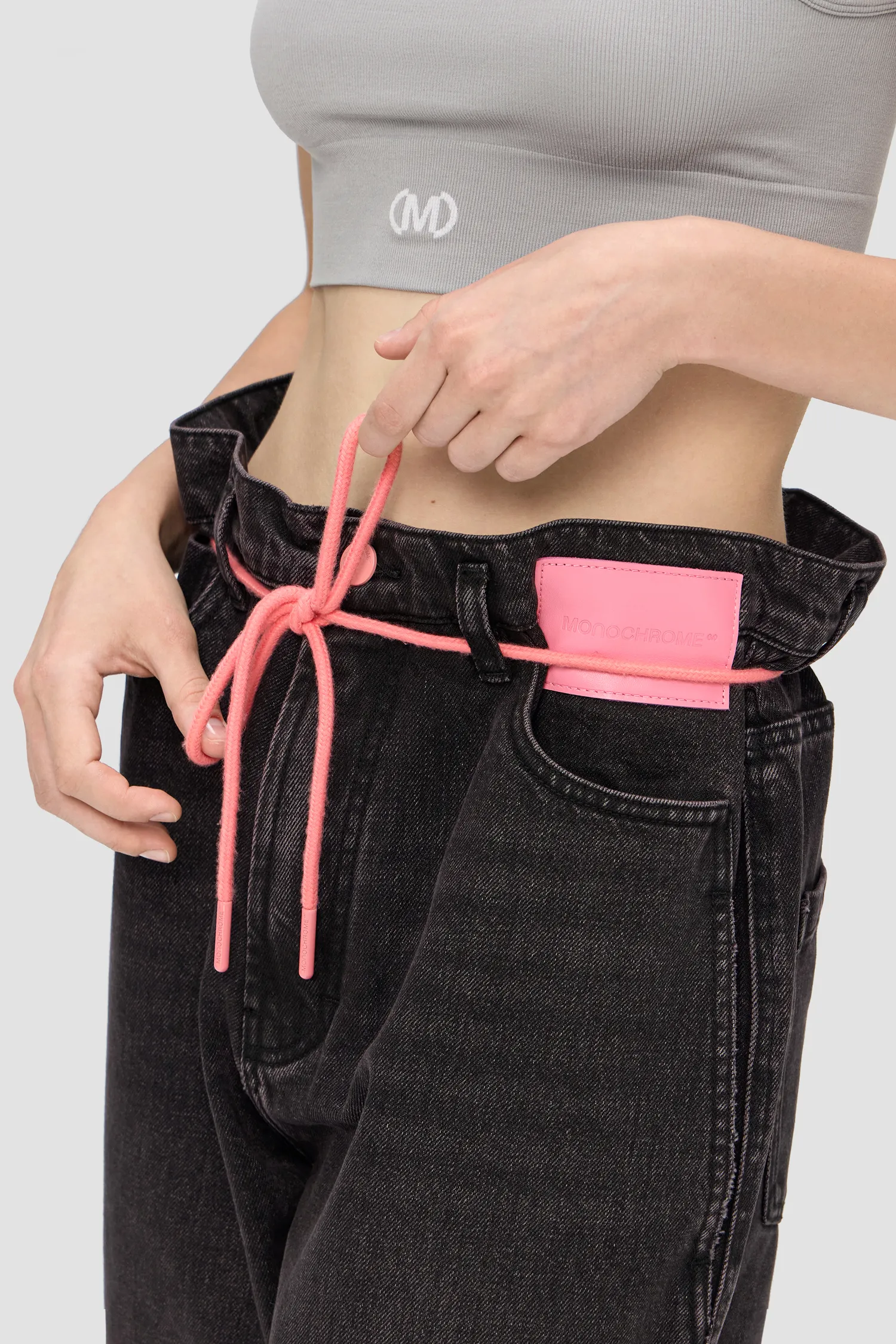 Джинсы из смесового хлопка широкого кроя baggy. Винтажная варка и дистресс-эффект с декоративными дырками по нижнему краю изделия. Петли для ремня переплетены в виде фирменной М с задней стороны. Пять карманов. Застежка на молнию и пуговицу спереди. В комплекте идет розовый шнурок для талии. Кожаный розовый лейбл спереди. Упаковка в подарочную коробку.