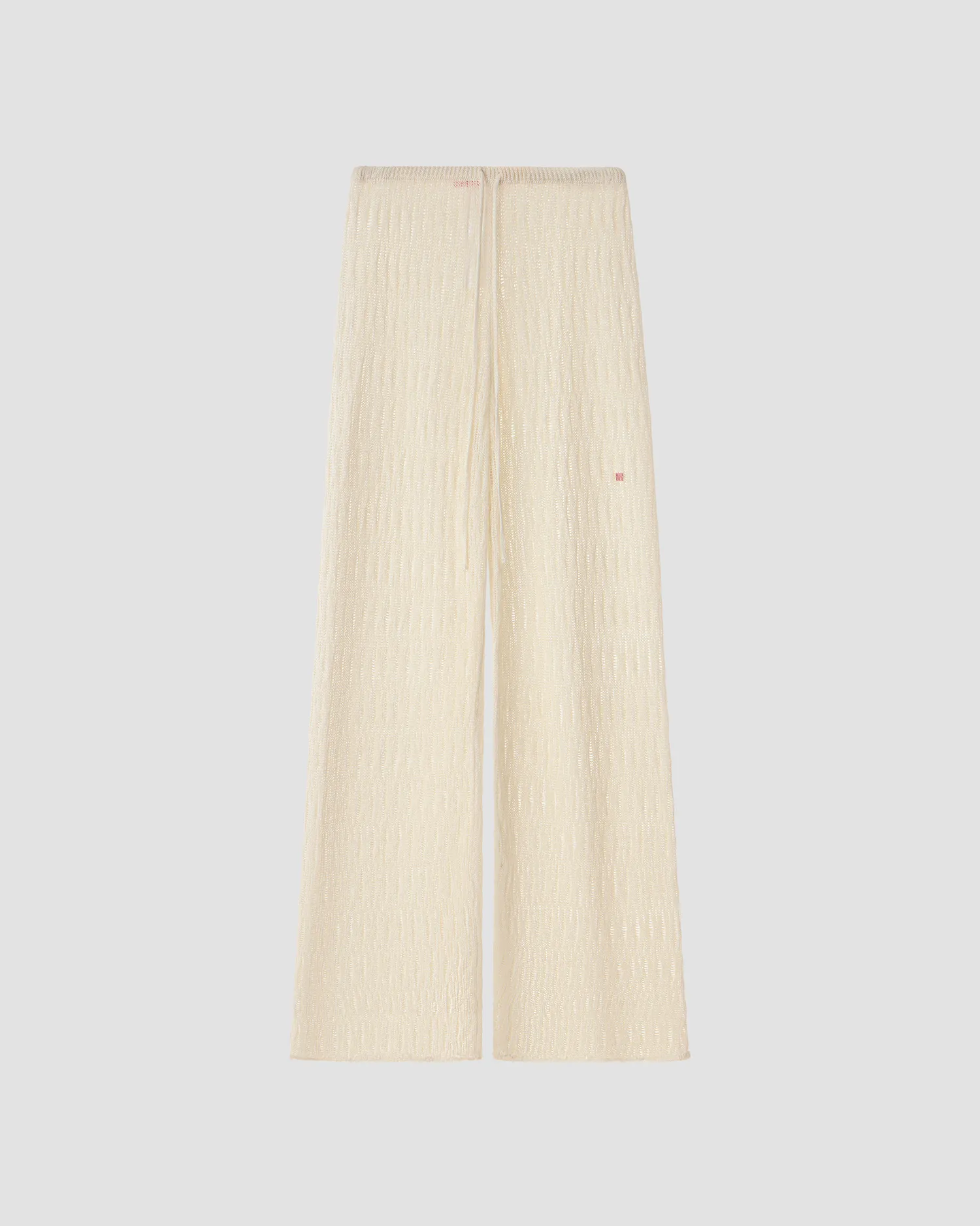 Oversized брюки из 100% вязаного льна из коллекции AIR. Льняная ткань идеально подходит для жары благодаря своей способности пропускать воздух, обеспечивая комфорт для вашей кожи. Изделие на резинке с завязками. Металлическая нашивка в виде фирменного элемента паттерна MONOCHROME. В измерениях изделий допустимо колебание ± 2 см. Onesize&Unisex. Упаковка в льняной мешочек и в подарочную коробку.