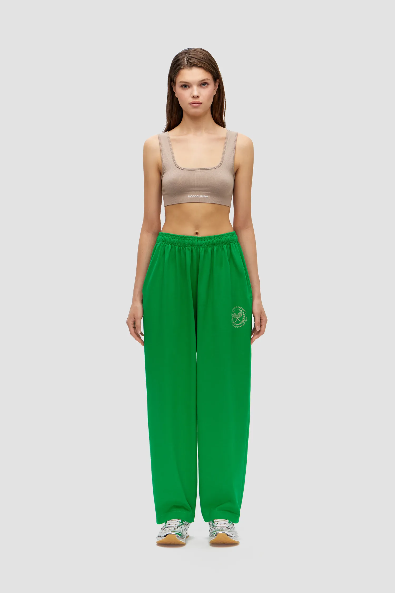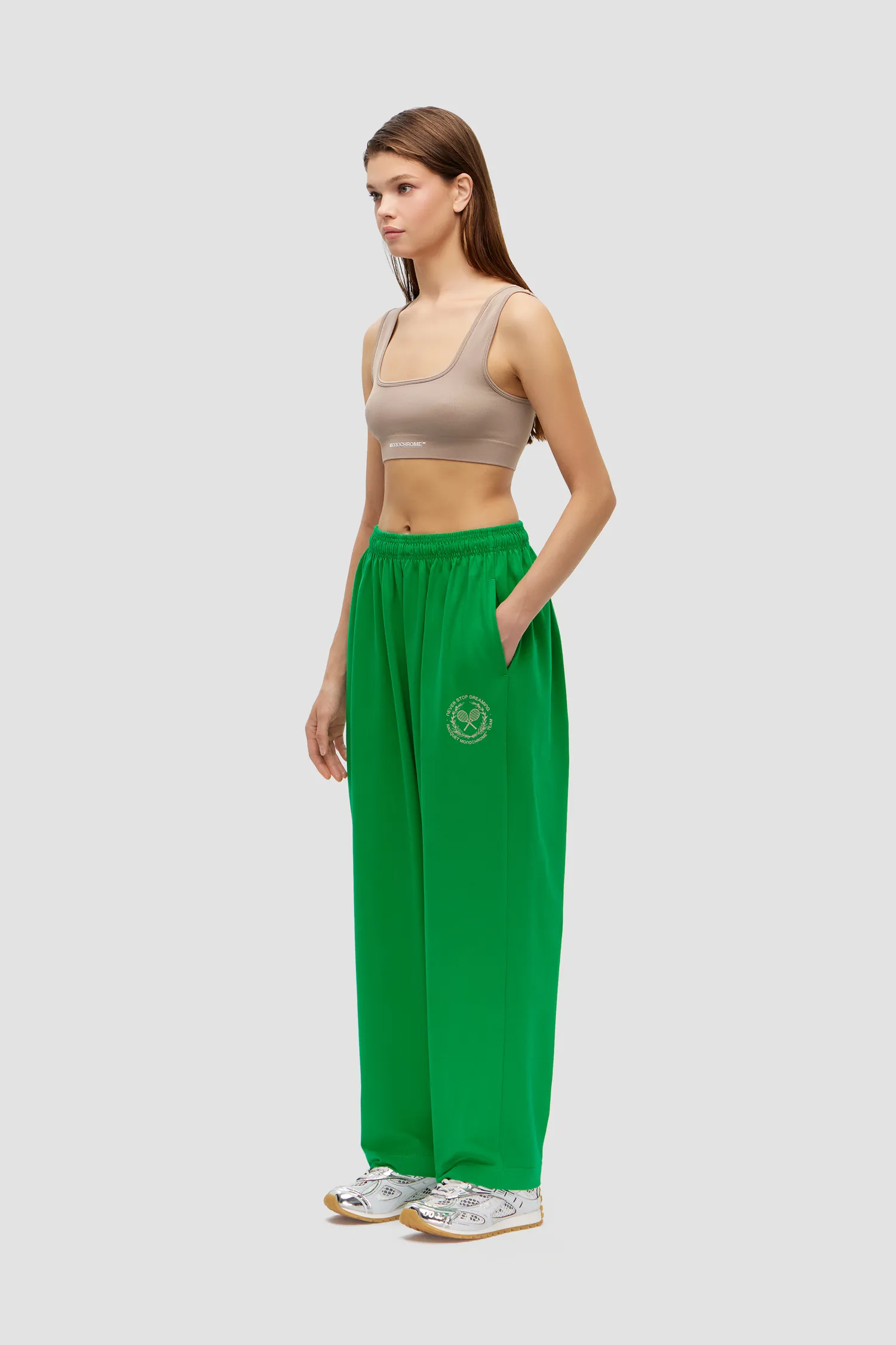 Брюки свободного кроя из капсулы TENNIS by MONOCHROME. 100% хлопок. Скрытые карманы в боковых швах. Пояс на резинке и завязках контрастного цвета. Фирменная айдентика MONOCHROME на передней части бедра. Сделано в России на собственной мануфактуре MONOCHROME. Упаковка в подарочную коробку. Каждое изделие комплектуется брендированным напульсником.