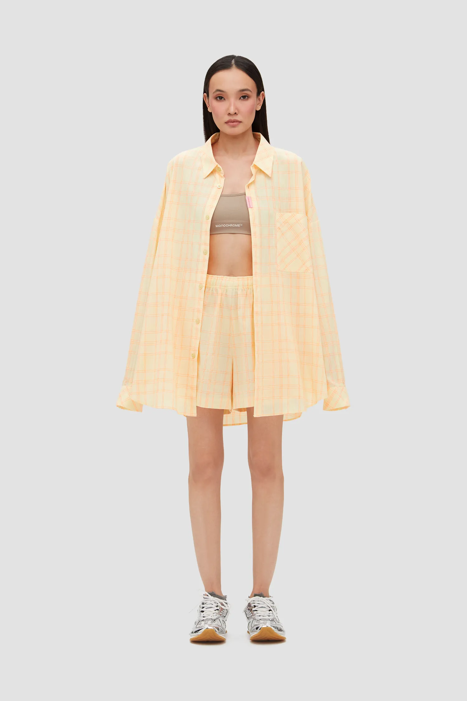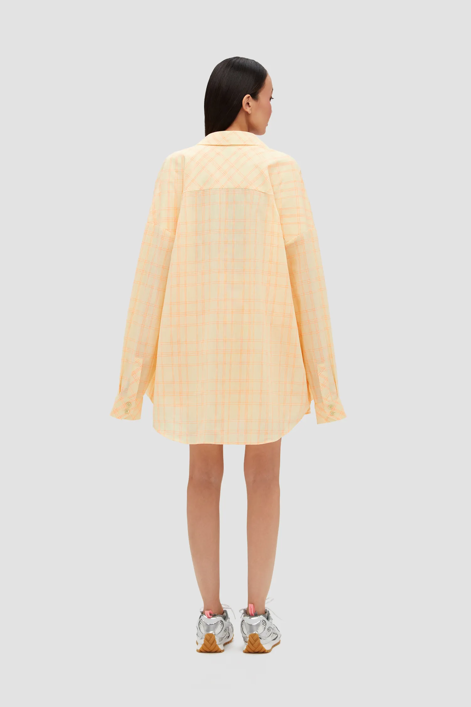 Рубашка в клетку свободного кроя. Легкое хлопковое полотно. Объемные рукава с манжетами на пуговицах. Застежка на пуговицы. Нагрудный карман. Упаковка в подарочную коробку.