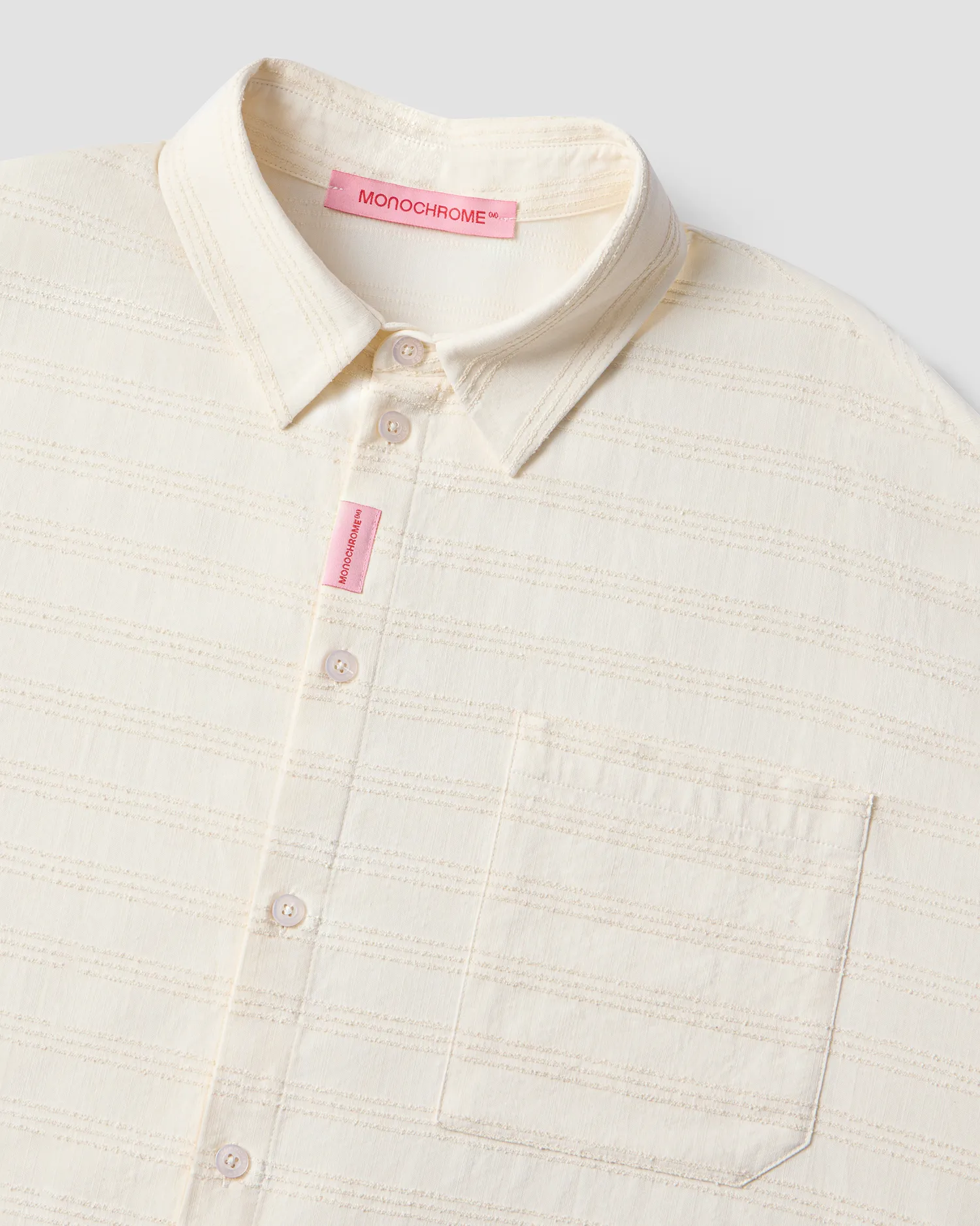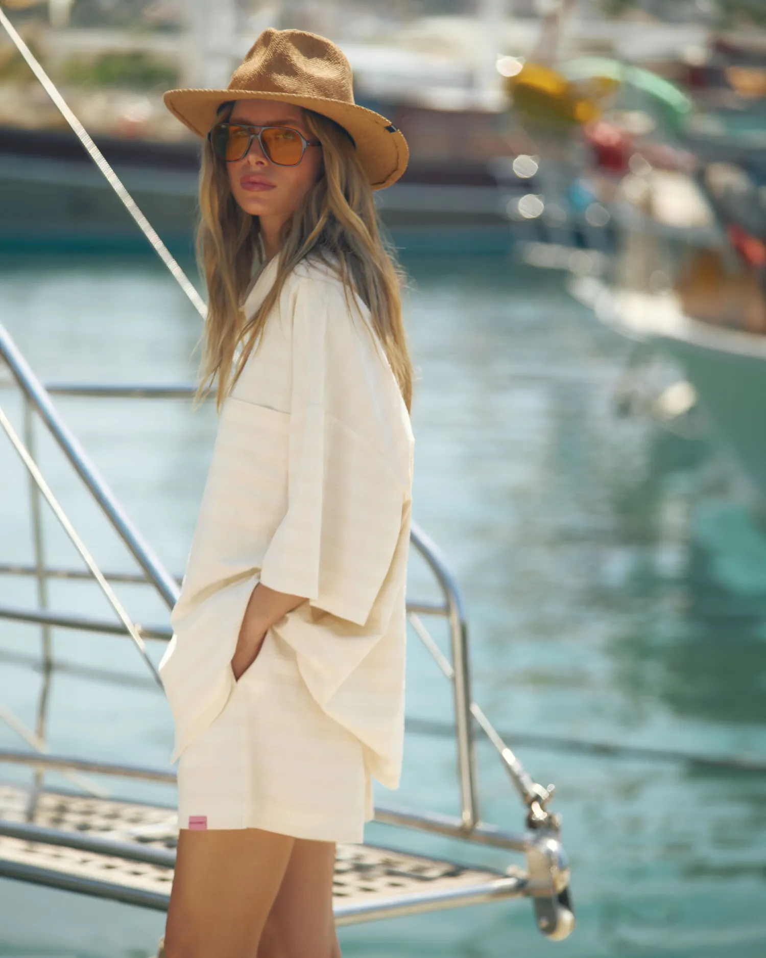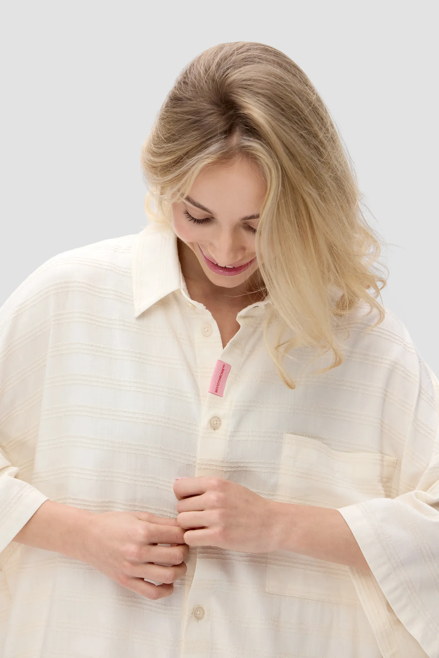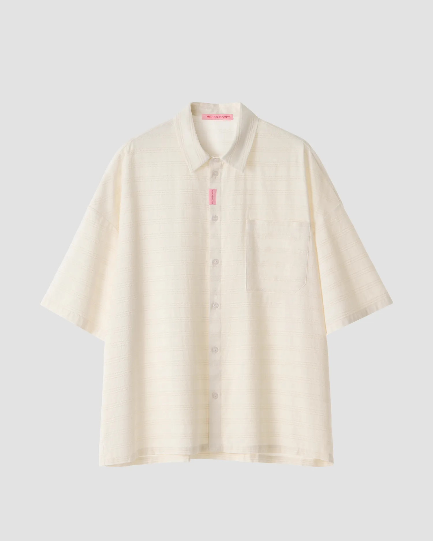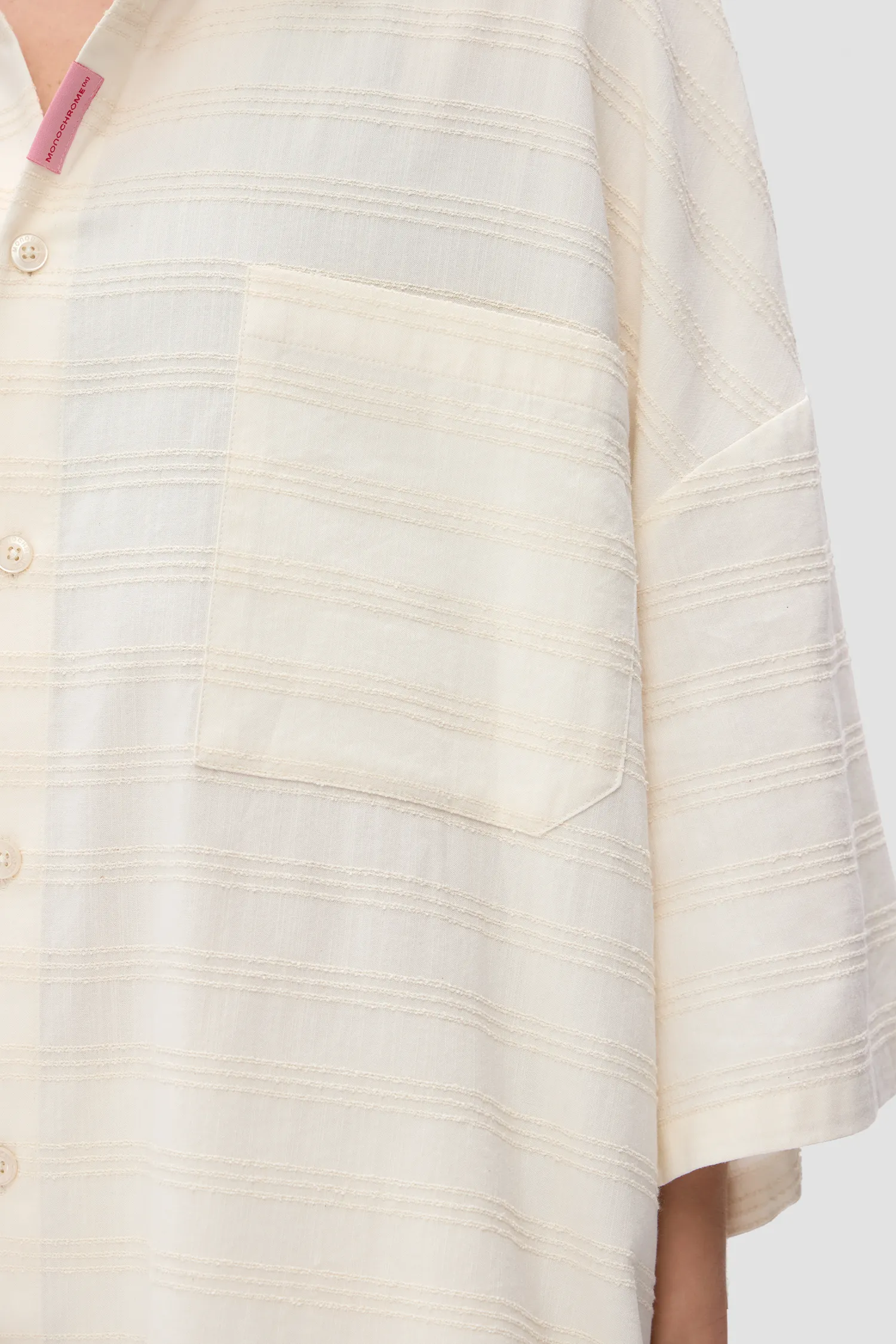 Оверсайз рубашка из смесового хлопка с коротким рукавом из коллекции RESORT. Застежка на пуговицы. Классический воротник. Один нагрудный карман. Легкая дышащая ткань. Onesize&Unisex. Упаковка в подарочную коробку.