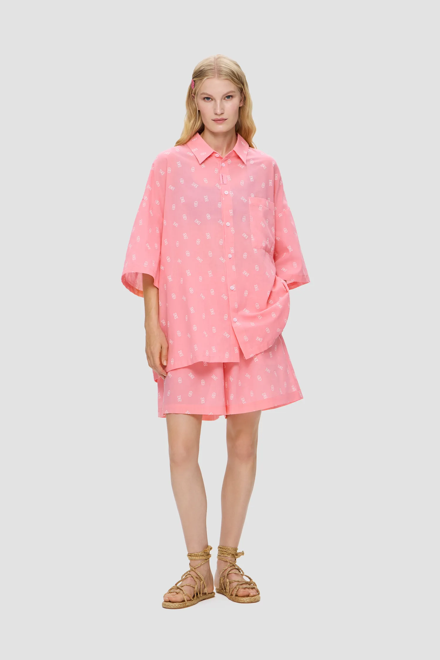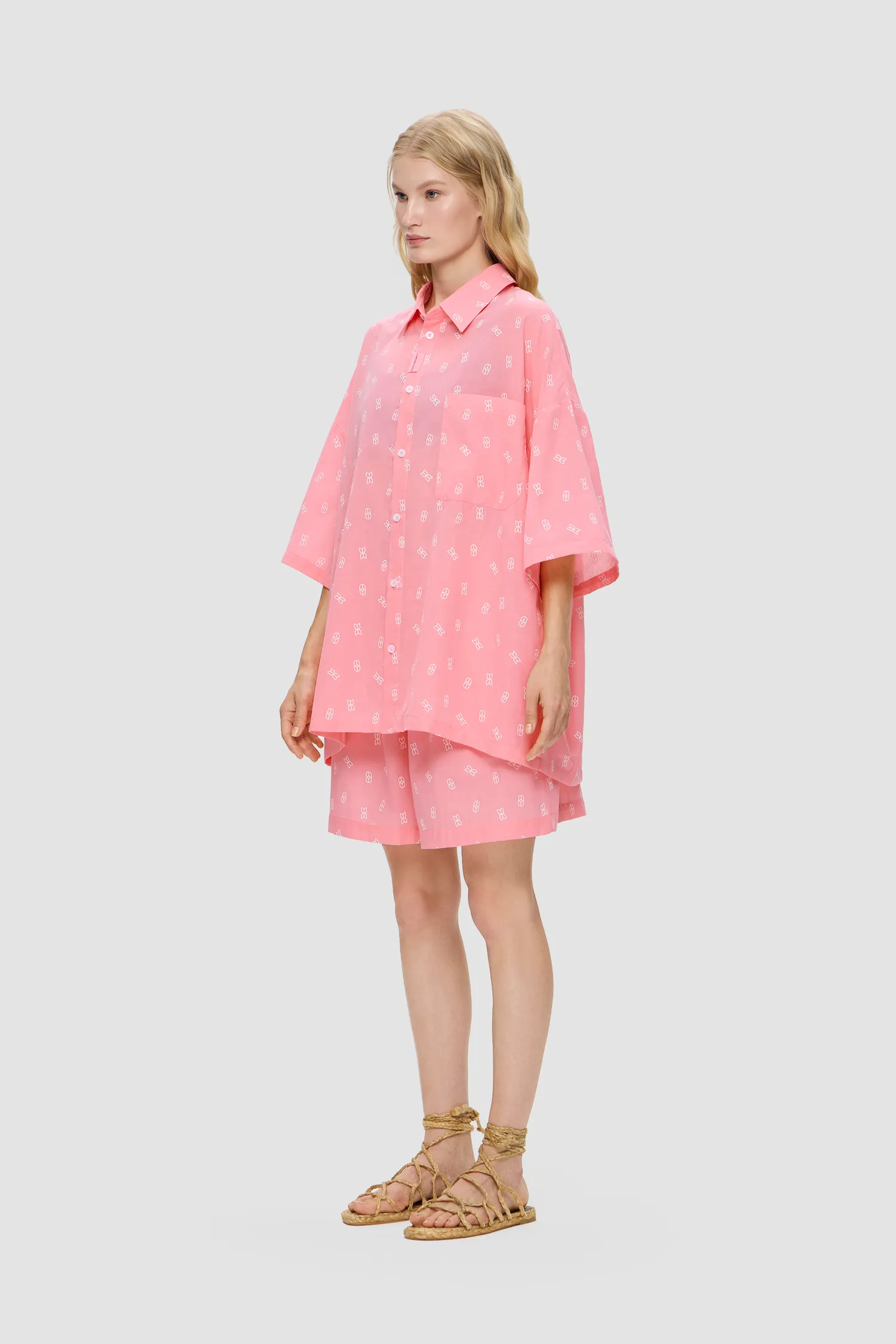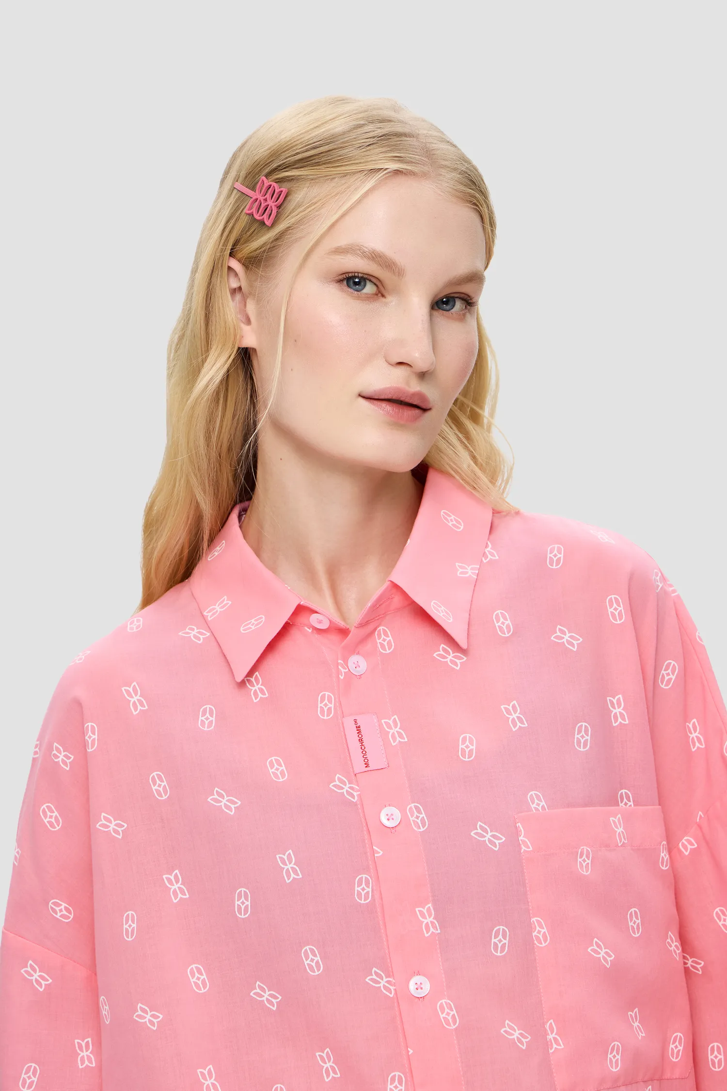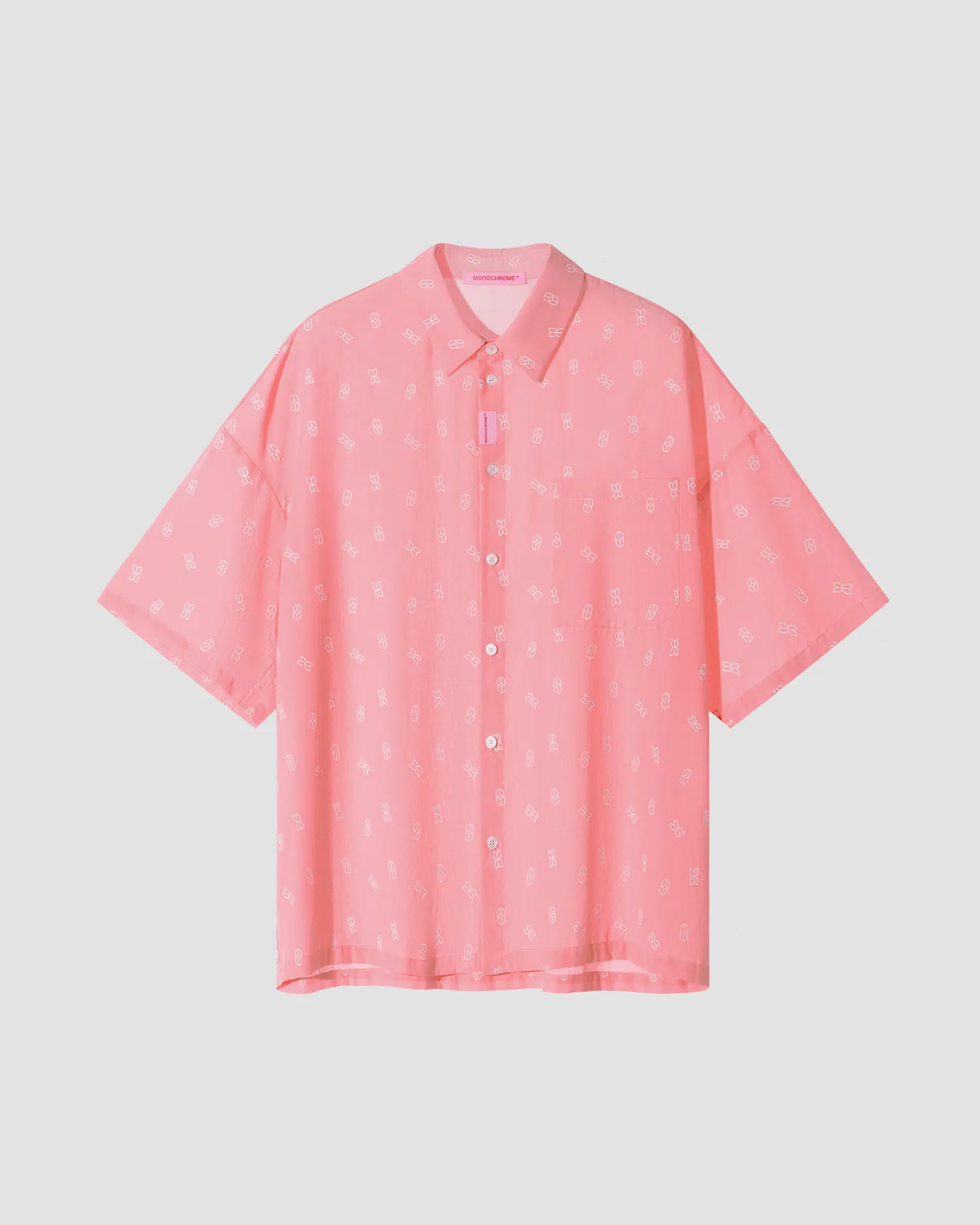 Оверсайз рубашка из 100% хлопка с коротким рукавом. Застежка на пуговицы. Один нагрудный карман. Легкая дышащая ткань с принтом в виде элемента фирменного паттерна MONOCHROME. Сделано в России на собственной мануфактуре MONOCHROME.