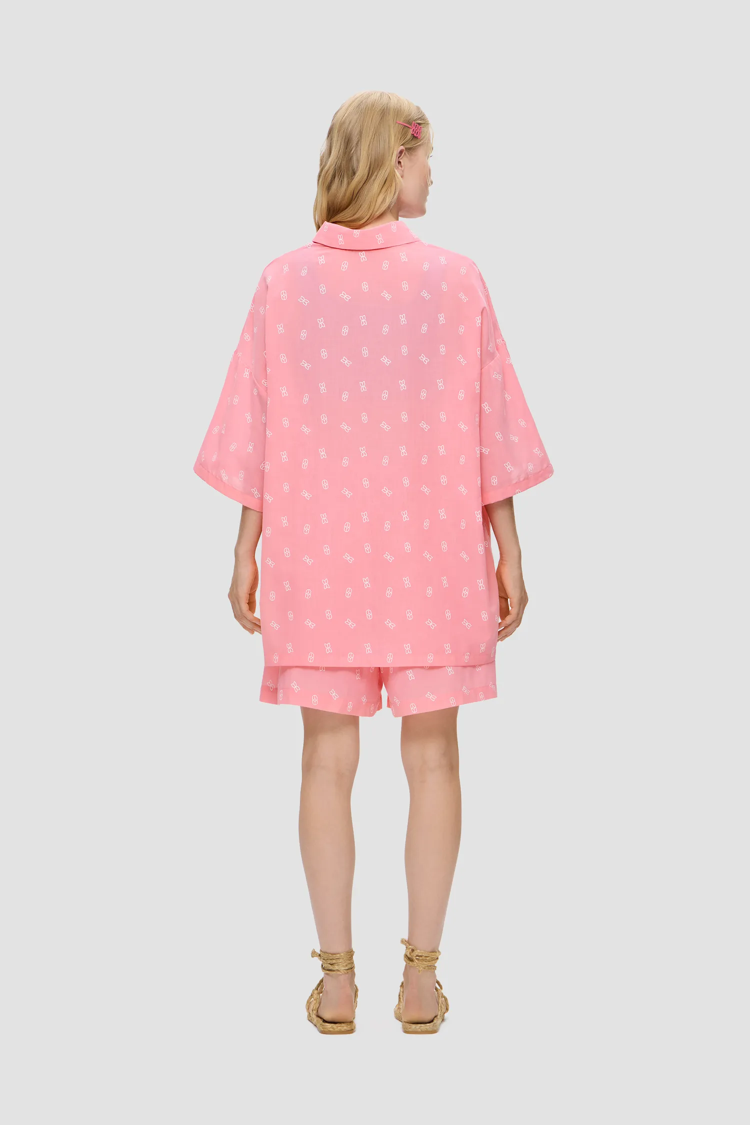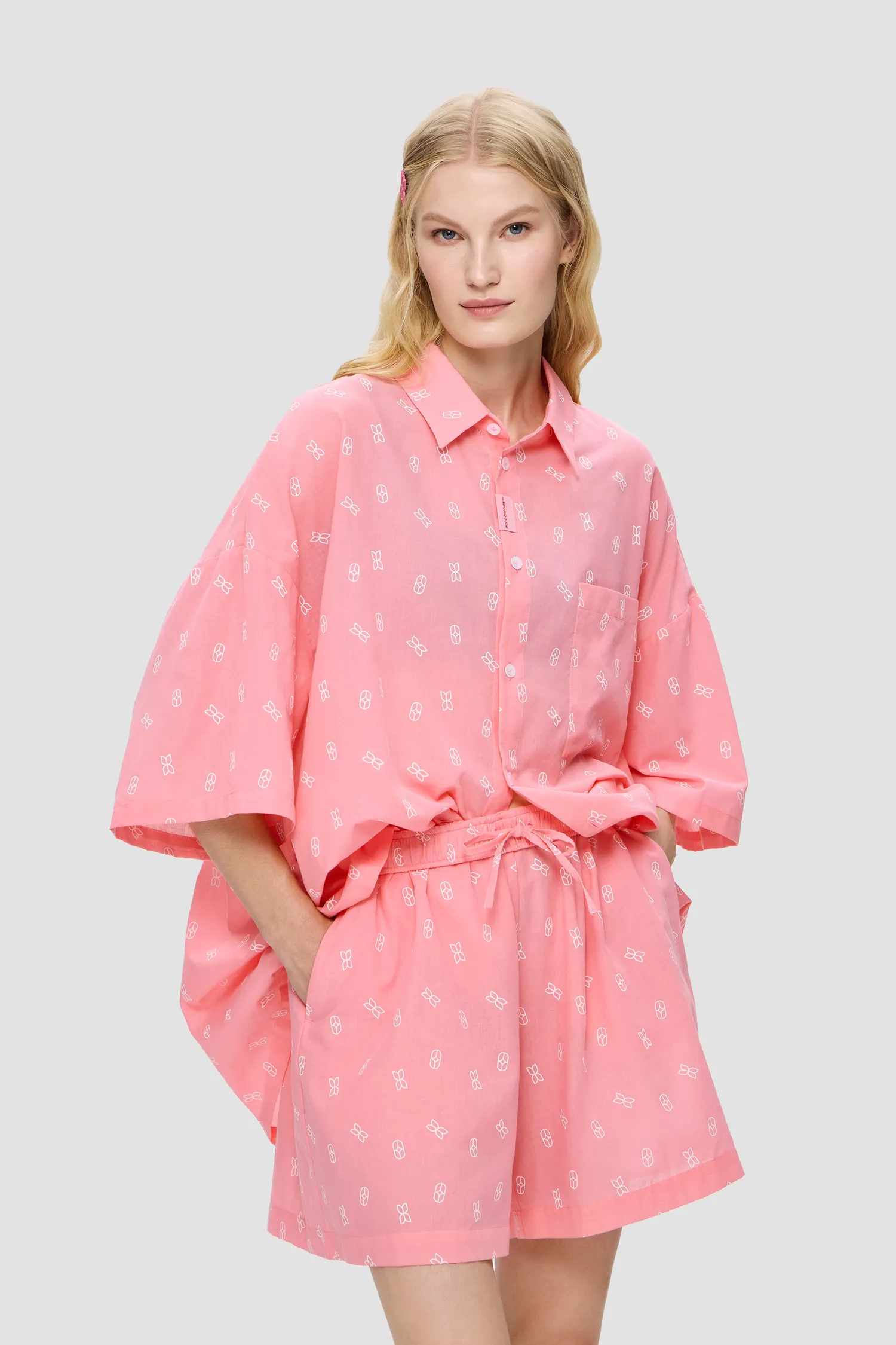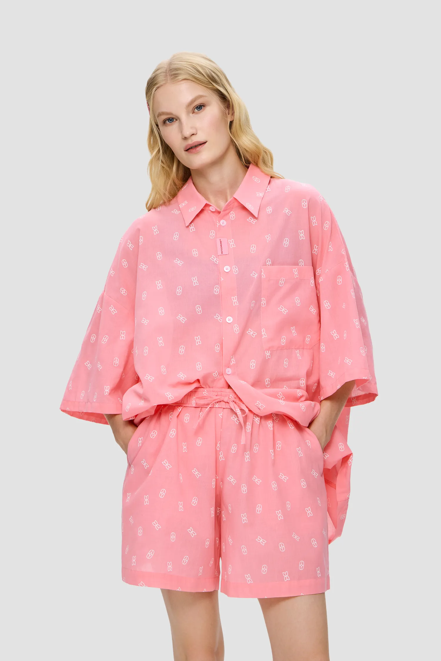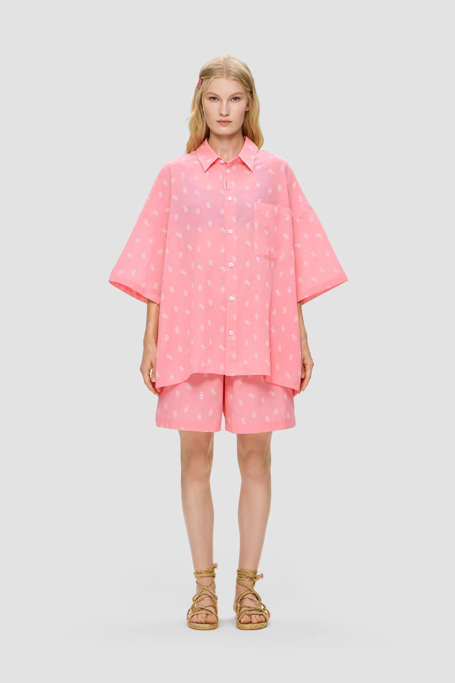 Оверсайз рубашка из 100% хлопка с коротким рукавом. Застежка на пуговицы. Один нагрудный карман. Легкая дышащая ткань с принтом в виде элемента фирменного паттерна MONOCHROME. Сделано в России на собственной мануфактуре MONOCHROME.