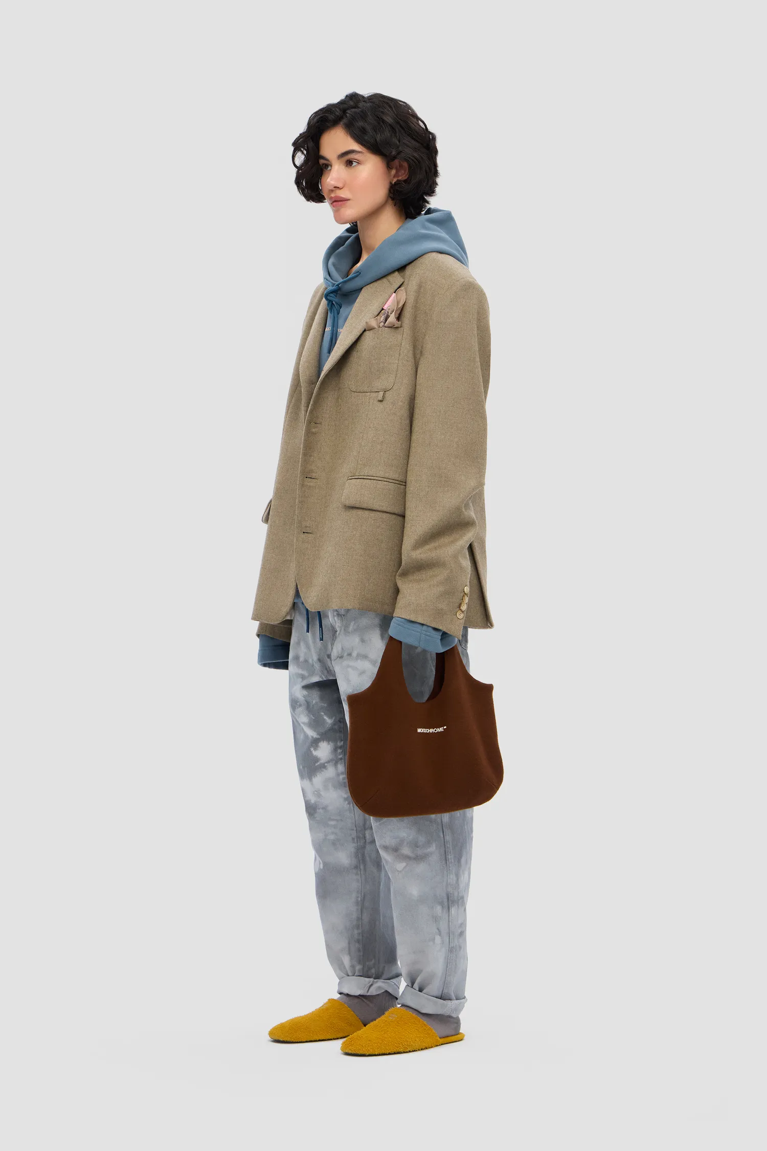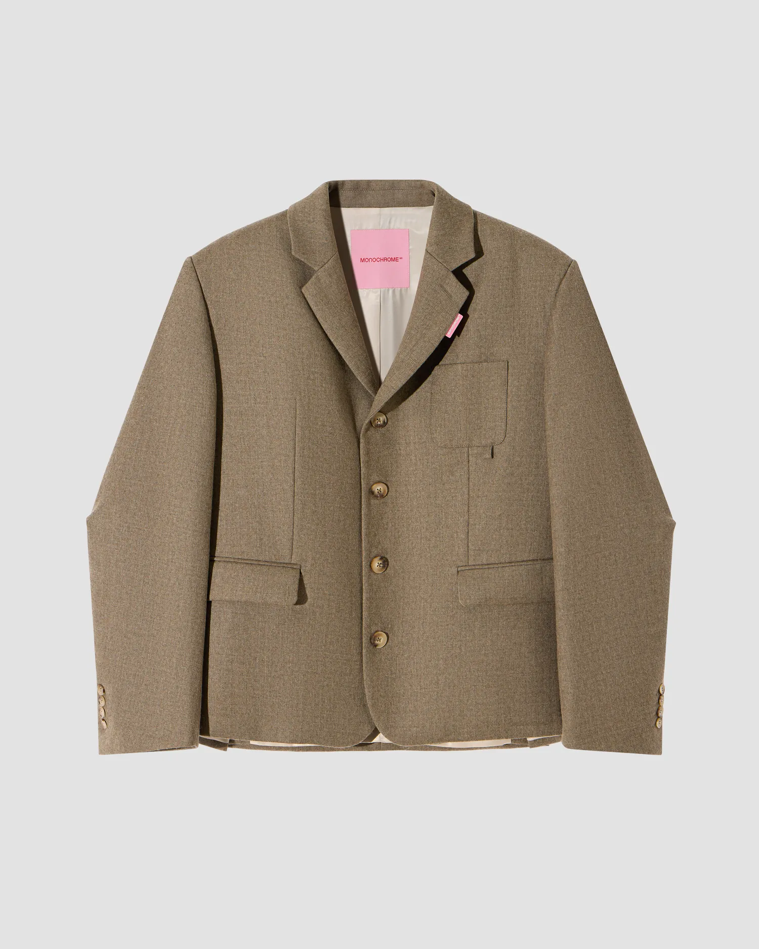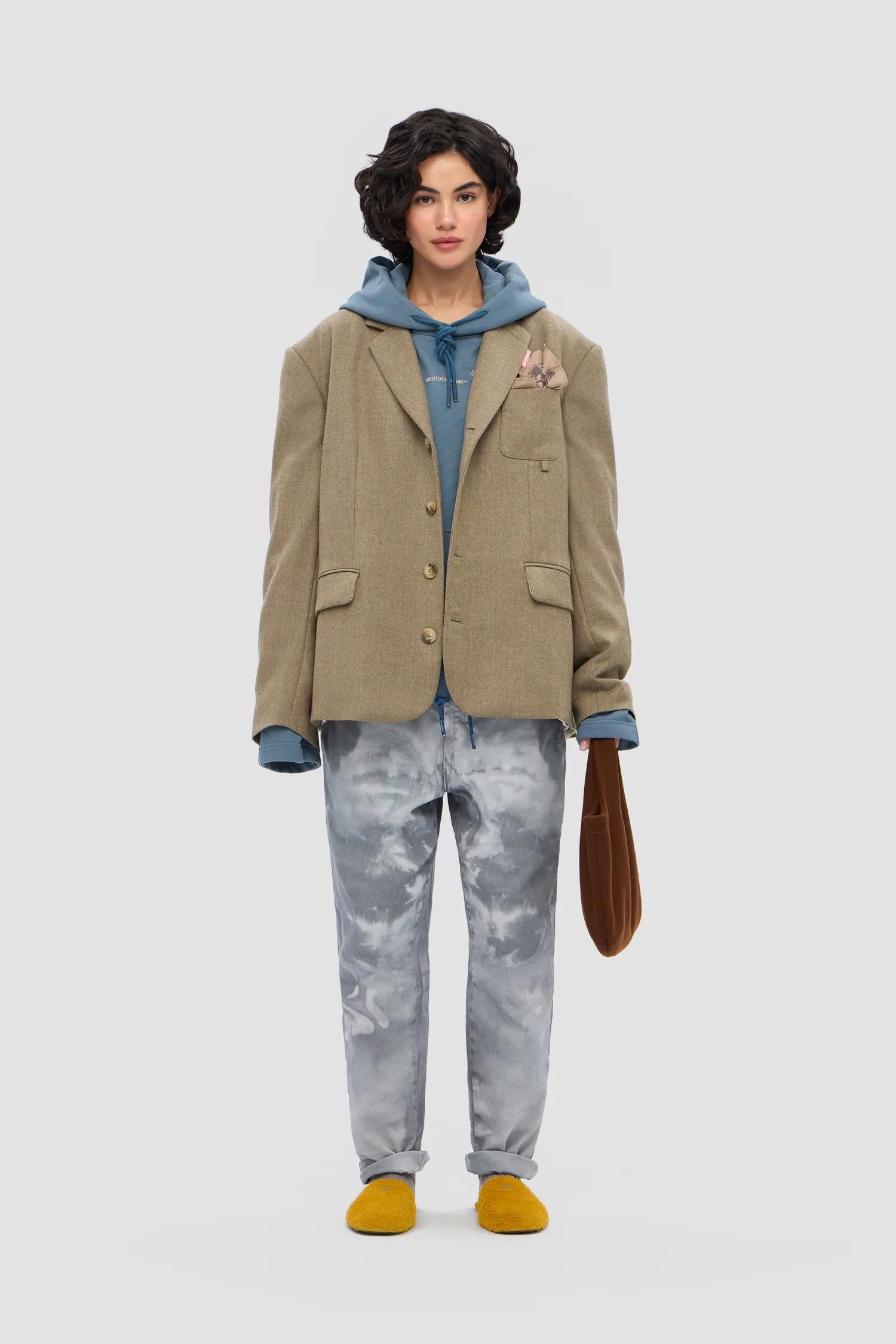 Oversized жакет классического кроя, выполненный из 100% шерсти. Onesize&Unisex. Полимерная нашивка розового цвета с логотипом на лацкане. Тип застежки: брендированные пуговицы. Натуральный подклад с вискозой в составе позволяет телу ""дышать"". Упаковка в подарочную коробку.