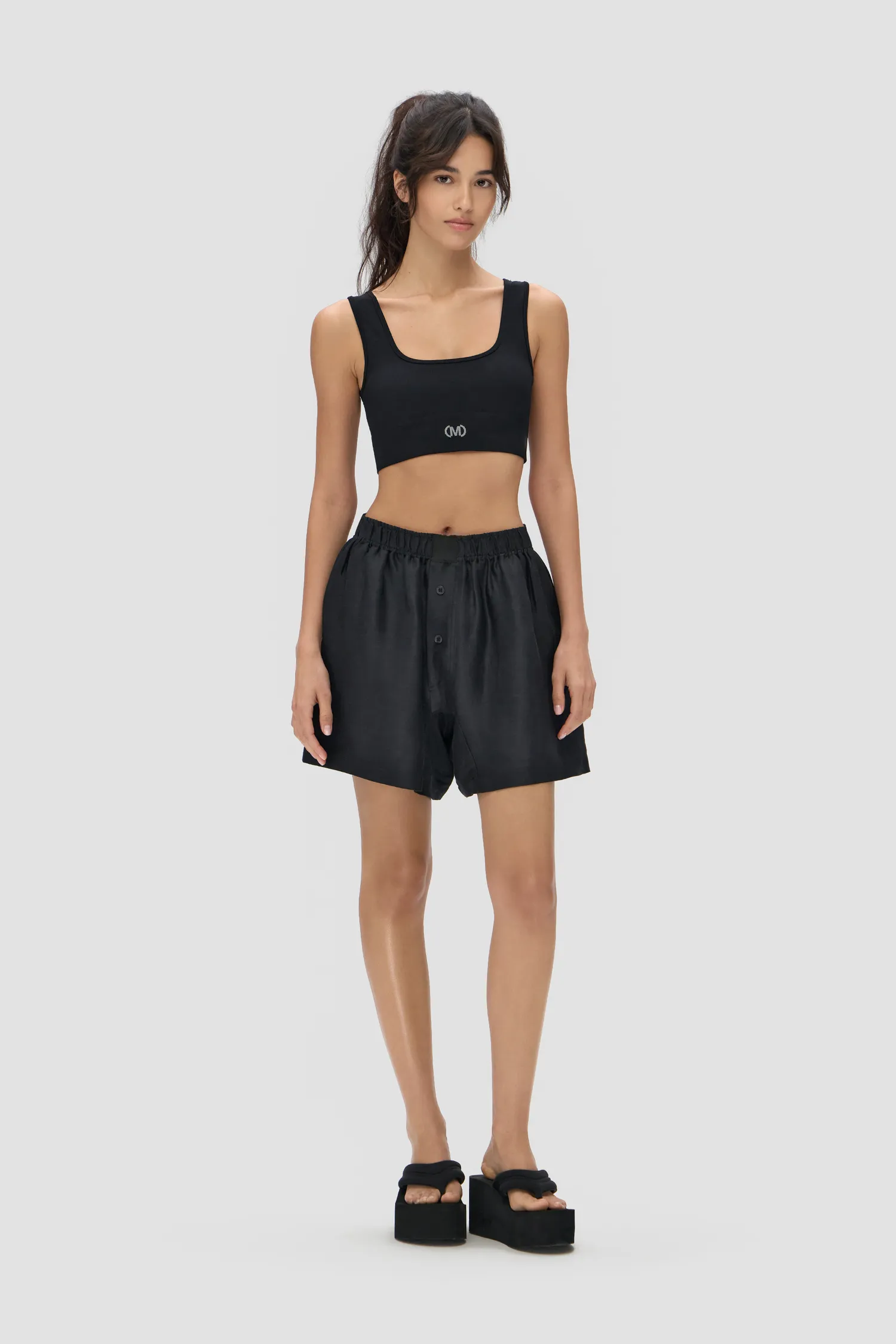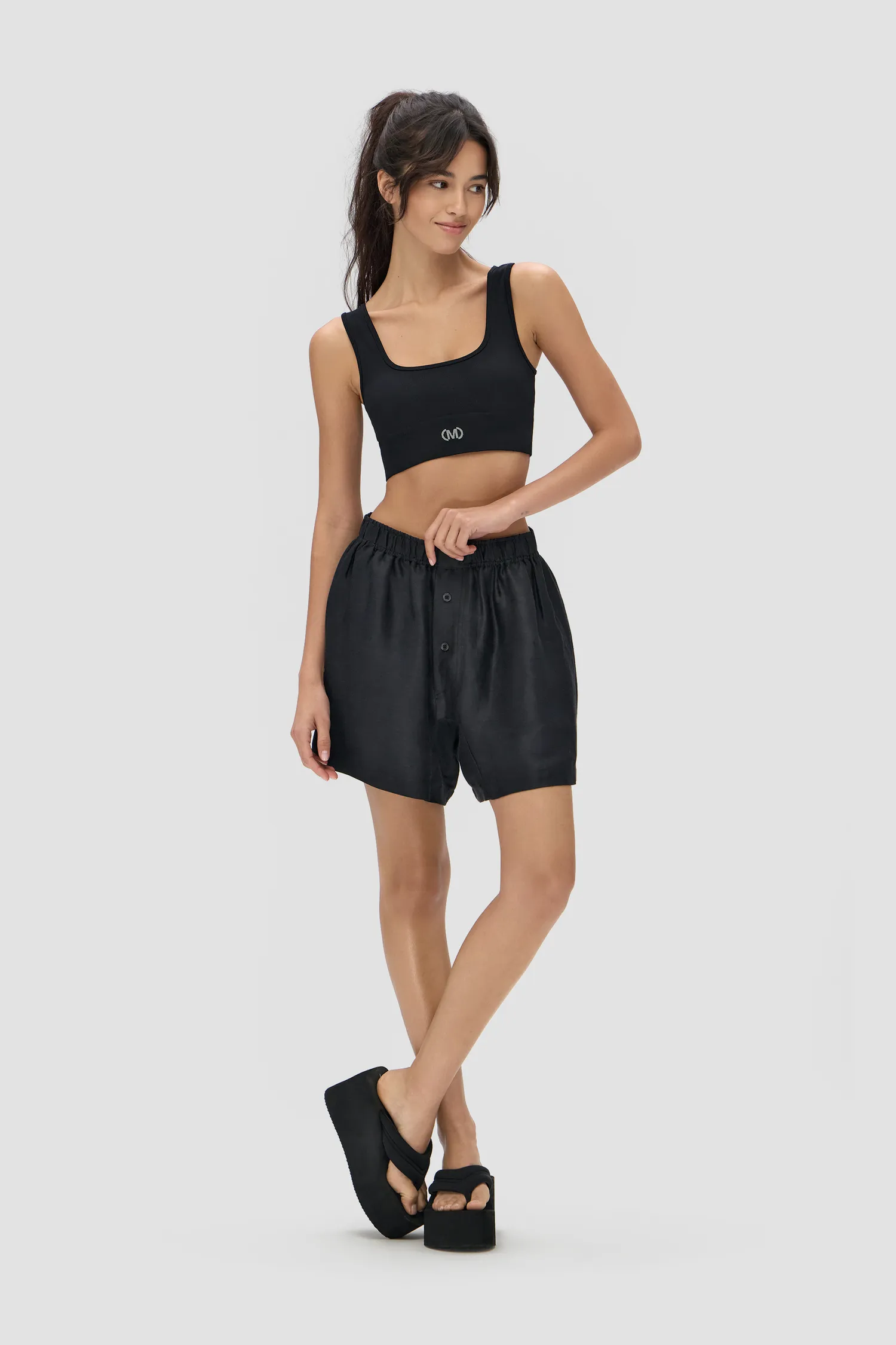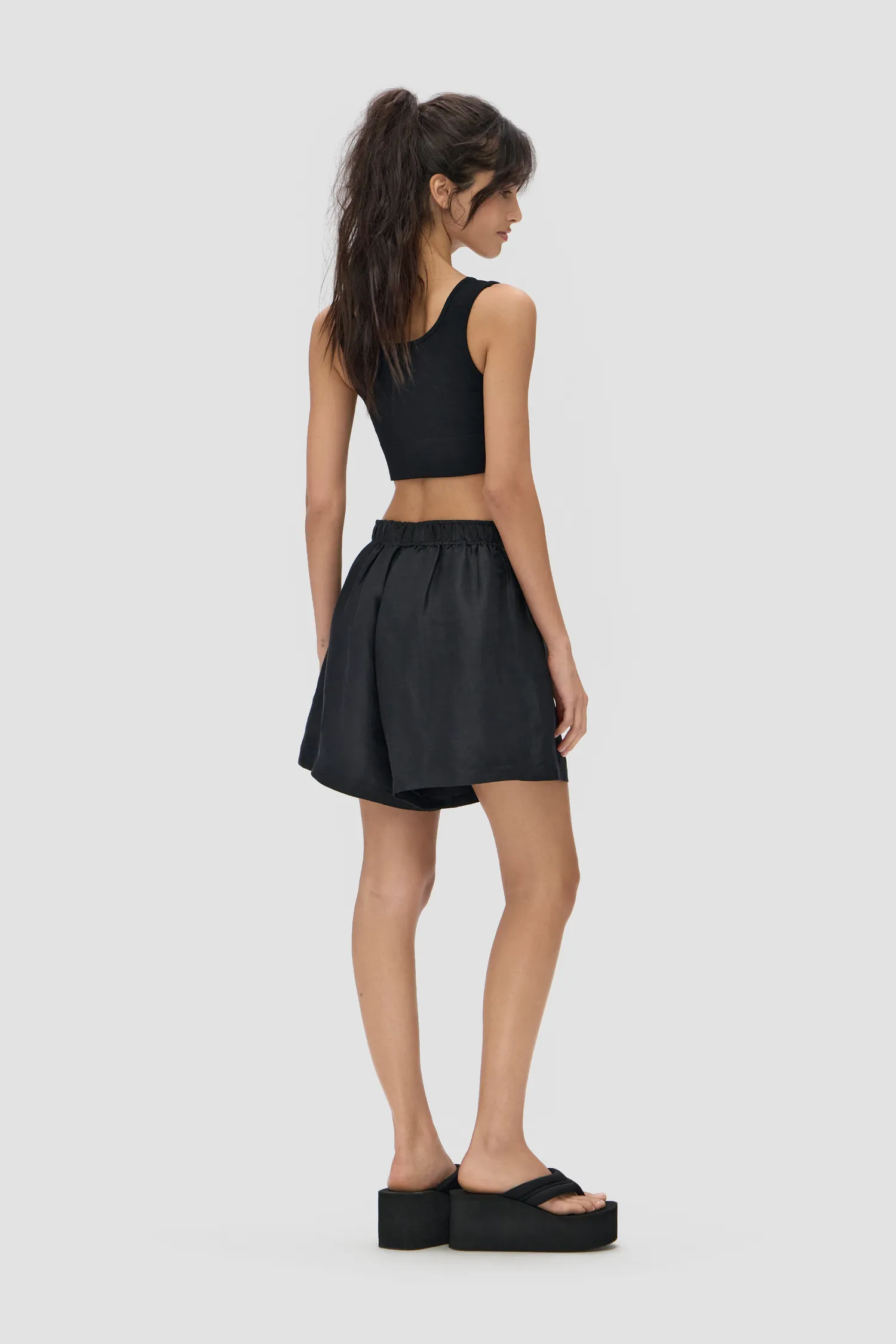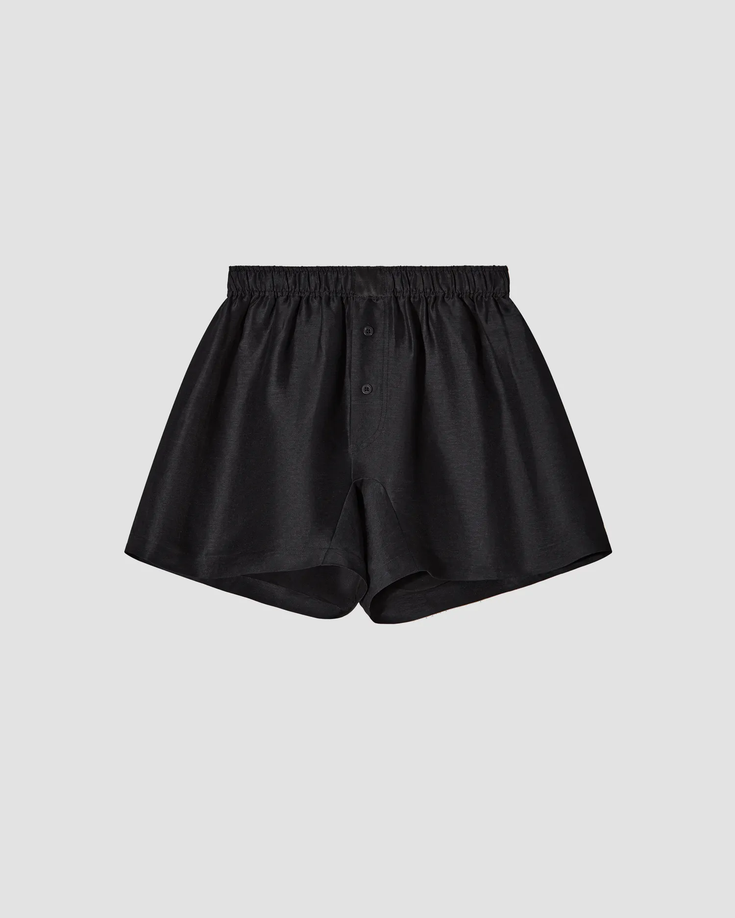 Шорты из смеси льна и шелка. Свободный крой. Гладкая, слегка глянцевая фактура. Пояс на резинке. Упаковка в подарочную коробку. Сделано в России на собственной мануфактуре MONOCHROME.