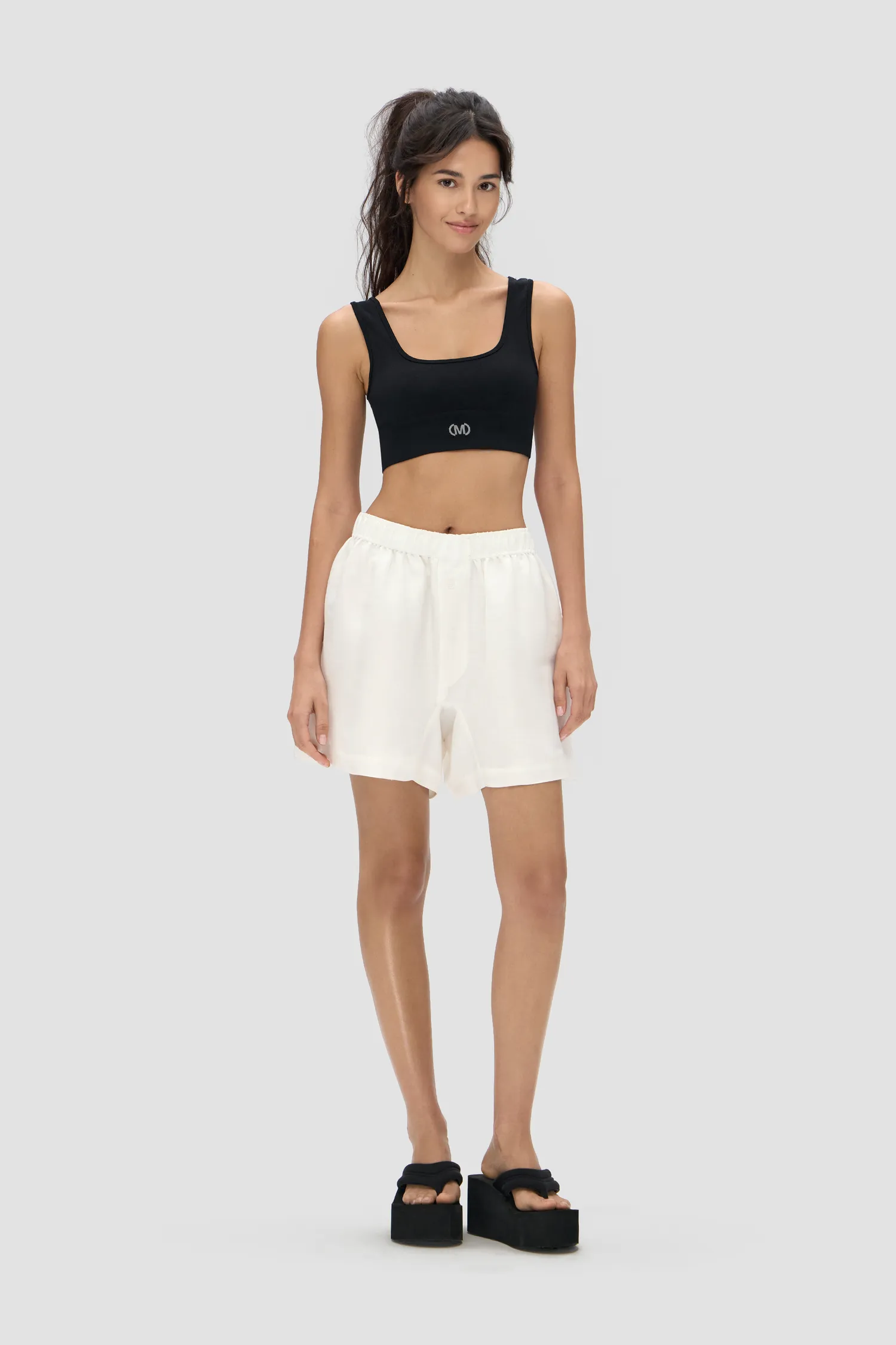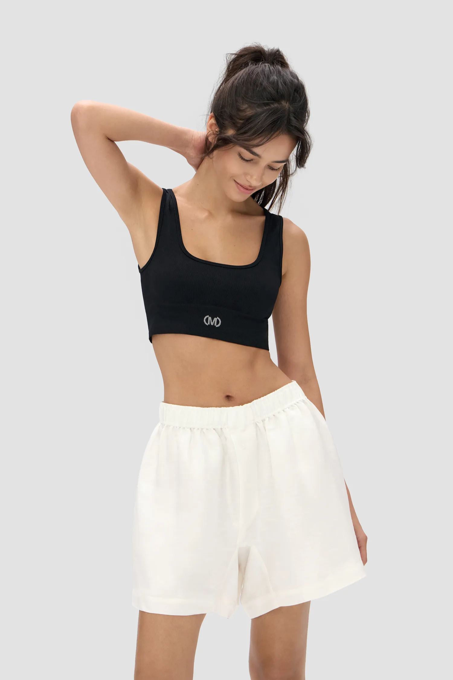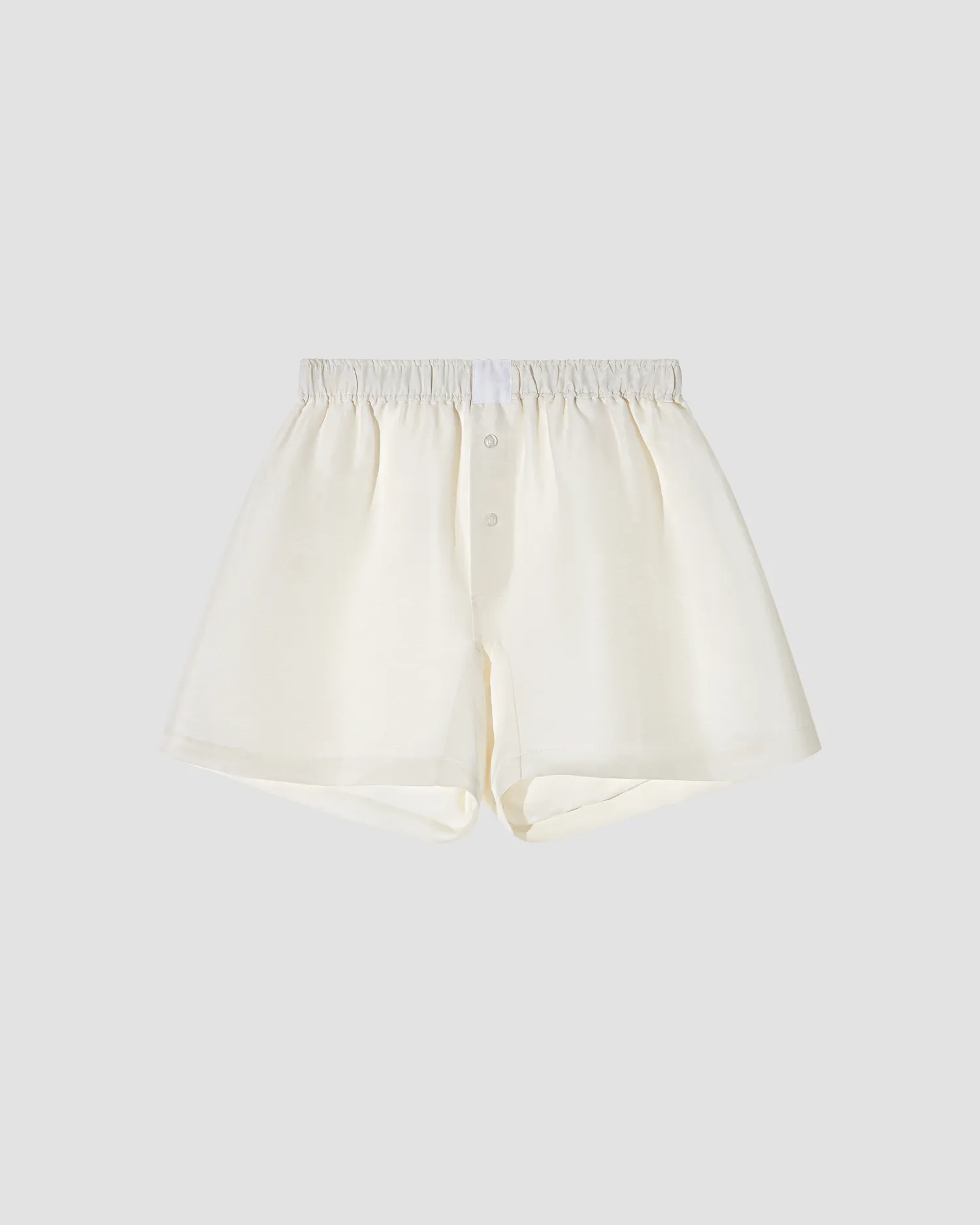 Шорты из смеси льна и шелка. Свободный крой. Гладкая, слегка глянцевая фактура. Пояс на резинке. Упаковка в подарочную коробку. Сделано в России на собственной мануфактуре MONOCHROME.
