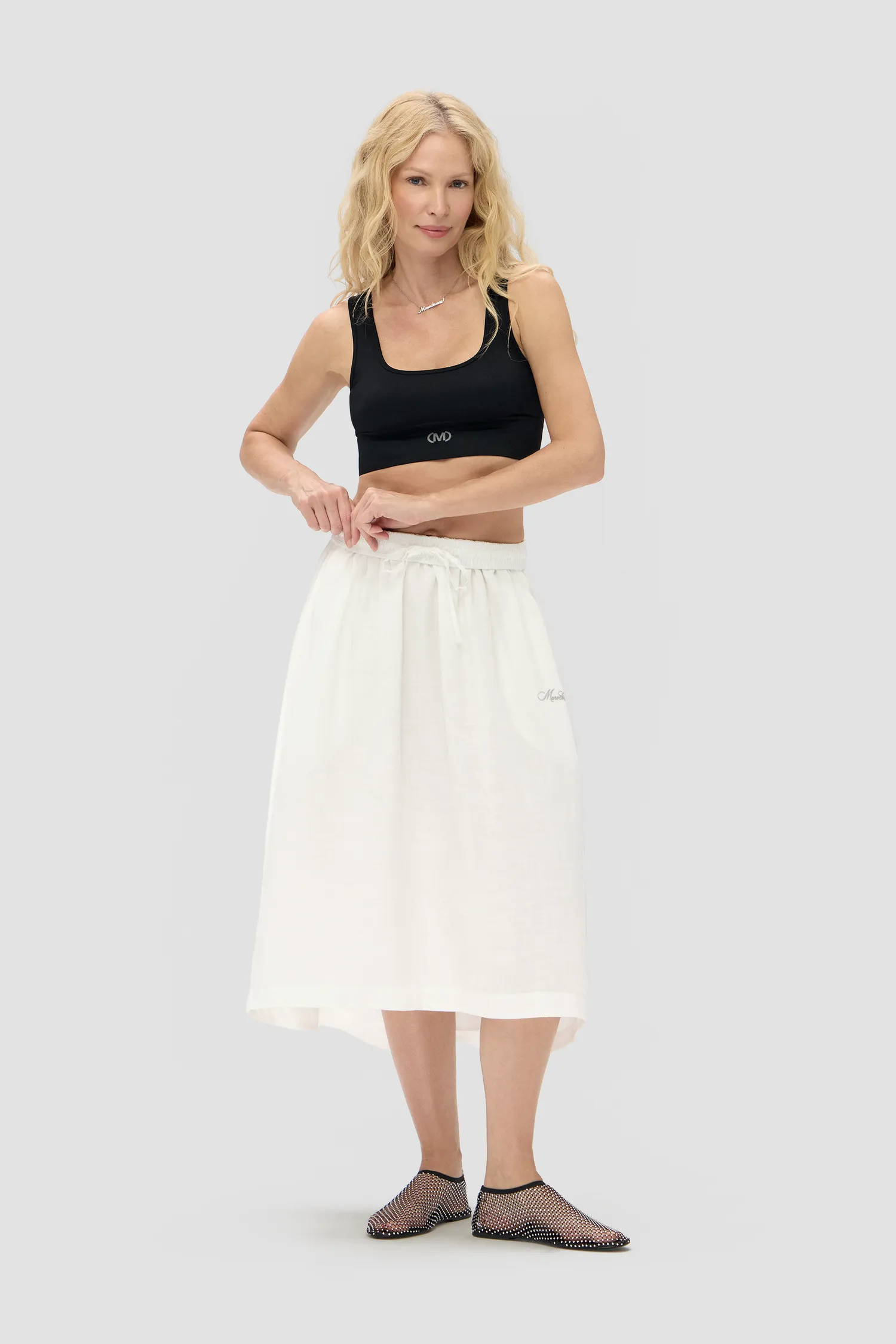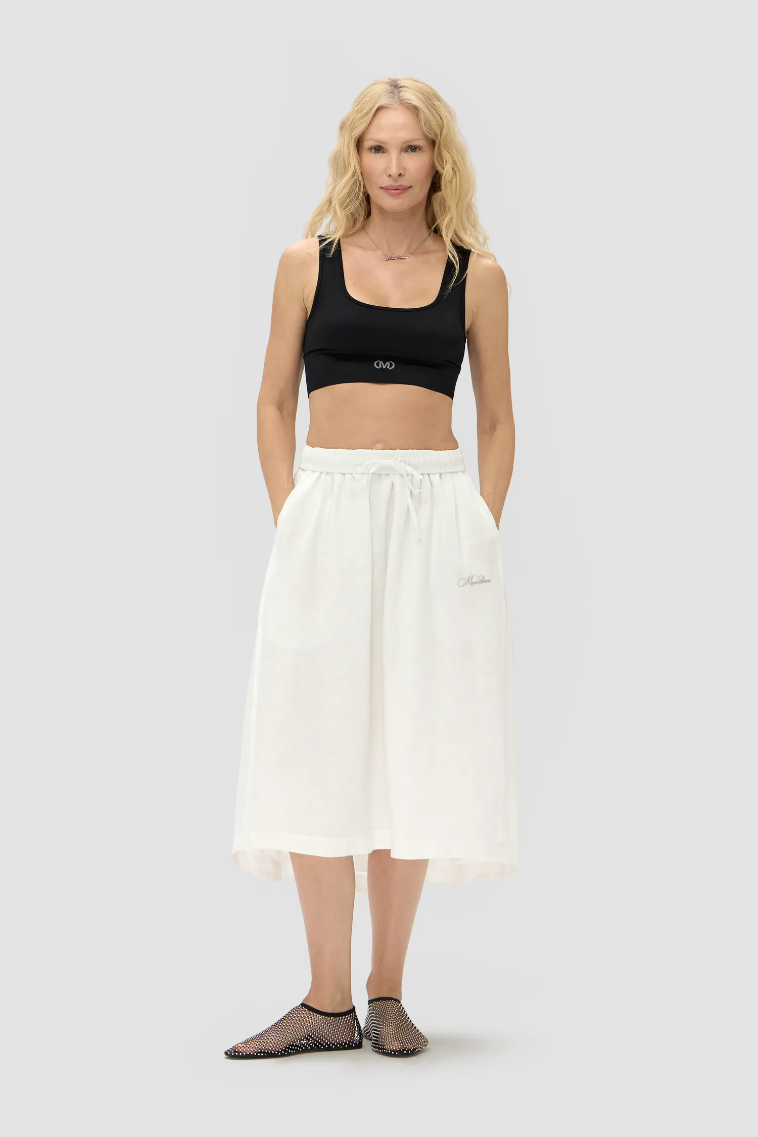 Юбка из 100% конопляного полотна свободного кроя. Скрытые карманы в боковых швах. Удлиненная задняя часть. Рельефный логотип MONOCHROME в области бедра. Упаковка в подарочную коробку.