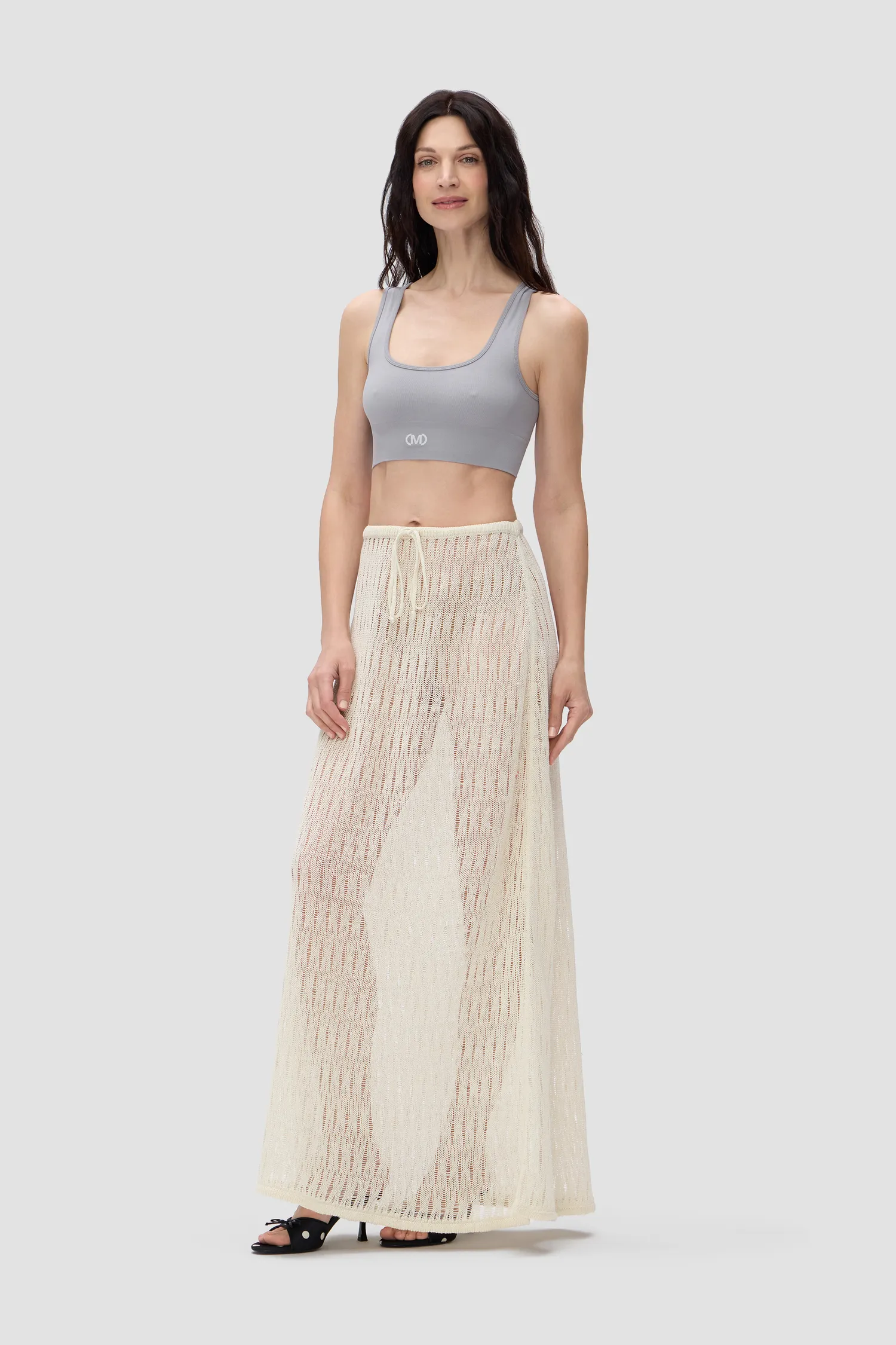 Oversized юбка из 100% вязаного льна из коллекции AIR. Льняная ткань идеально подходит для жары благодаря своей способности пропускать воздух, обеспечивая комфорт для вашей кожи. Изделие на резинке с завязками. Металлическая нашивка в виде фирменного элемента паттерна MONOCHROME. В измерениях изделий допустимо колебание ± 2 см. Упаковка в льняной мешочек и в подарочную коробку.