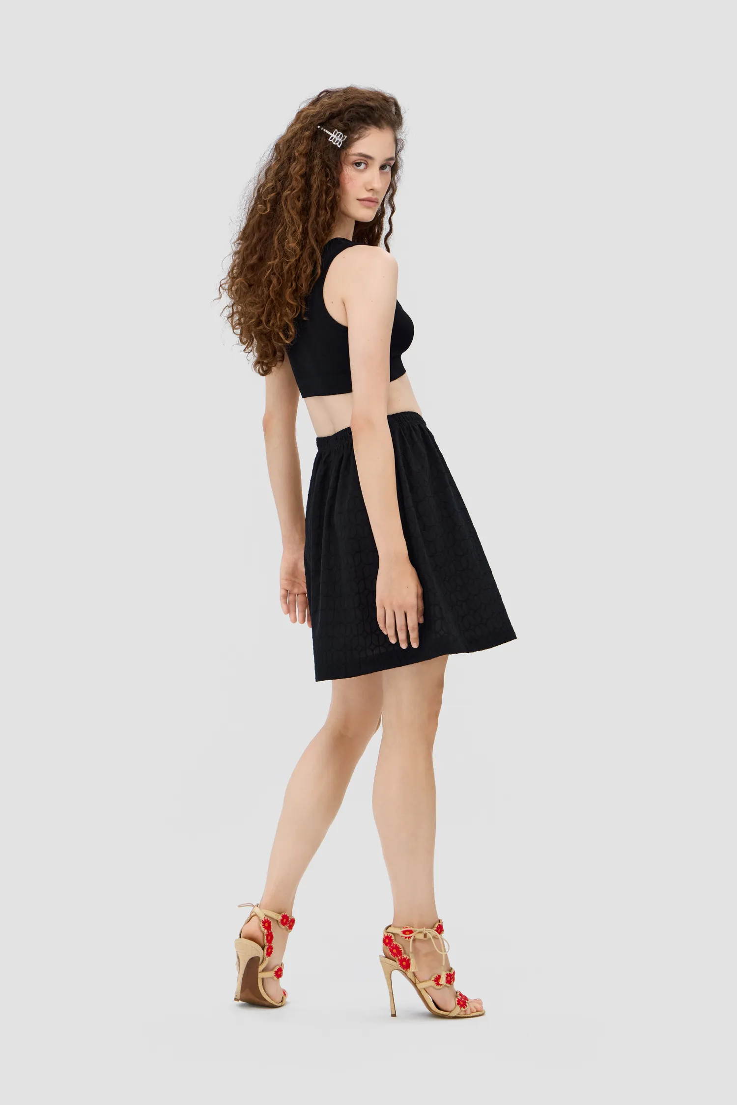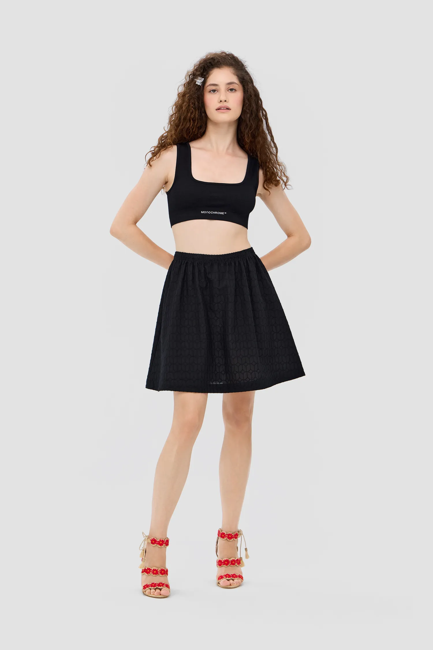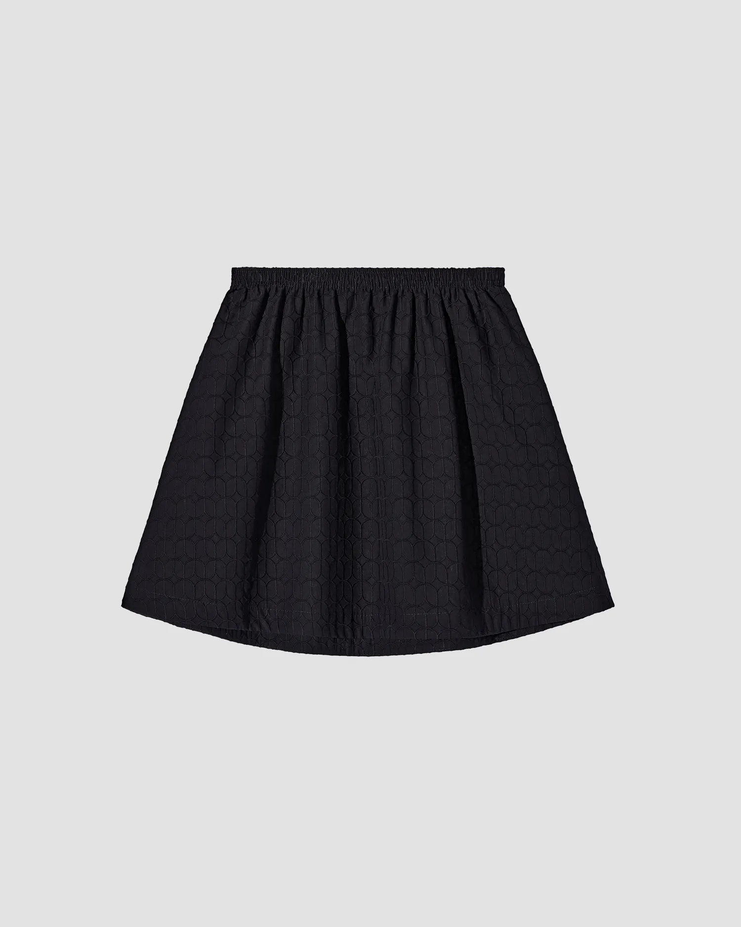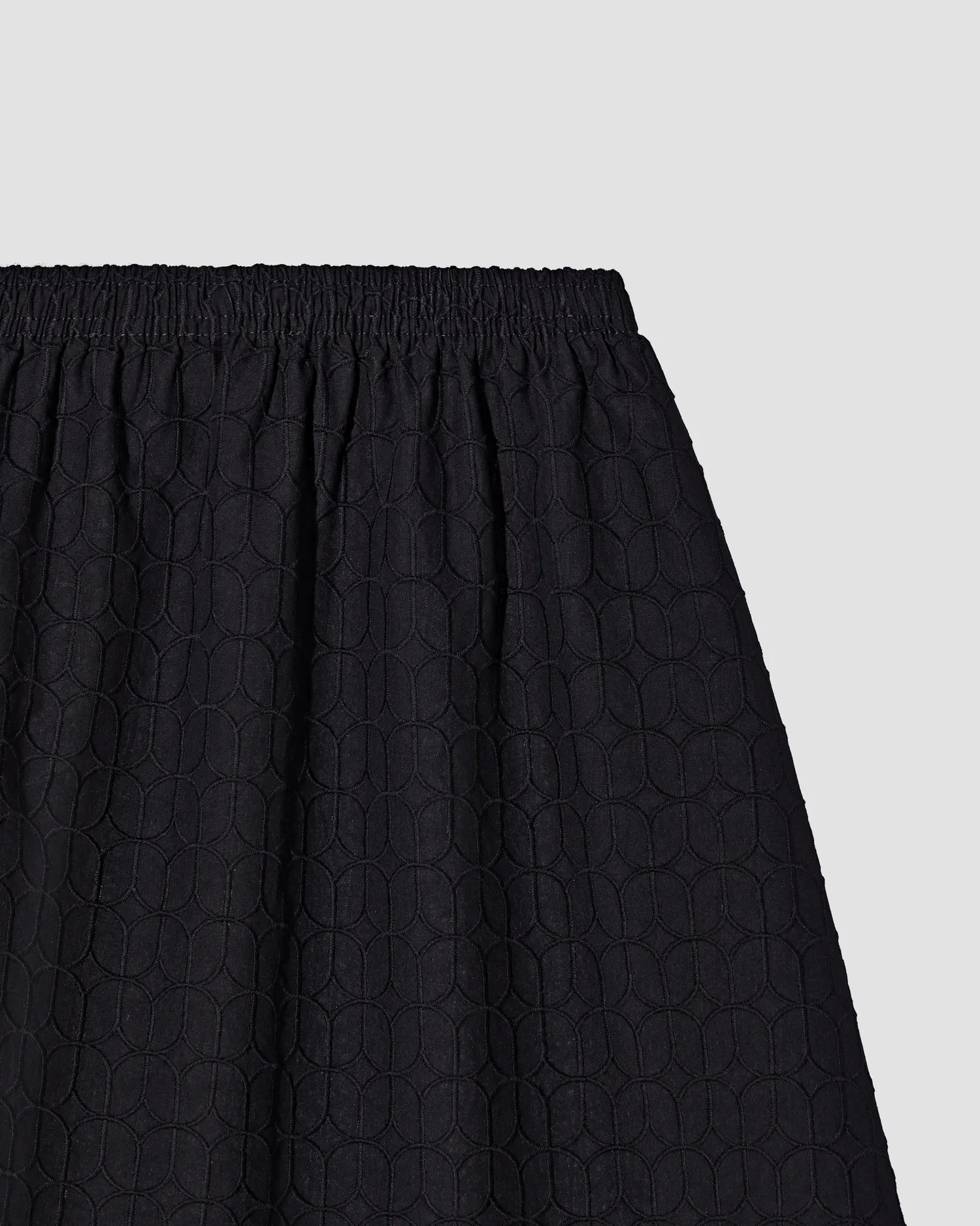 Юбка свободного кроя из легкой хлопковой ткани, расшитой по всей поверхности полотна фирменным паттерном MONOCHROME. Пояс на резинке. Упаковка в подарочную коробку. Сделано в России на собственной мануфактуре MONOCHROME.