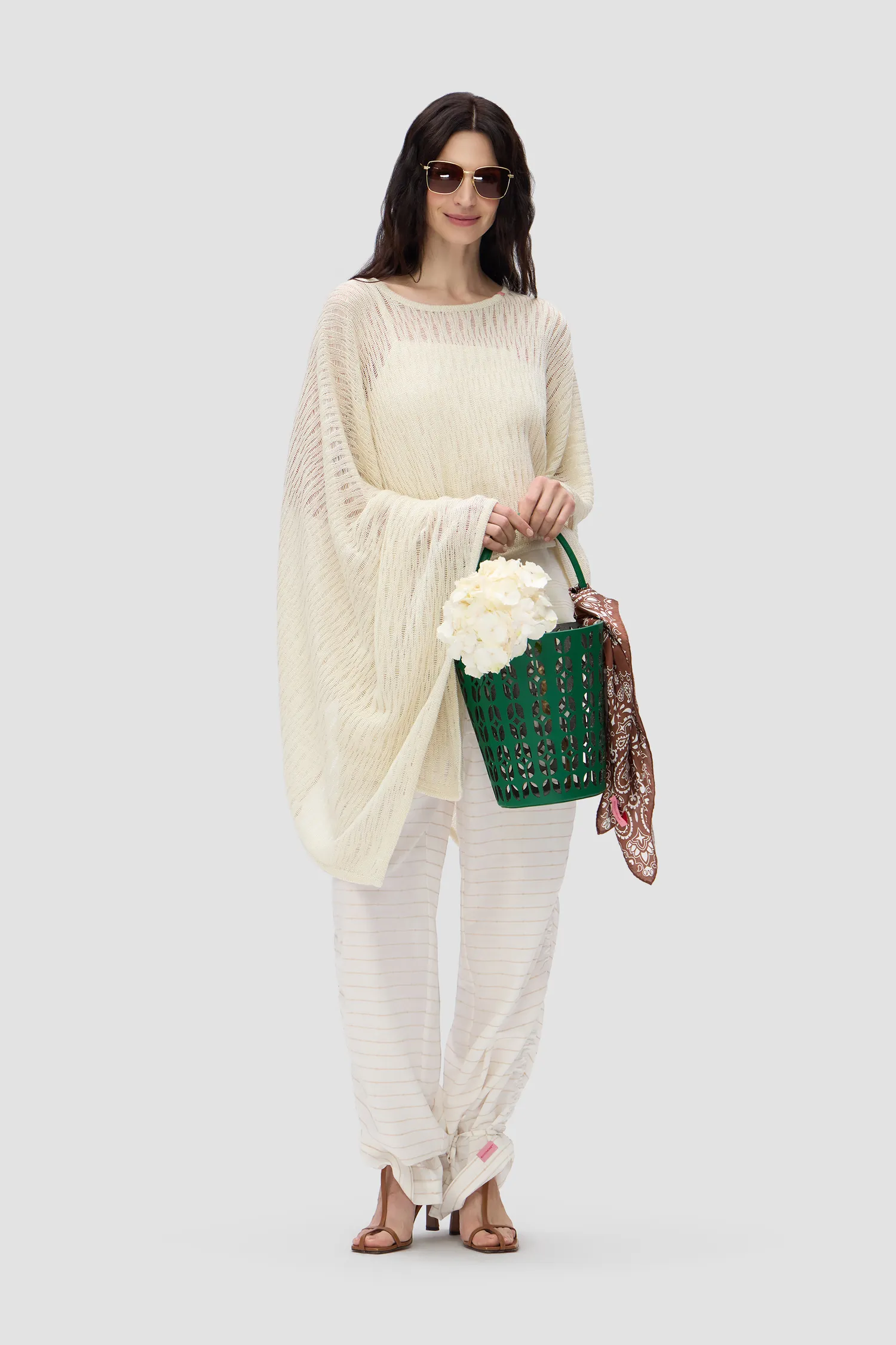 Oversized накидка из 100% вязаного льна из коллекции AIR. Льняная ткань идеально подходит для жары благодаря своей способности пропускать воздух, обеспечивая комфорт для вашей кожи. Изделие с ассиметричным силуэтом. Металлическая нашивка в виде фирменного элемента паттерна MONOCHROME. В измерениях изделий допустимо колебание ± 2 см. Onesize&Unisex. Упаковка в льняной мешочек и в подарочную коробку.