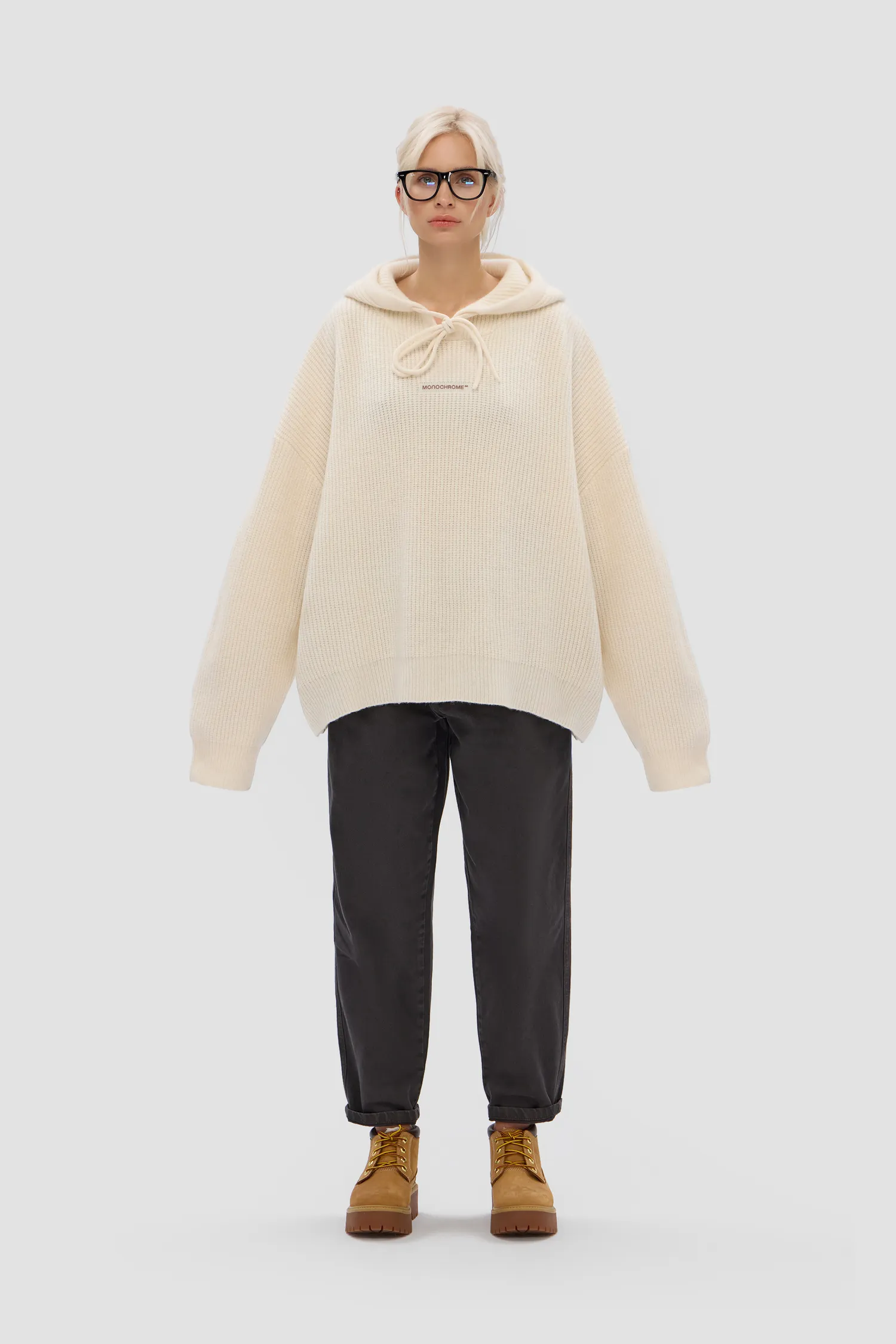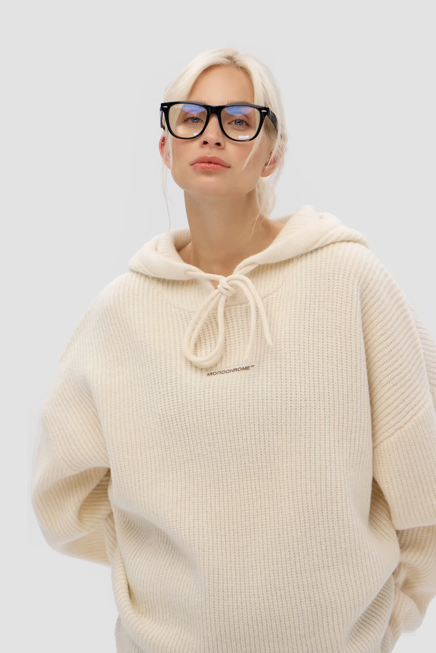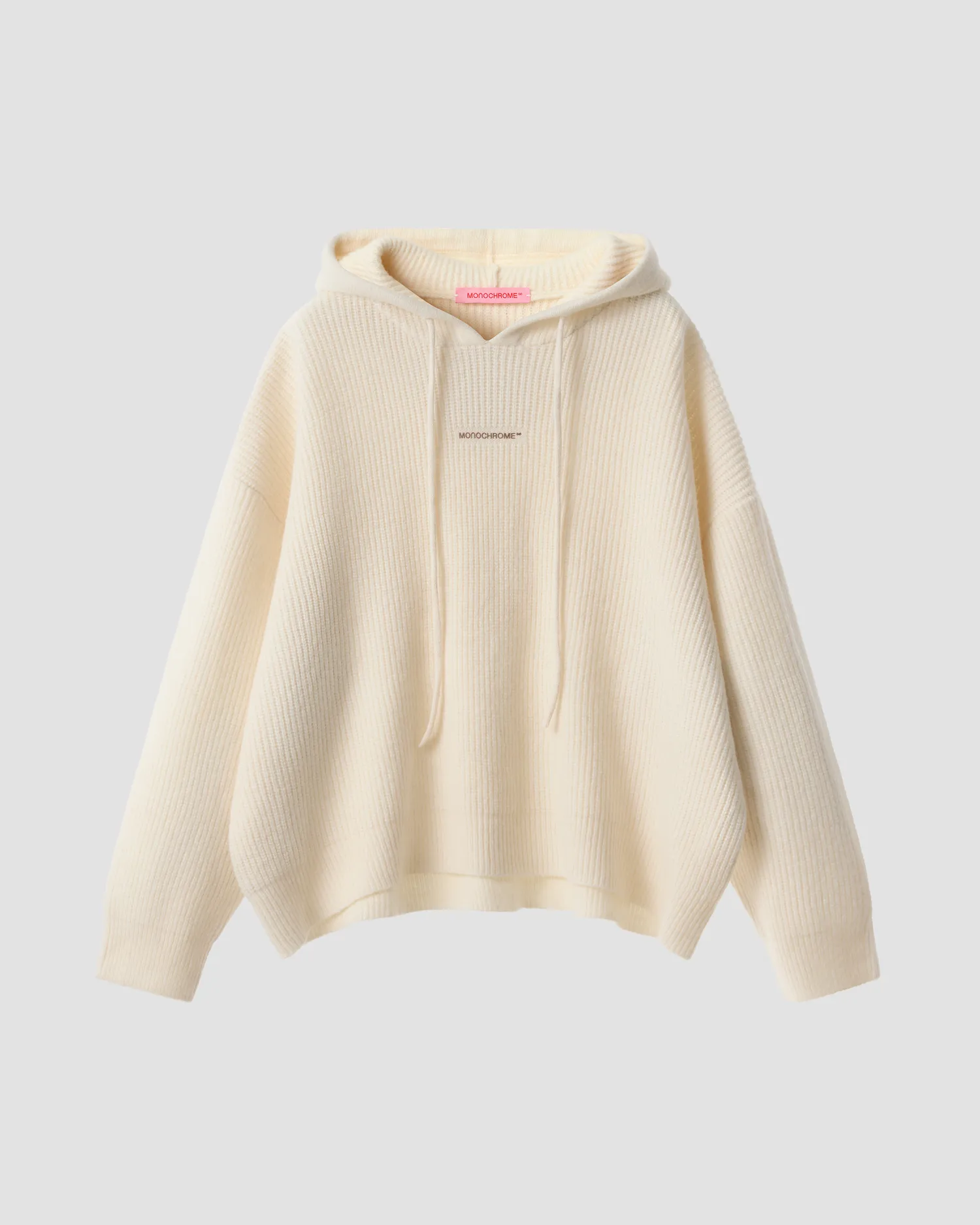 Вязаный худи в рубчик из смесовой шерсти. Объемный капюшон на завязках. Рельефный логотип MONOCHROME в области груди. Onesize&unisex. Цвет: молочный. Упаковка в подарочную коробку. Хранить изделие в сложенном виде горизонтально.