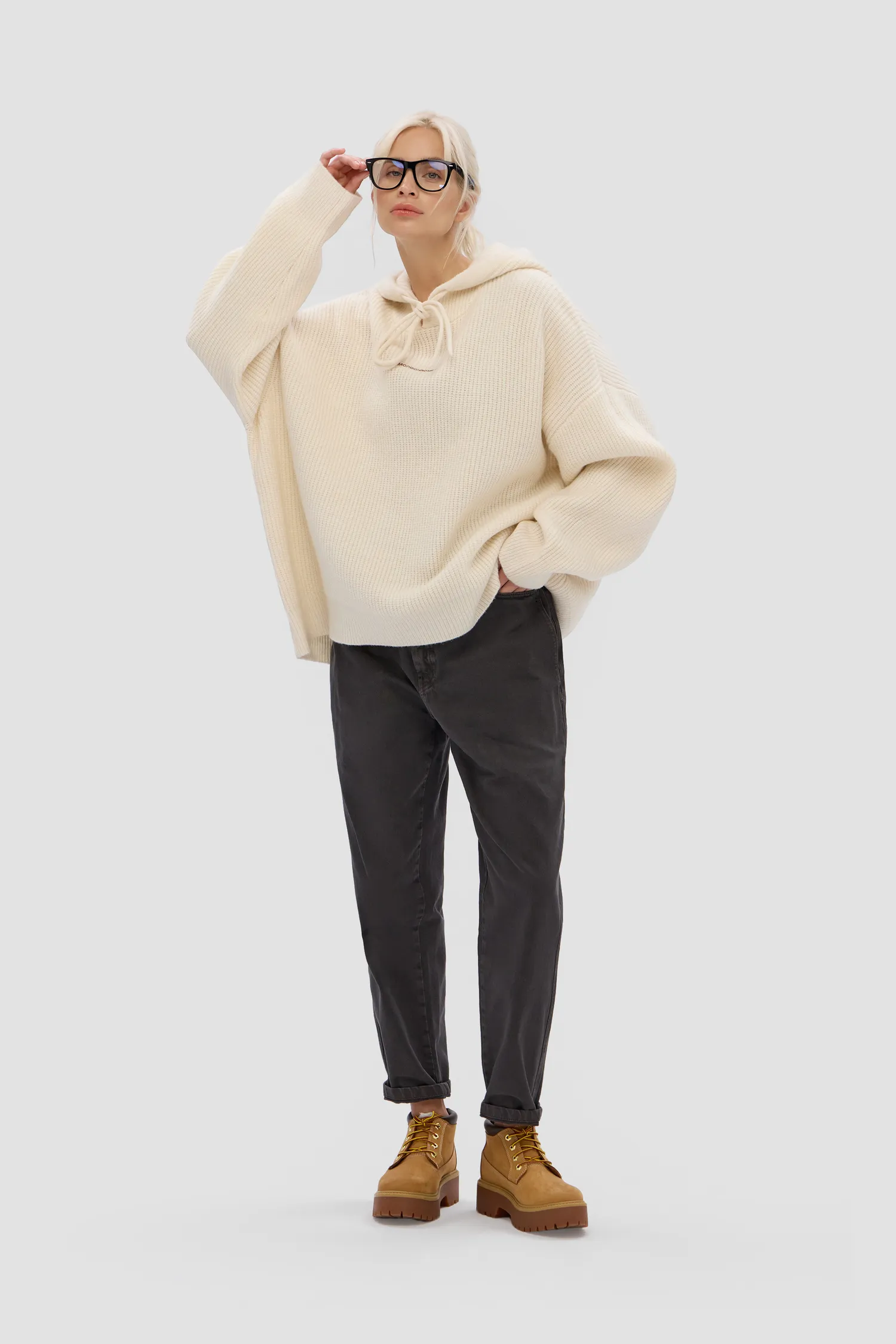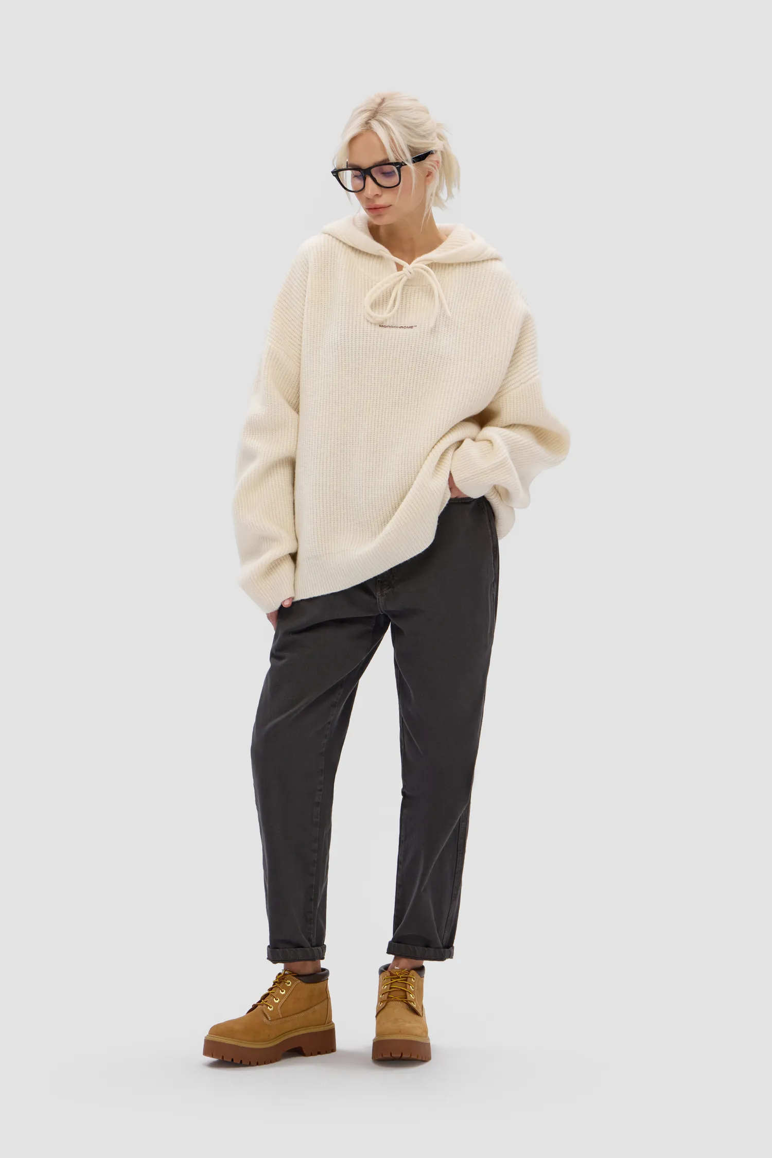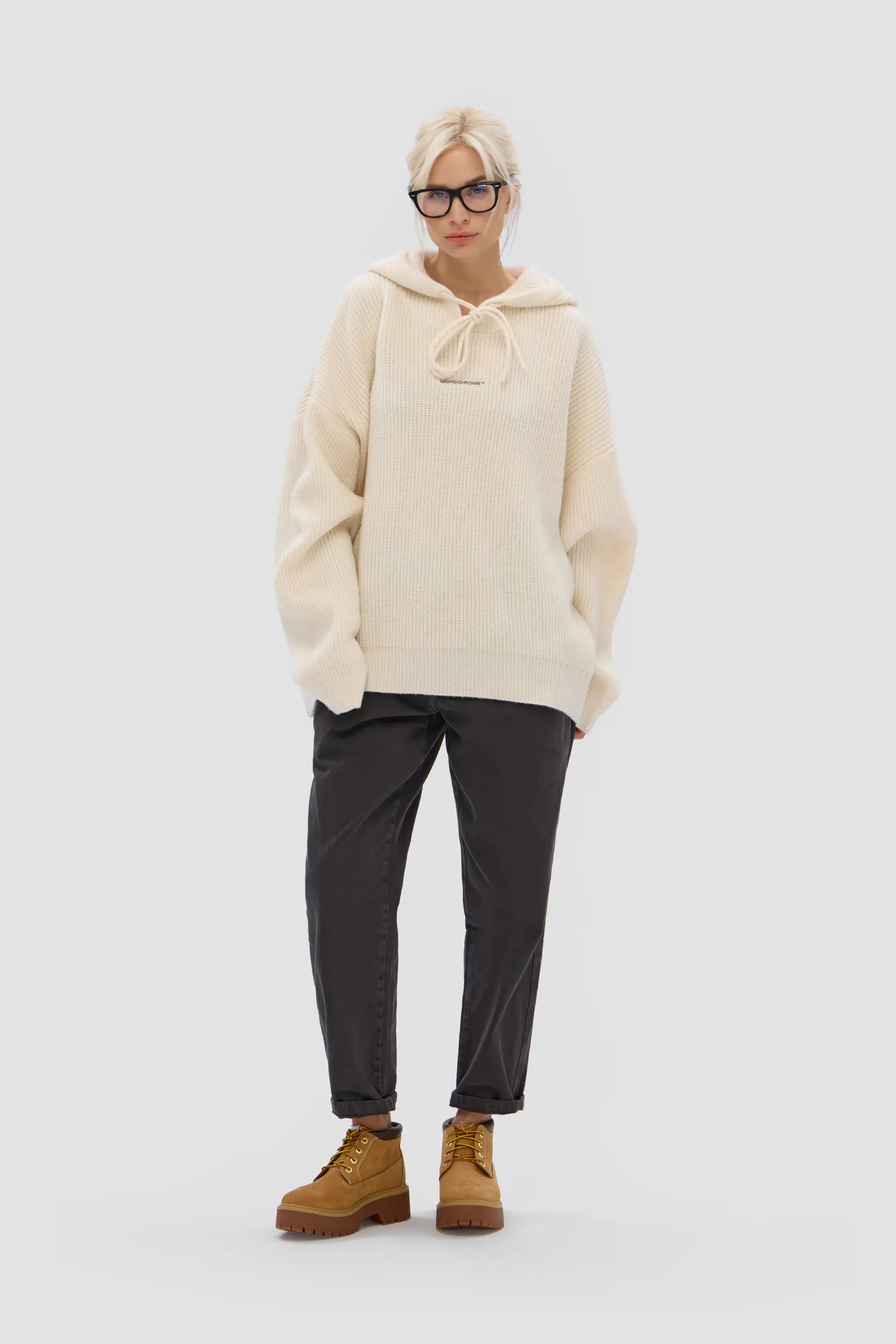 Вязаный худи в рубчик из смесовой шерсти. Объемный капюшон на завязках. Рельефный логотип MONOCHROME в области груди. Onesize&unisex. Цвет: молочный. Упаковка в подарочную коробку. Хранить изделие в сложенном виде горизонтально.