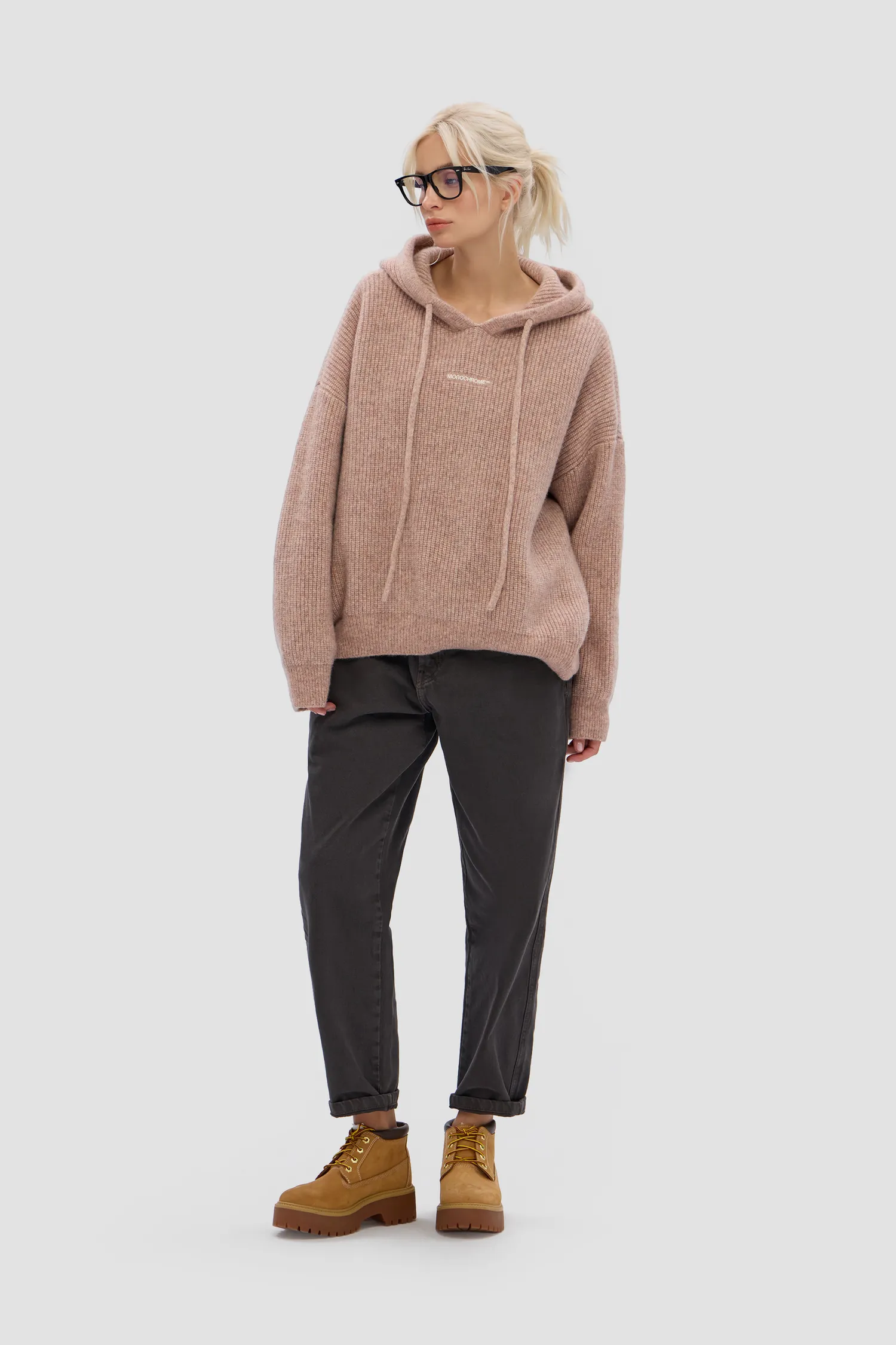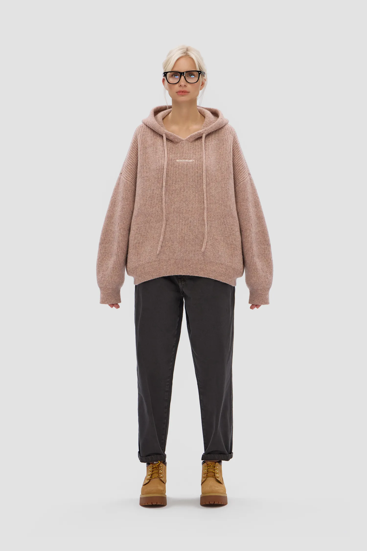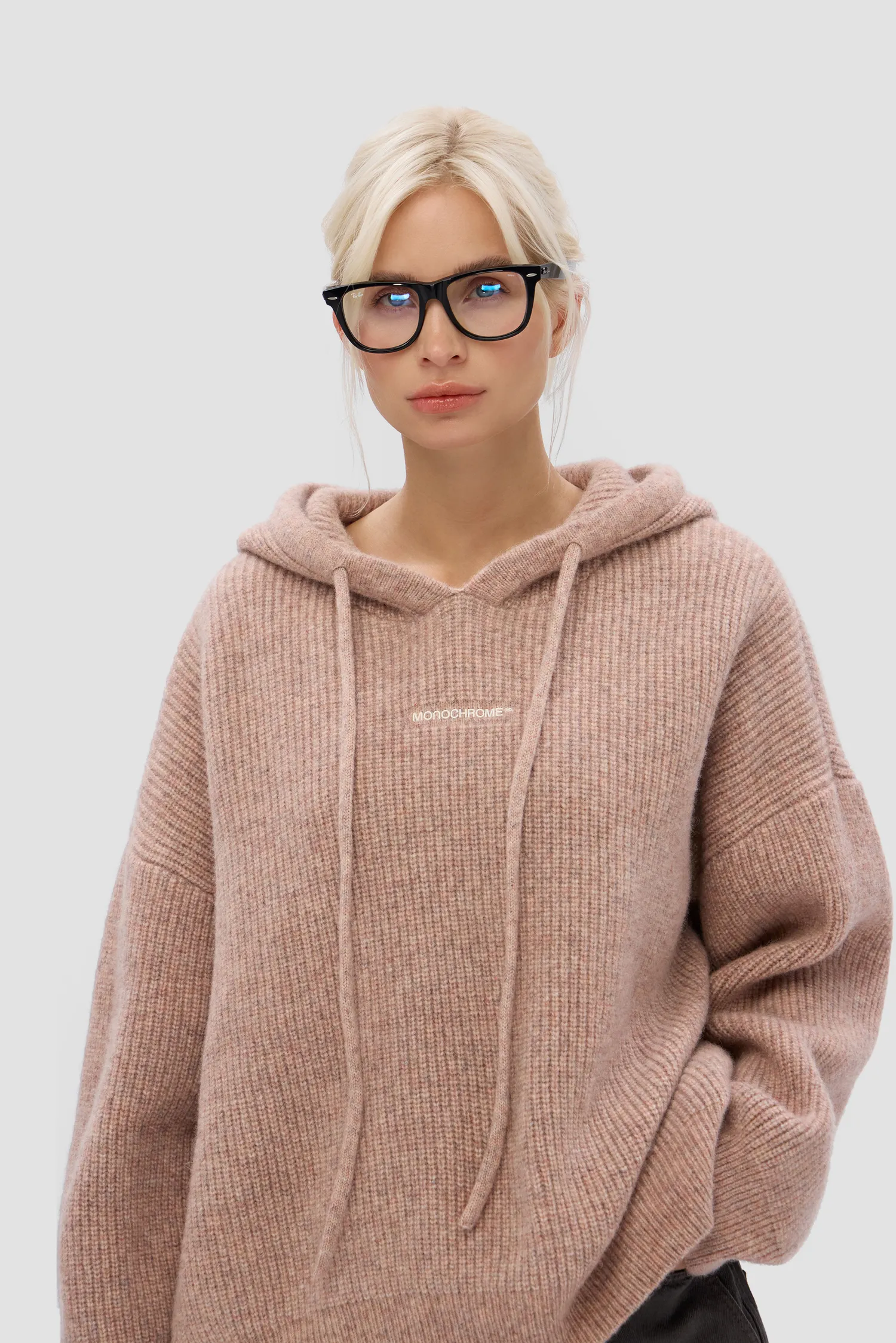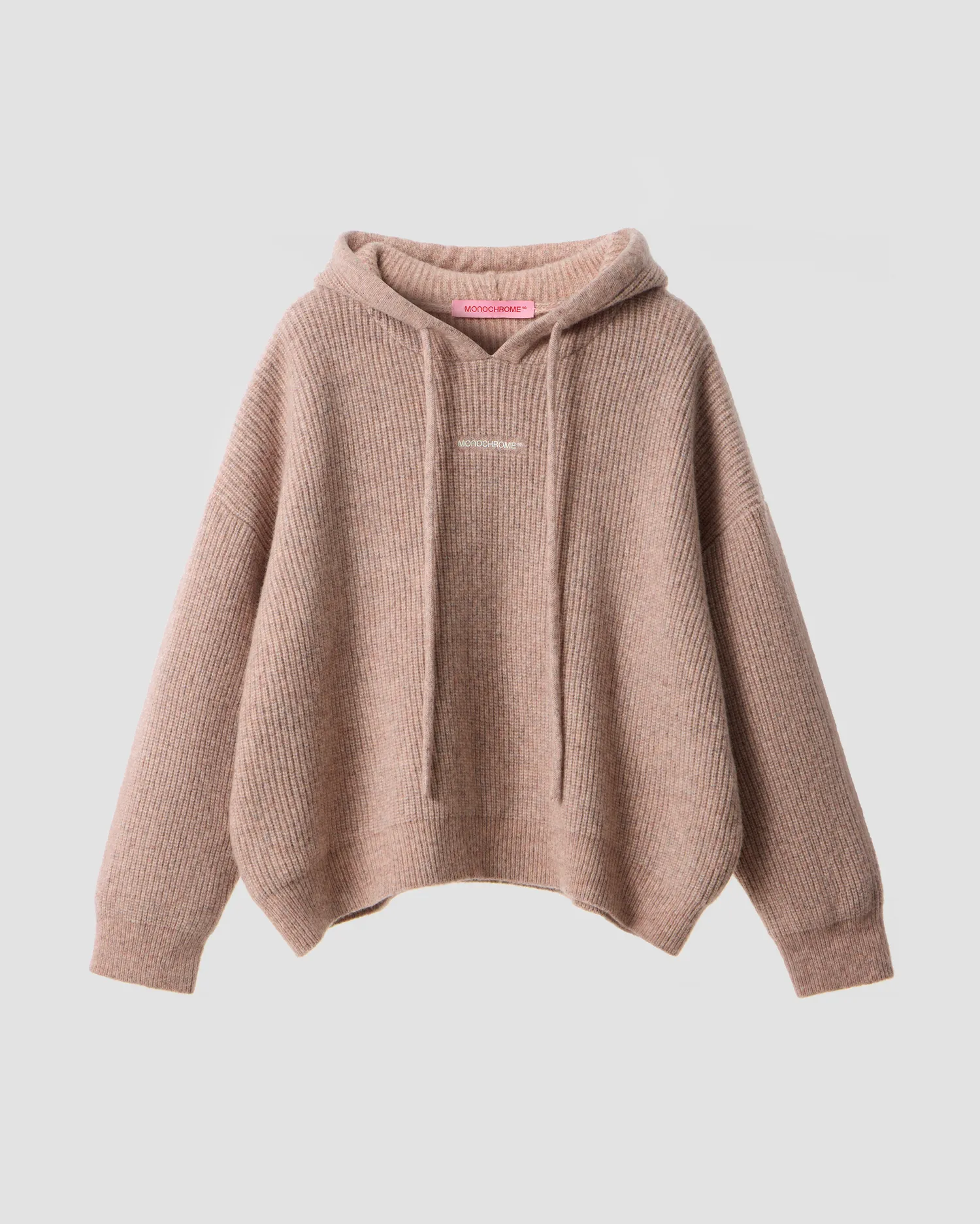 Вязаный худи в рубчик из смесовой шерсти. Объемный капюшон на завязках. Рельефный логотип MONOCHROME в области груди. Onesize&unisex. Цвет: песочный. Упаковка в подарочную коробку. Хранить изделие в сложенном виде горизонтально.