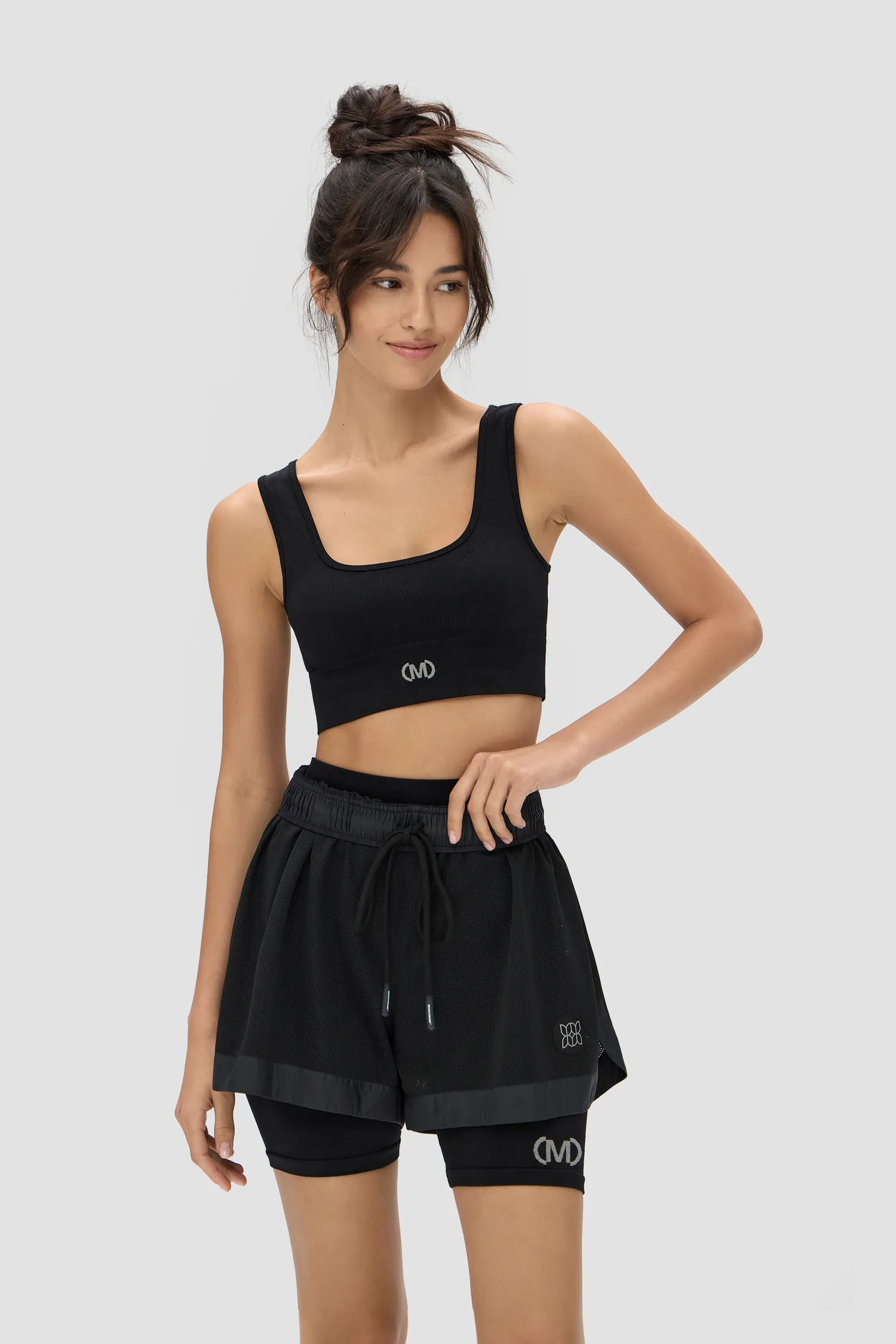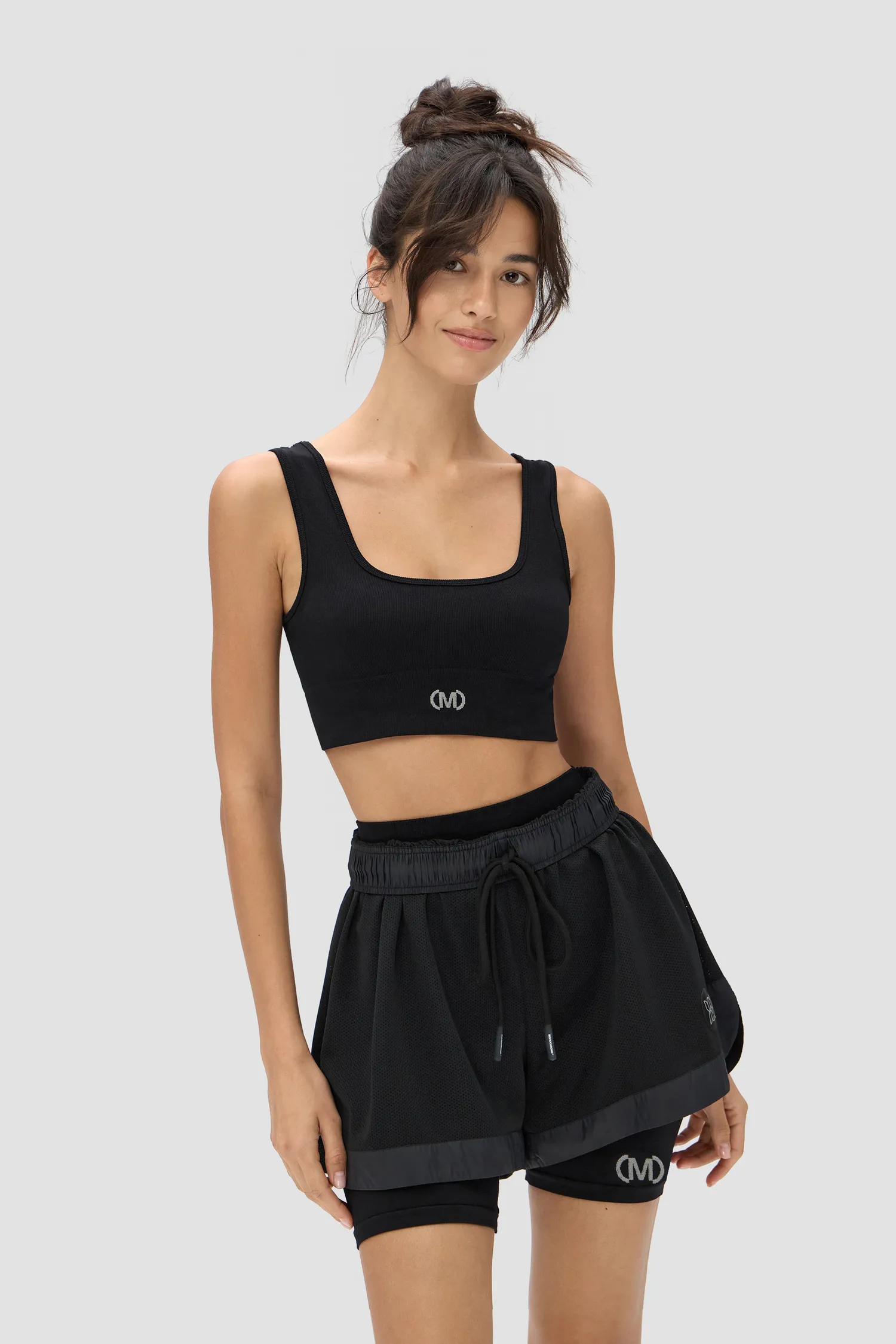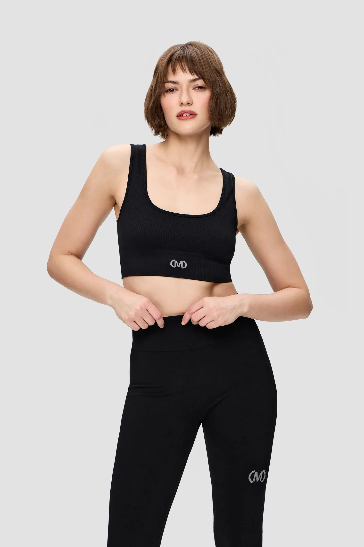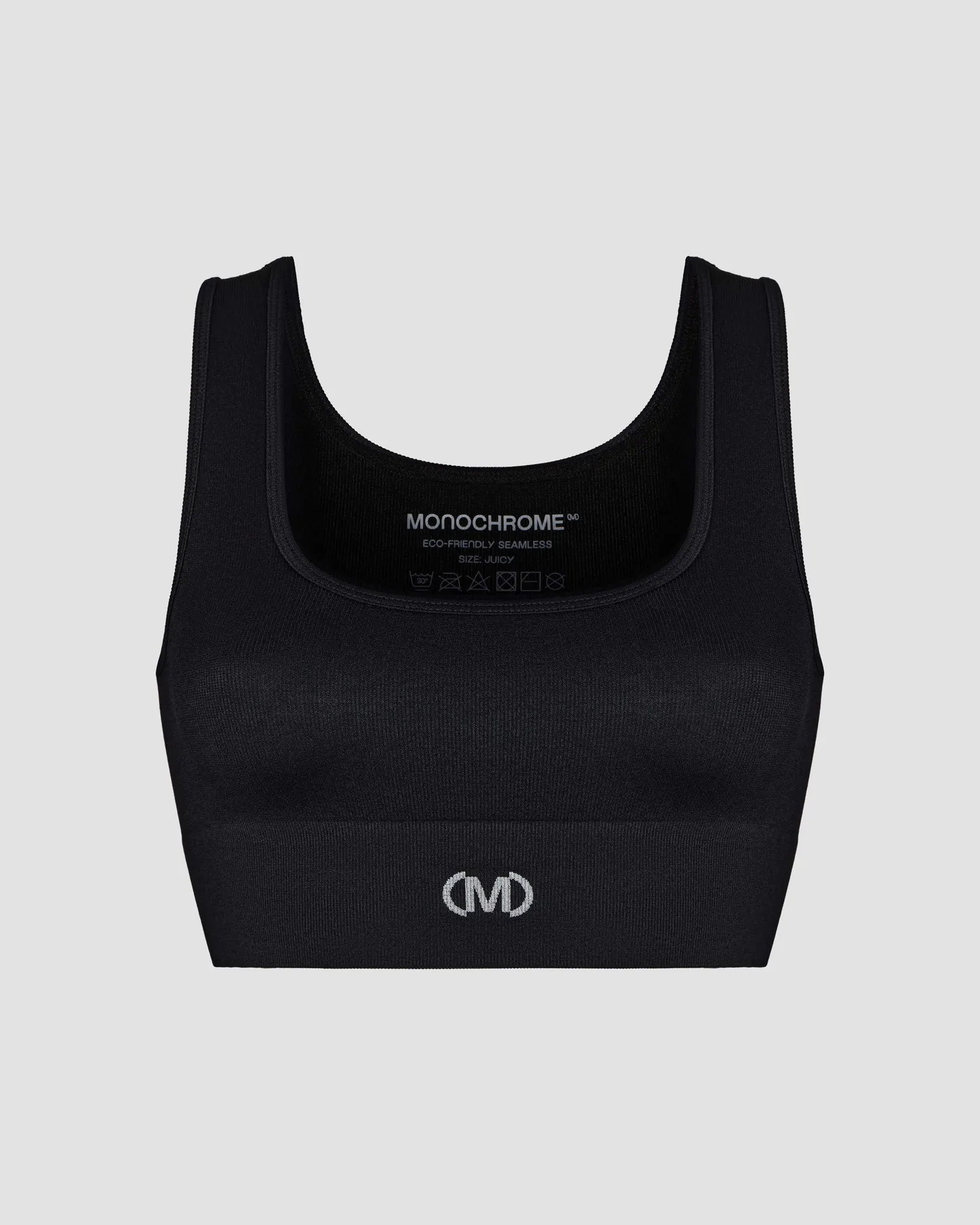 Бесшовный кроп-топ из мягкого трикотажа в мелкий рубчик. Широкие бретели. Вывязанный логотип MONOCHROME. Упаковка в базовую крафтовую коробку.