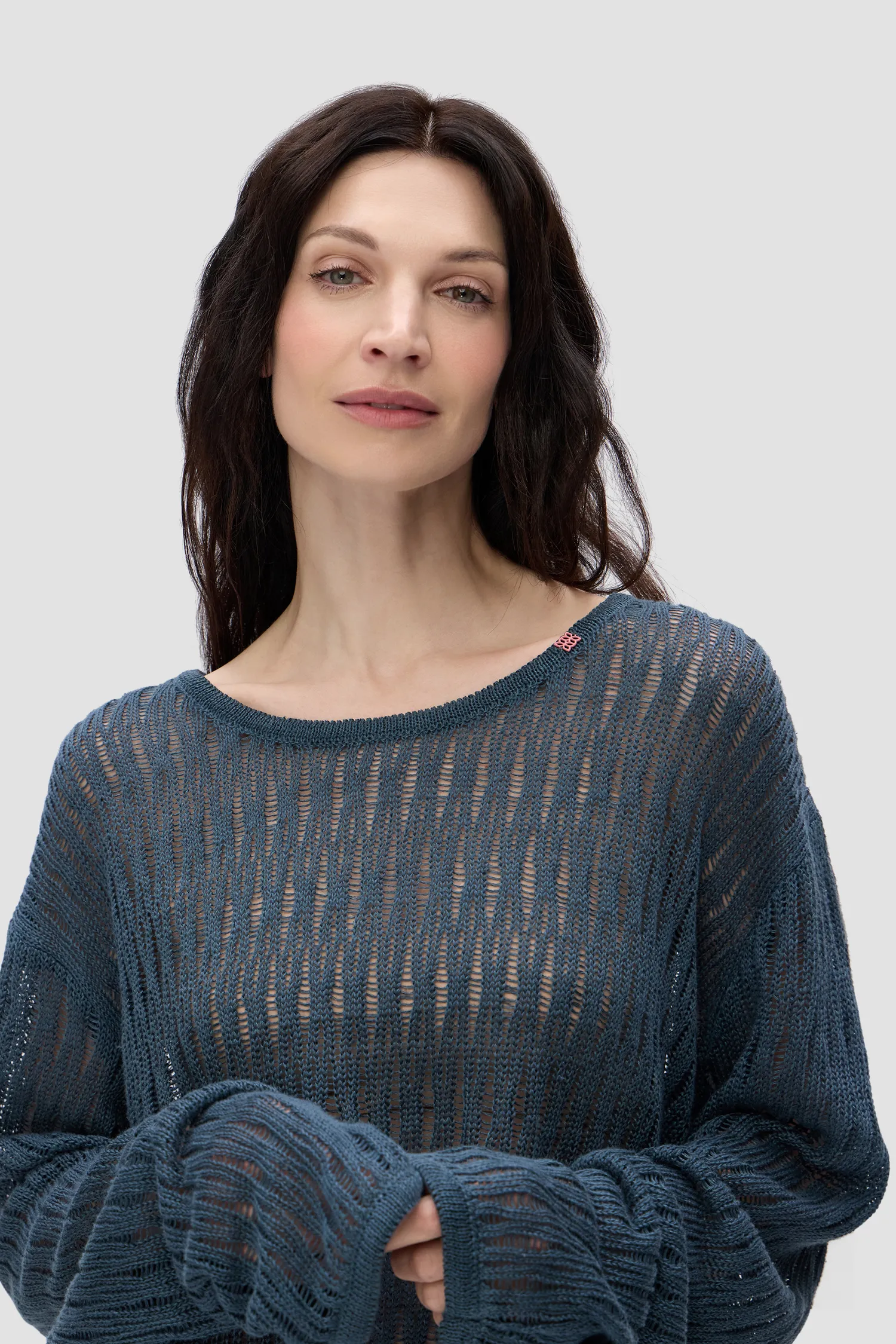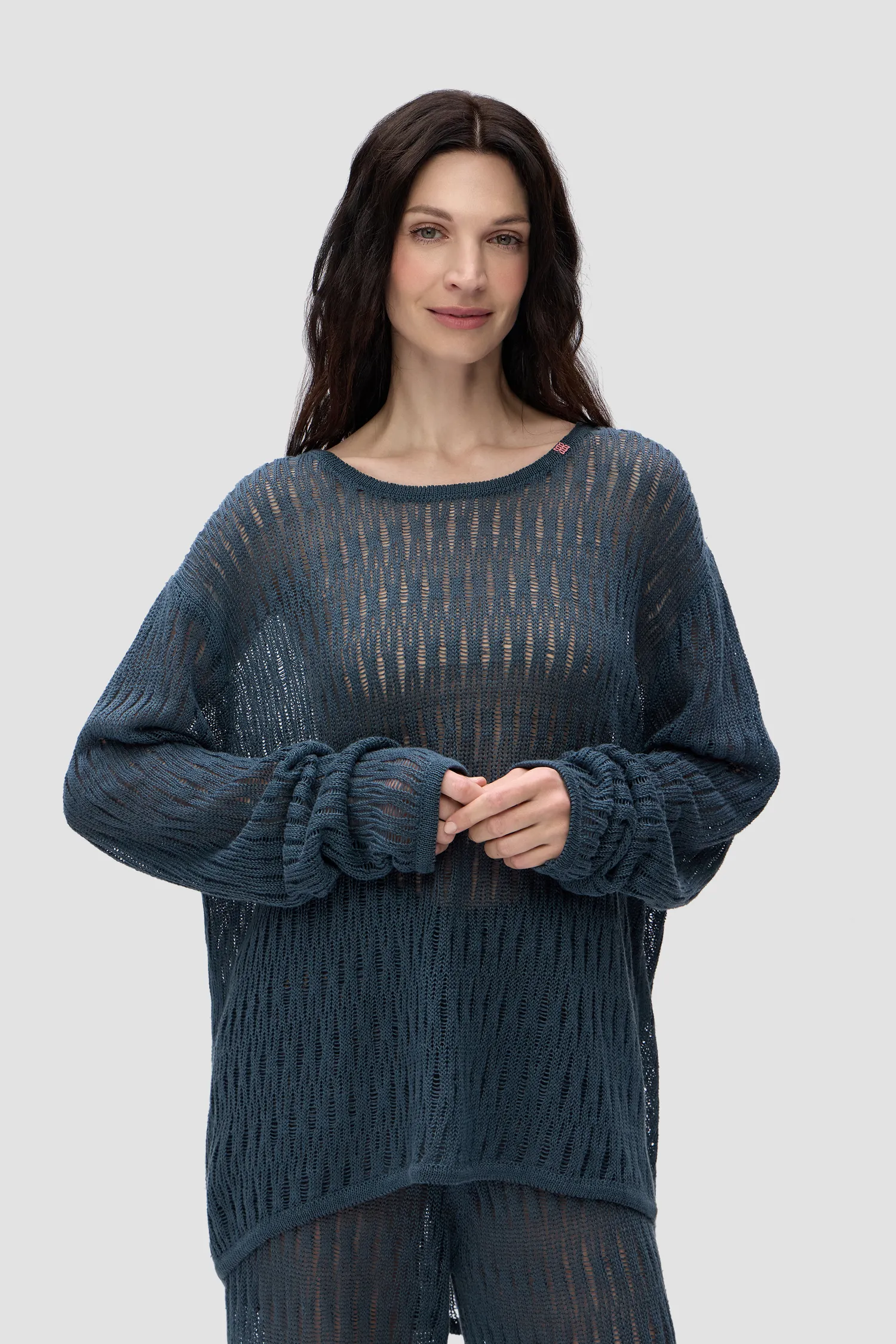 Лонгслив свободного кроя из 100% вязаного льна из коллекции AIR. Льняная ткань идеально подходит для жары благодаря своей способности пропускать воздух, обеспечивая комфорт для вашей кожи. О-образный вырез. Металлическая нашивка в виде фирменного элемента паттерна MONOCHROME. В измерениях изделий допустимо колебание ± 2 см. Onesize&Unisex. Упаковка в льняной мешочек и в подарочную коробку.