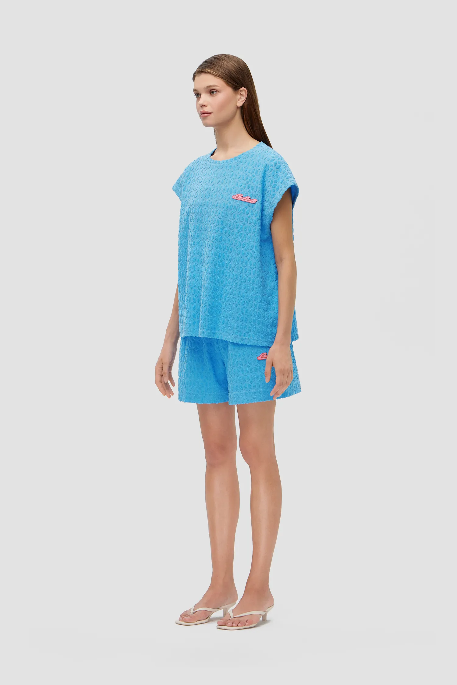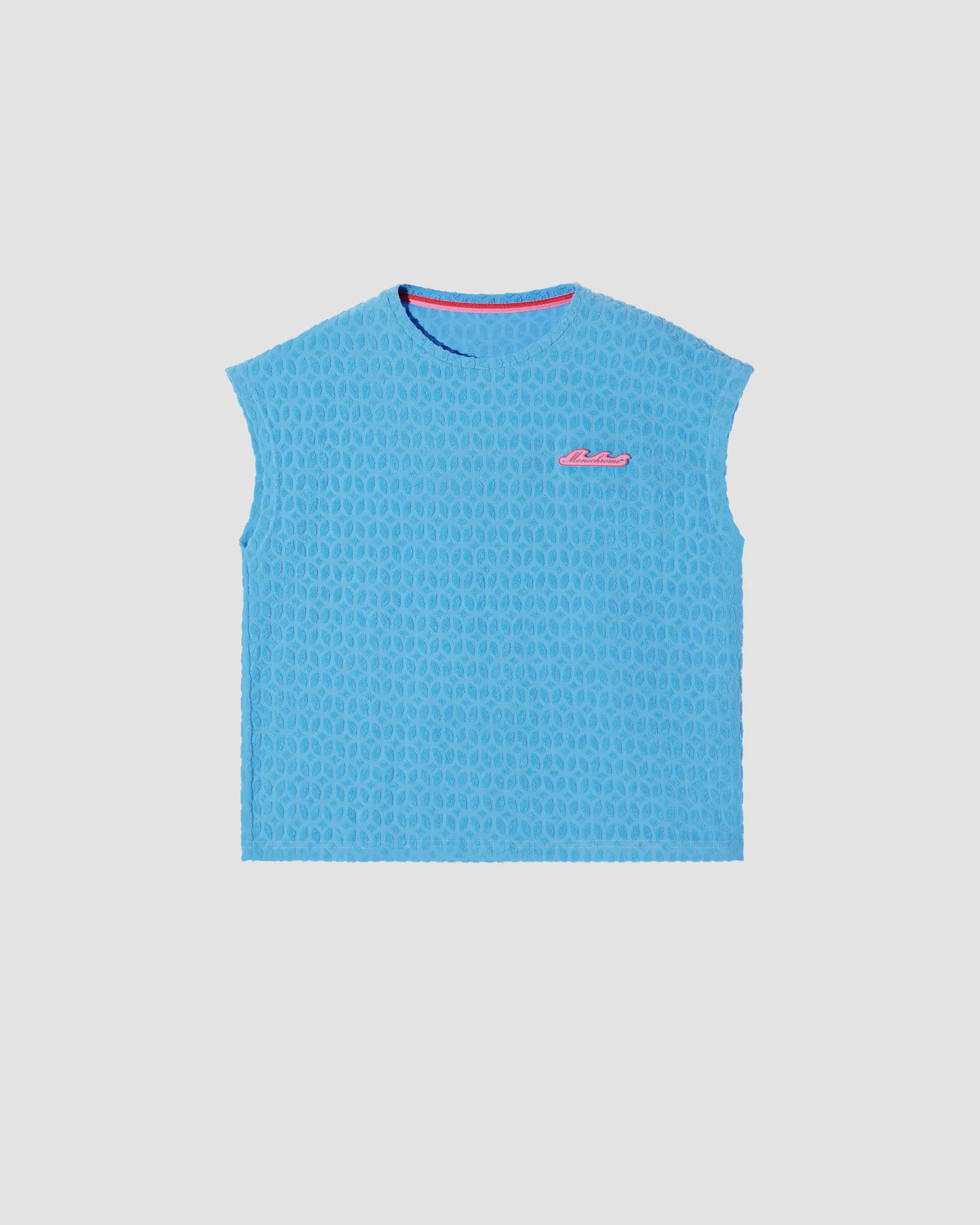 Майка из махровой ткани с фактурным узором в виде фирменного паттерна MONOCHROME. Полотно выполнено из мягкого 100% хлопка, приятного на ощупь. В области груди расположена полимерная нашивка в виде волны, разработанная специально для капсулы RESORT. Упаковка в подарочную коробку. Сделано в России на собственной мануфактуре MONOCHROME.