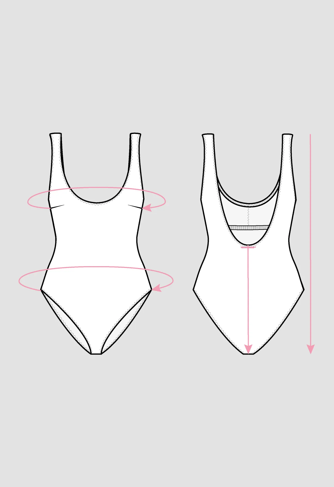 Указанные размеры являются стандартными и могут варьироваться в зависимости от индивидуальных особенностей фигуры. Эластичная ткань купальника адаптируется к разным типам телосложения, поэтому посадка может отличаться.